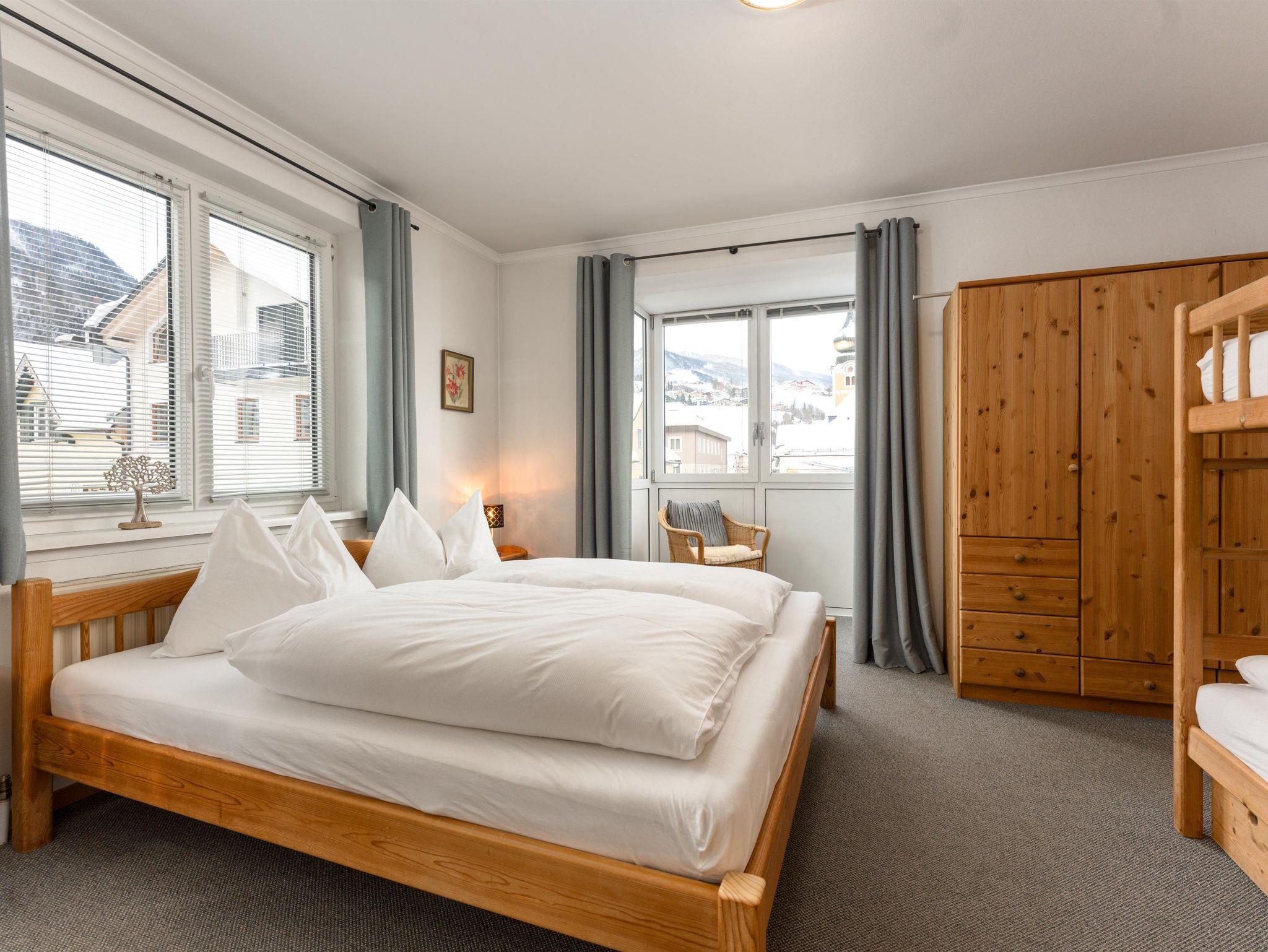 Centro Top 8 - dieses Appartement liegt im 1. Obergeschoss des Hauses Centro und bietet auf 56 m² Wohnfläche Platz für 2-4 Personen. Es verfügt über ein separates Schlafzimmer, ein Badezimmer sowie eine gemütliche Wohnküche. Von dieser erreichen Sie auch einen kleinen, südseitigen Balkon mit Ausblick auf die Planai und das Stadtzentrum. Das Appartement besticht durch seine Gemütlichkeit. Es ist einfach aber komfortabel ausgestattet.
