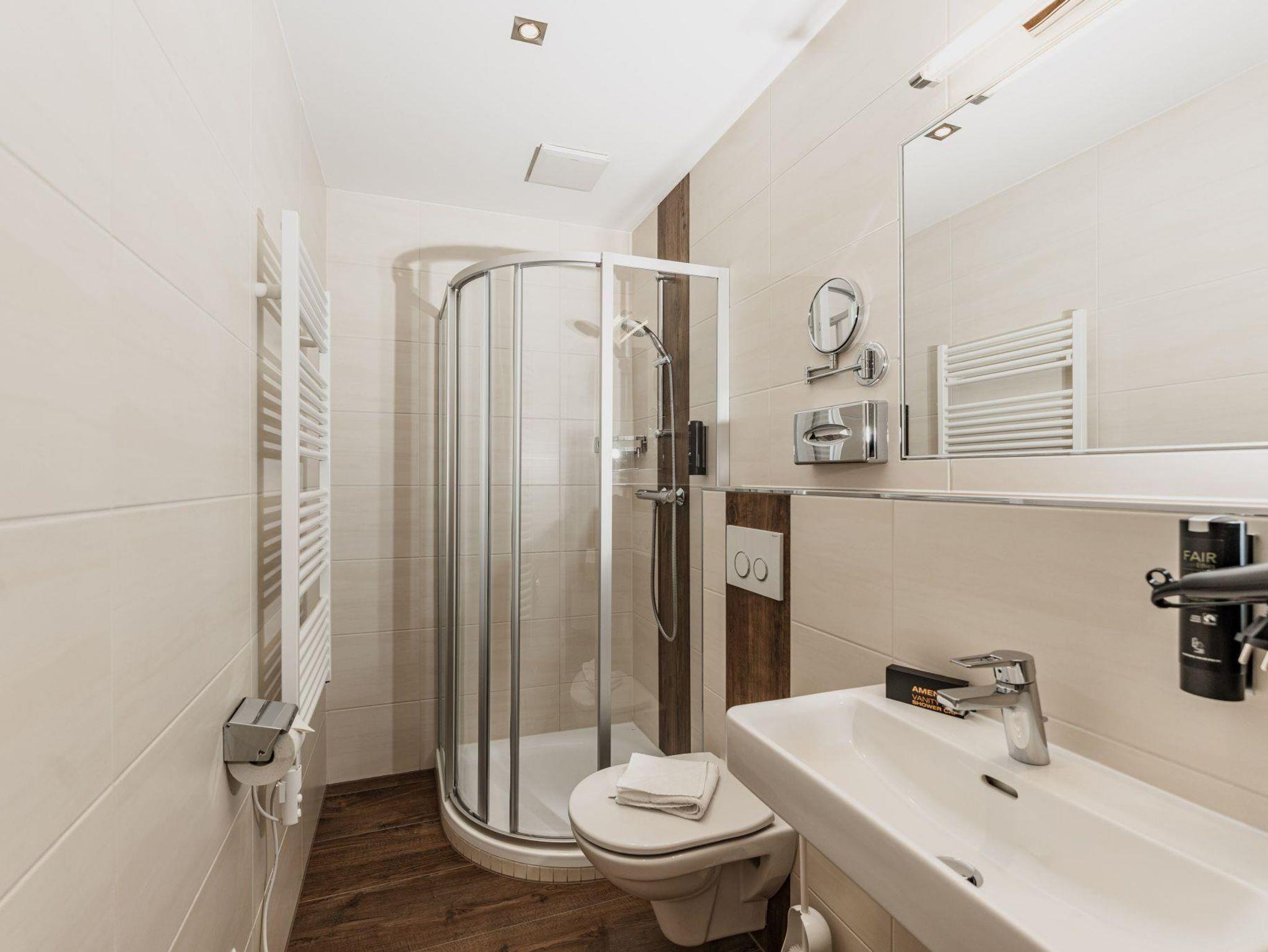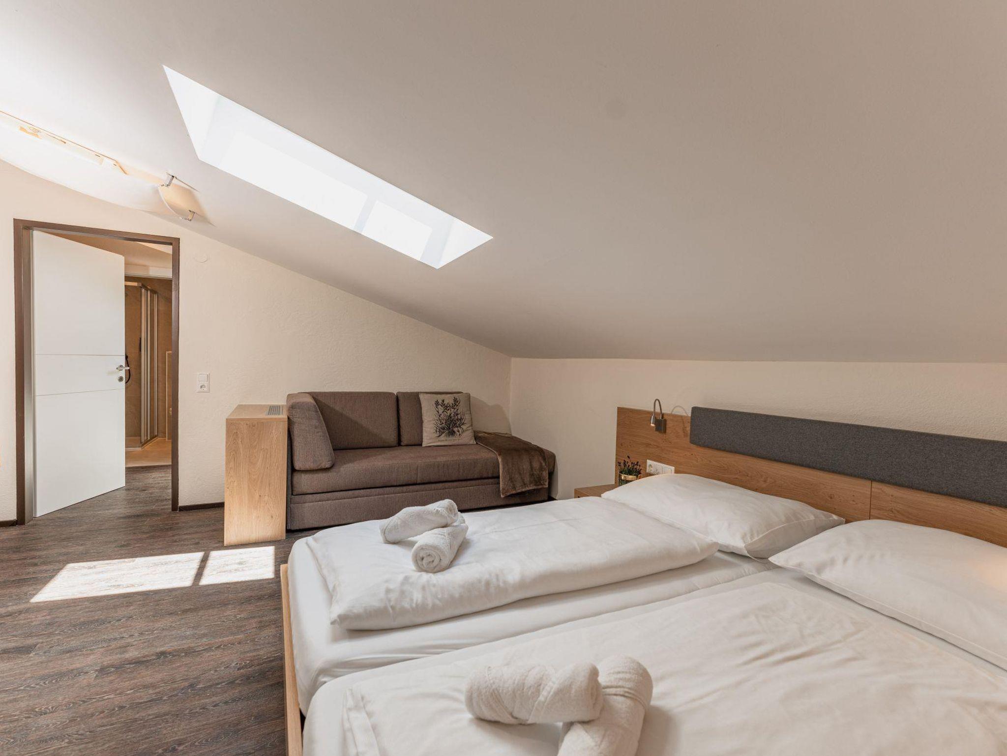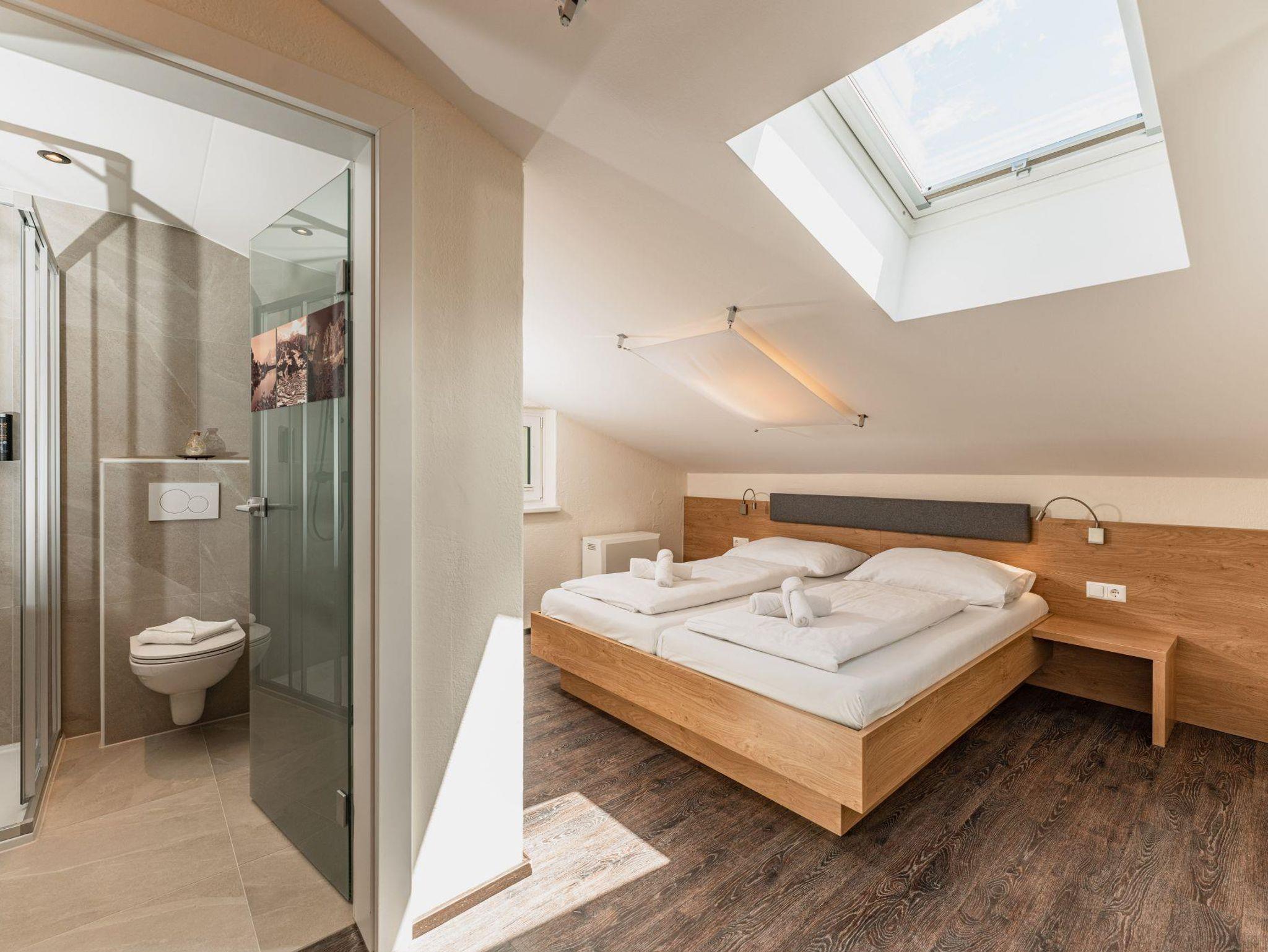 In der ca. 95 m² großen Suite Dachsteinblick verbringen 7 – 10 Personen nicht nur wegen der Lage im dritten Stock einen Urlaub auf höchstem Niveau. Das geräumige Fünfraumappartement wurde im September 2013 komplett erneuert und verfügt über 4 luxuriös eingerichtete Doppelzimmer mit King-Size-Betten sowie 4 Badezimmer mit Dusche und WC. In der voll ausgestatteten Küche und dem Wohnbereich mit großem Esstisch und Doppelcouch verbringen Sie genussvolle und gesellige Stunden. Bettwäsche und Handtücher erhalten Sie selbstverständlich von uns. Die modern und stilvoll gestaltete Wohnung wird ihrem Namen Dachsteinblick durch den geräumigen Balkon vollkommen gerecht.