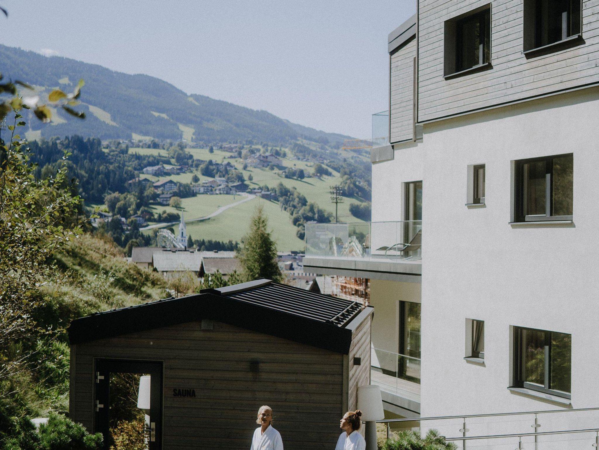 - 1 Privat Spa mit Sauna auf der groszügigen Panoramaterrasse mit Blick auf den Dachstein und ins Ennstal