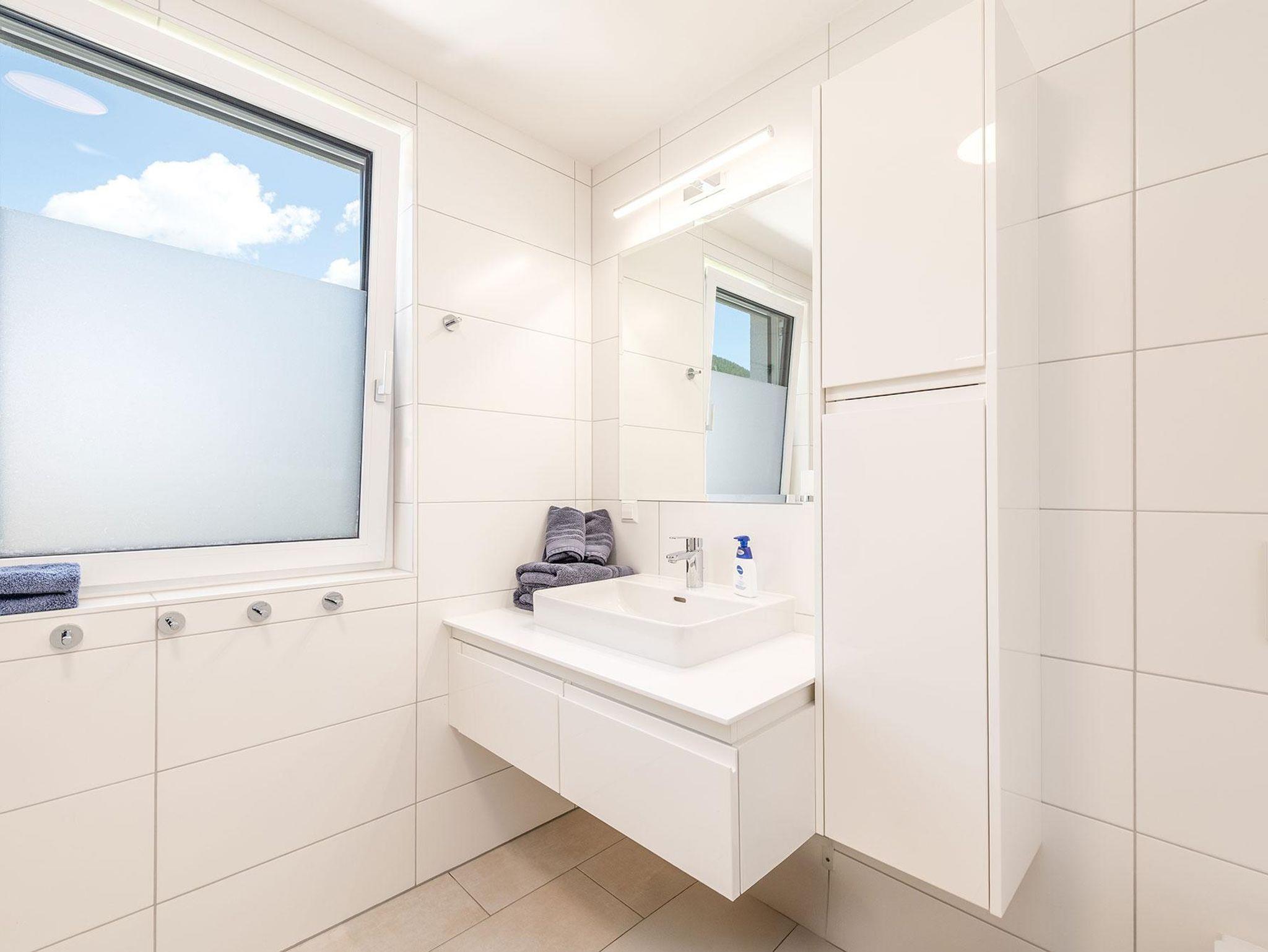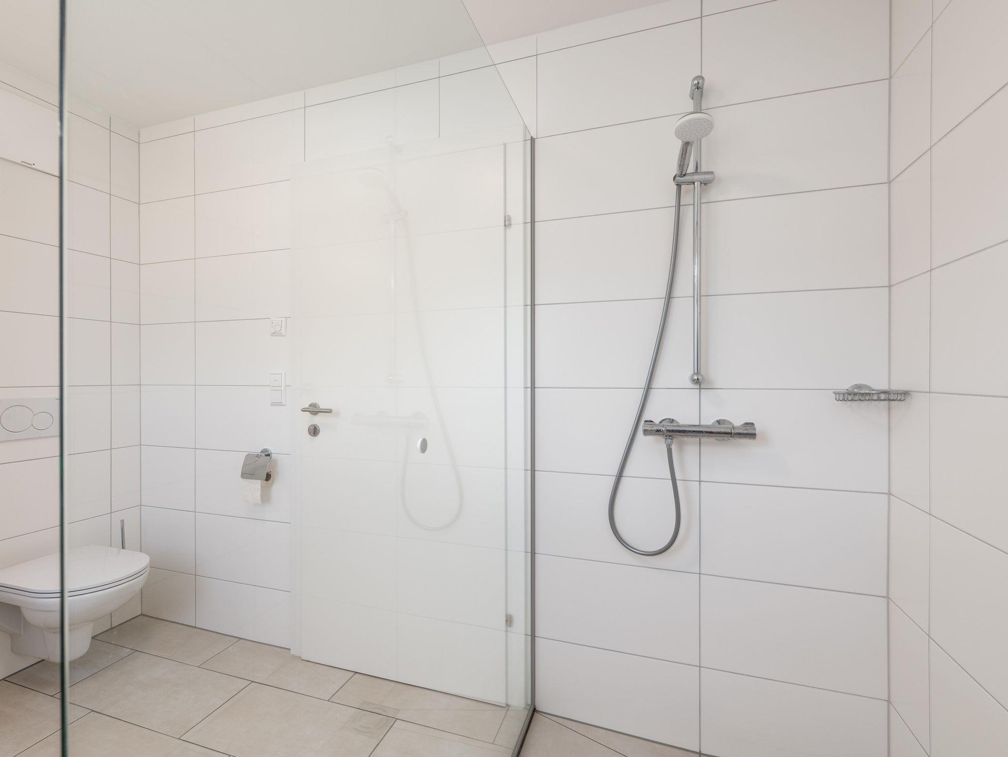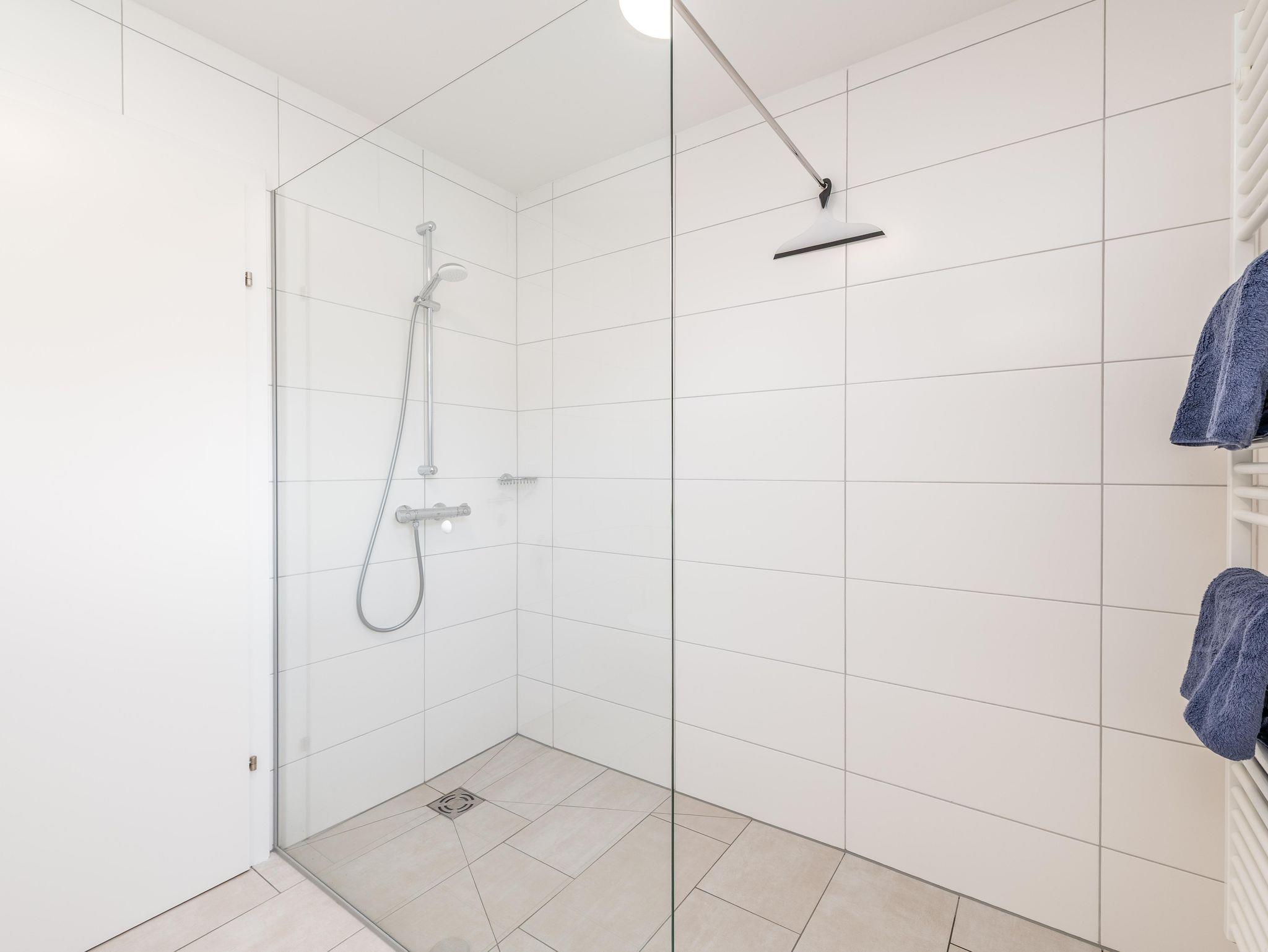Das Bad ist ausgestattet mit einer großzügigen Dusche und einem Waschbecken. Handtücher und Bettwäsche stehen zur Verfügung.