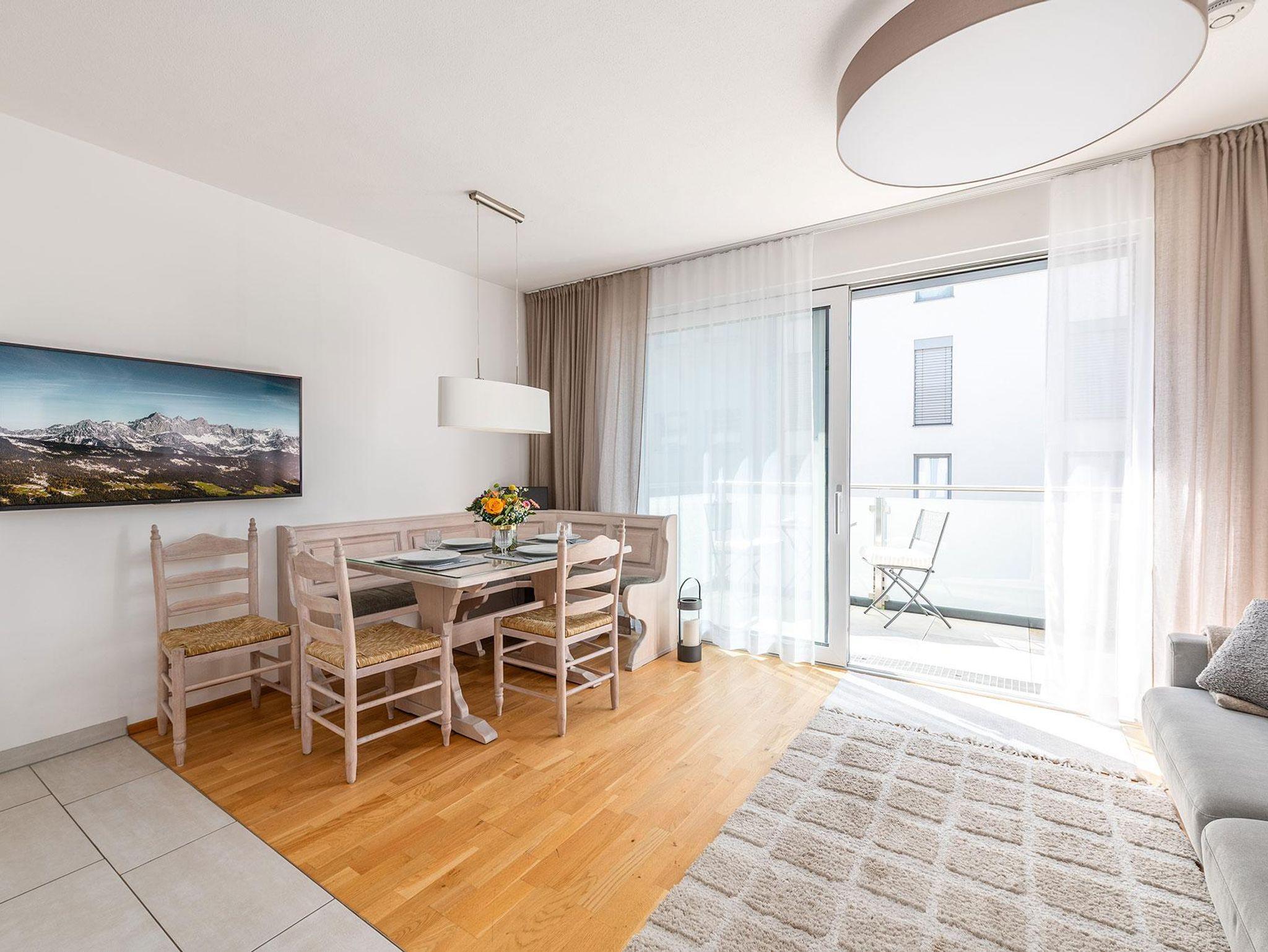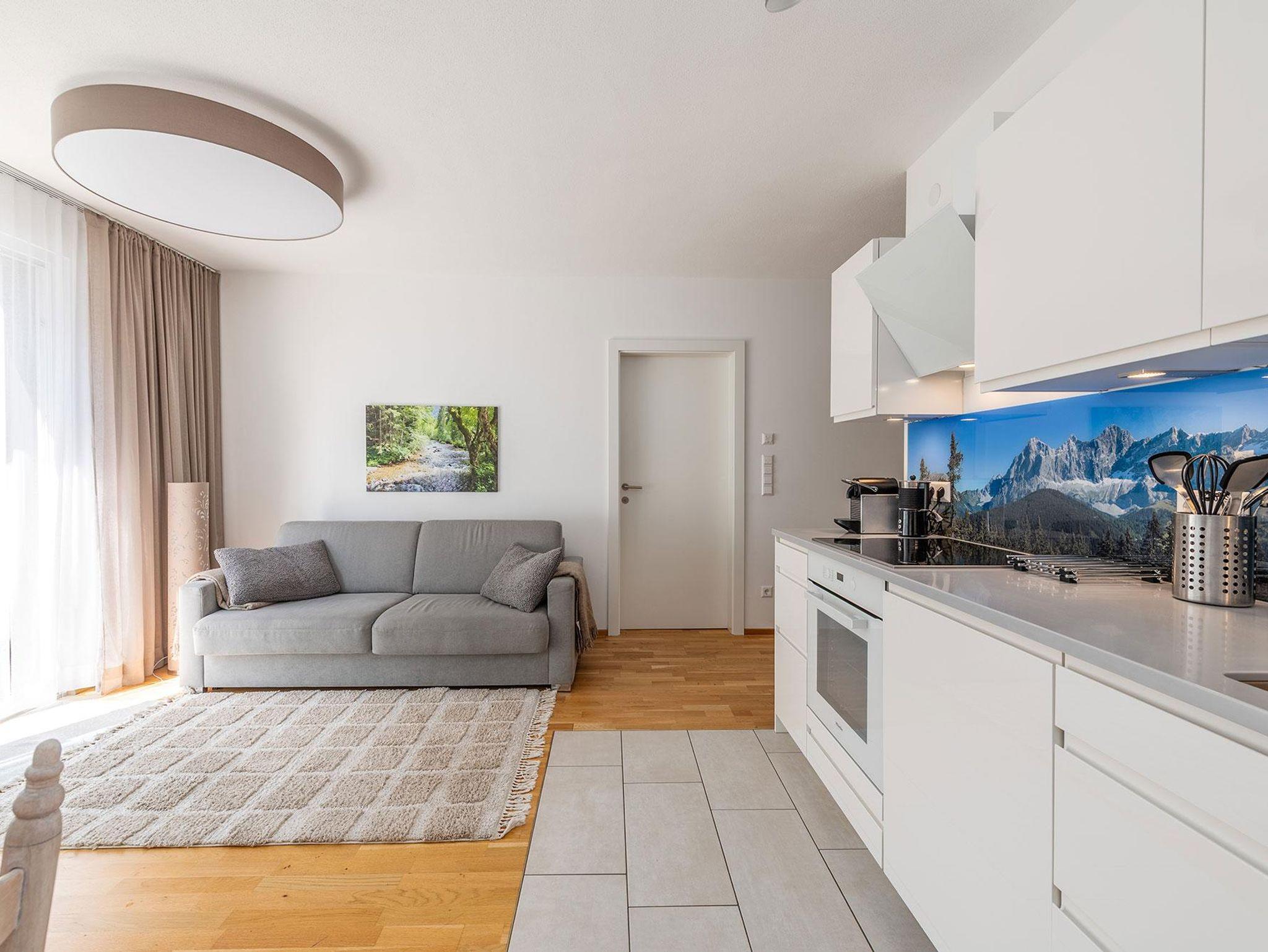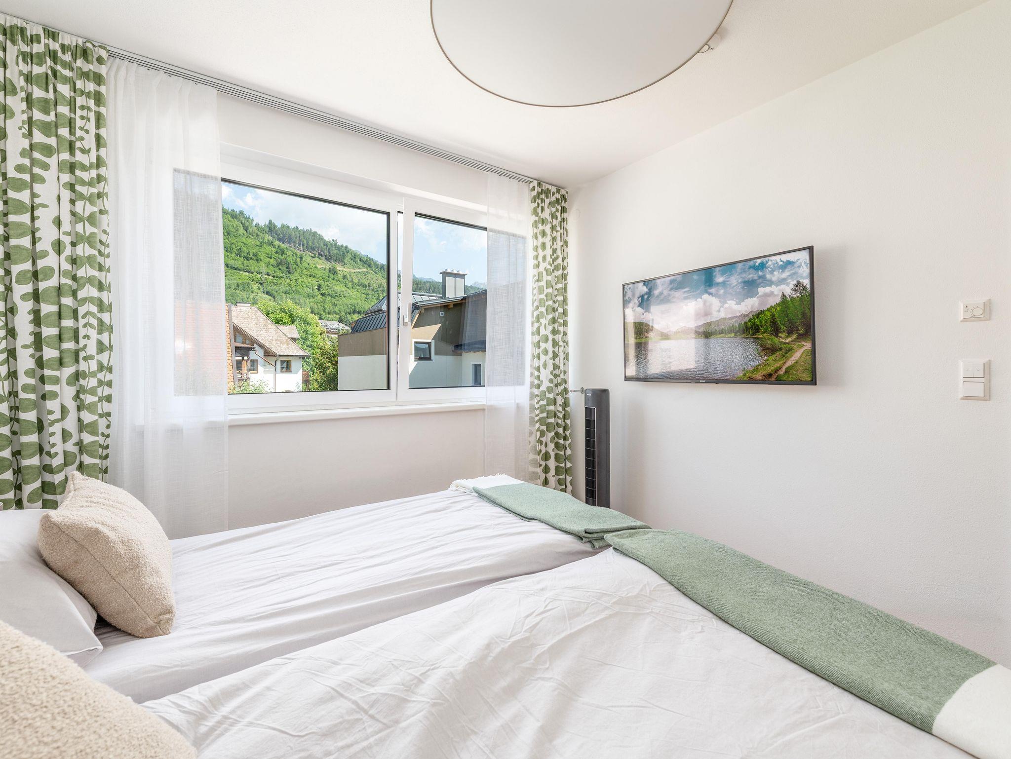 Das hochwertig eingerichtete Neualm 5 vom myNests im Herzen Schladmings bietet Platz für bis zu 6 Personen. Mit seinem modernen Charme bietet das Apartment eine gemütliche, entspannende Atmosphäre mit 2 Schlafzimmern (Doppelbetten) und einem Schlafsofa im Wohnbereich. Einen wunderschönen Ausblick auf die Berge haben Sie auf der großzügigen Terrasse - perfekt für laue Sommernächte. Das Apartment verfügt über zwei Schlafzimmer mit Flat TV`s und eine voll ausgestattete Küche mit Geschirrspüler, Backofen und Kaffeemaschine.