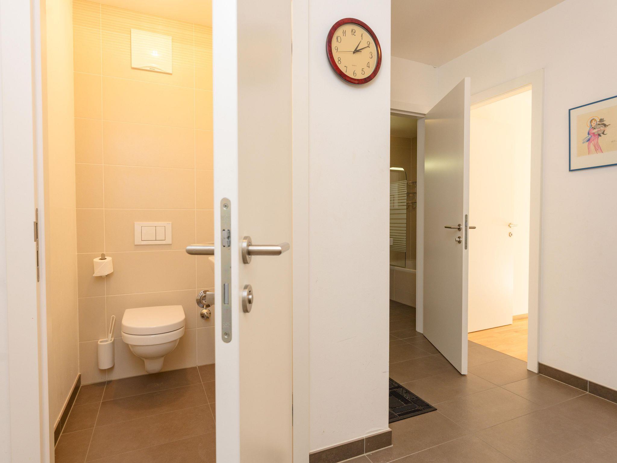 Zu dem Appartement gehört eine Loggia, ausgerichtet nach Süden, die vom Wohnraum sowie von einem Schlafzimmer aus zugänglich ist. Kostenfreies WLAN & Kabel TV lassen für den Gast keine Wünsche offen