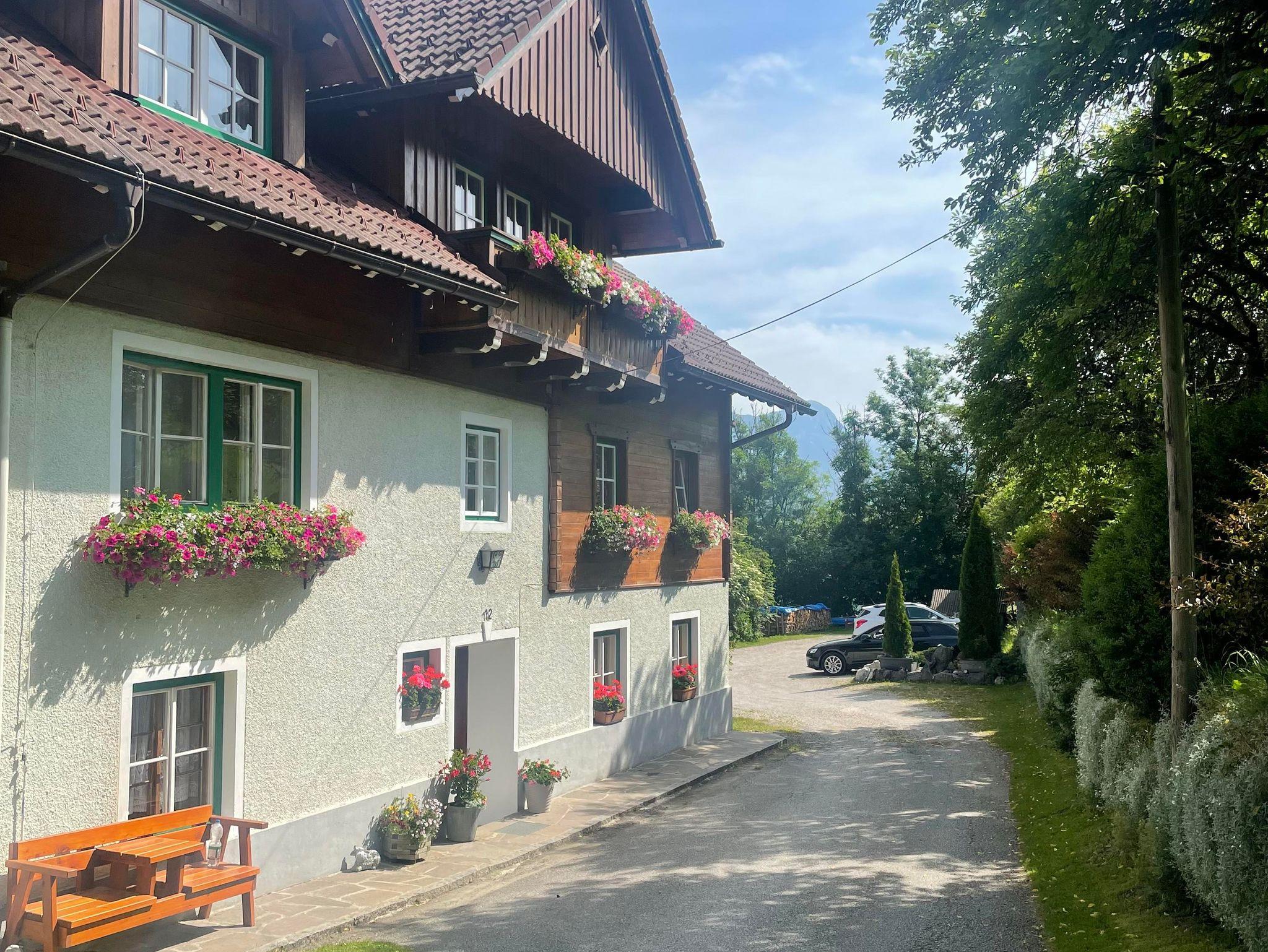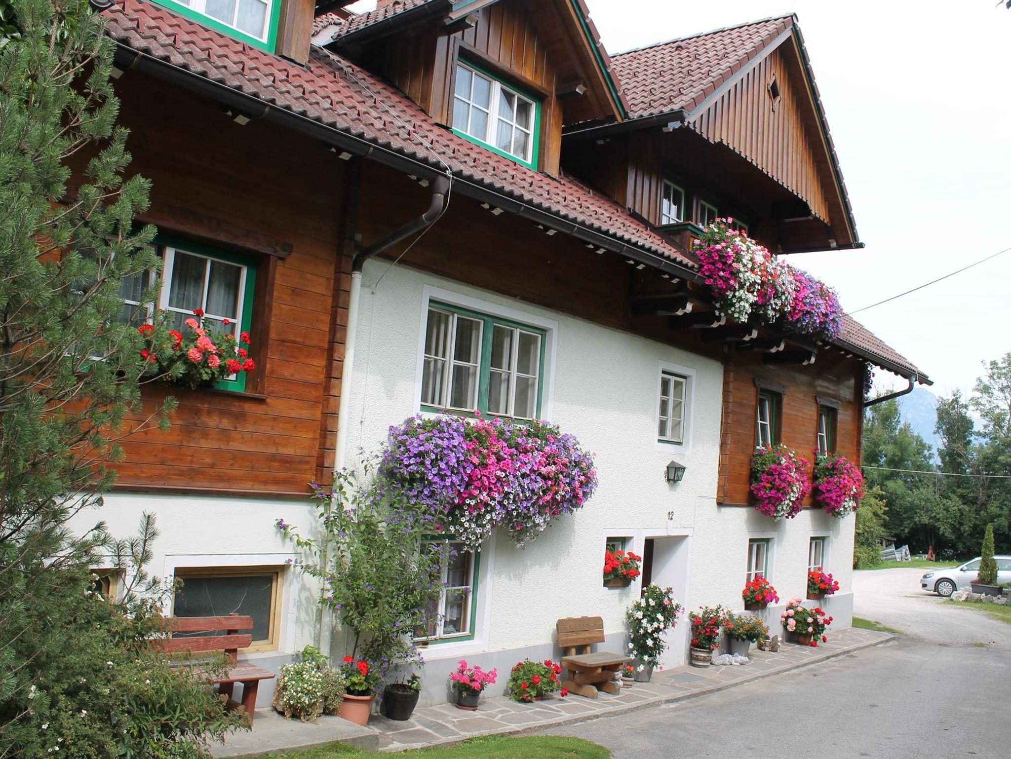 Die leicht erhöhte Lage bietet eine beeindruckende Sicht über das Ennstal auf das gegenüberliegende Dachsteinmassiv.