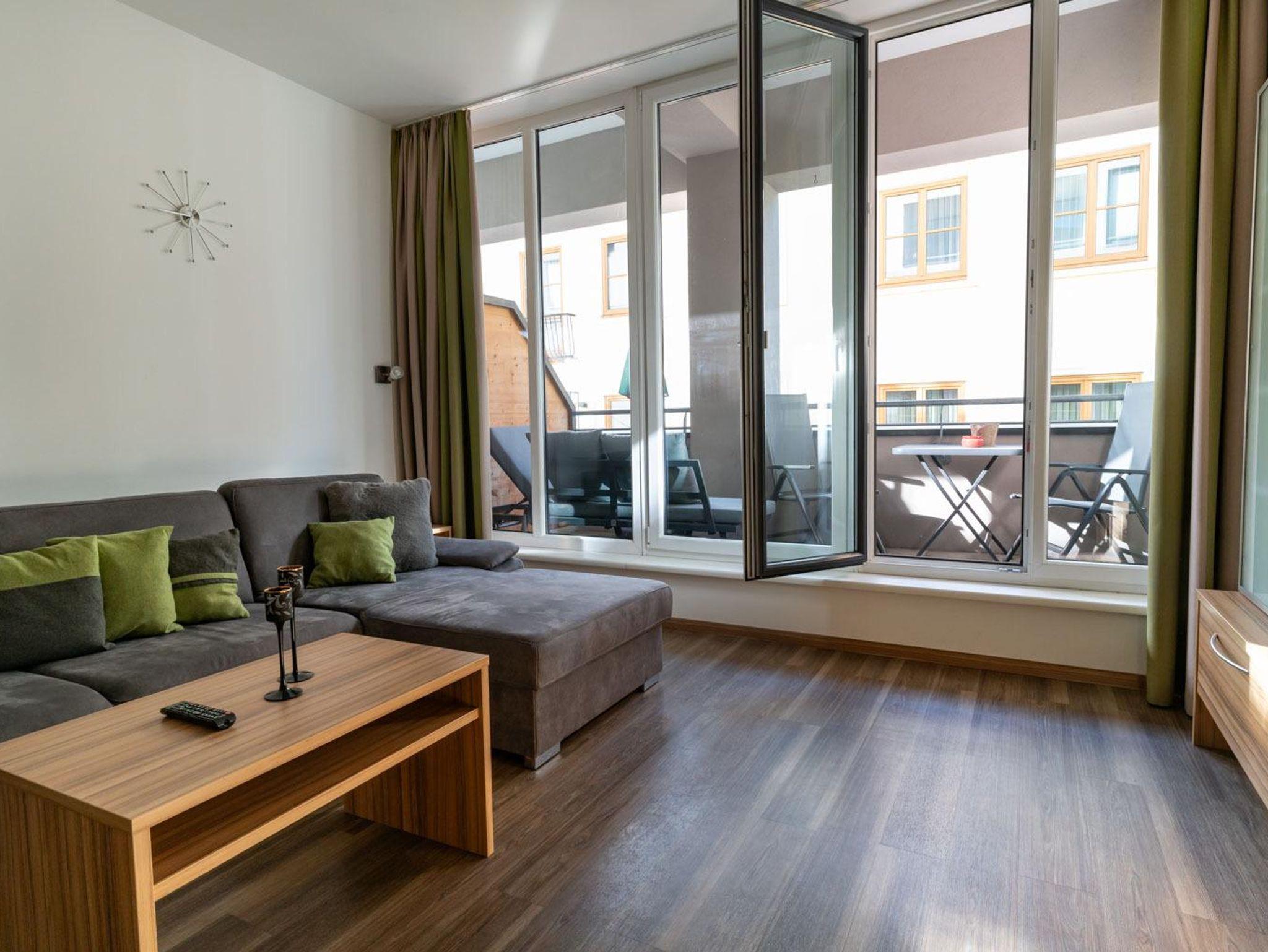 Das nichtraucher-Appartement City befindet sich im 1 Stock (Personenlift) Das Appartement besteht aus 2 getrennten Schlafzimmer mit Doppelbett und Couch, 1 Wohnraum mit Doppelschlafcouch und Wohnküche, WC und Bad getrennt & Balkon!