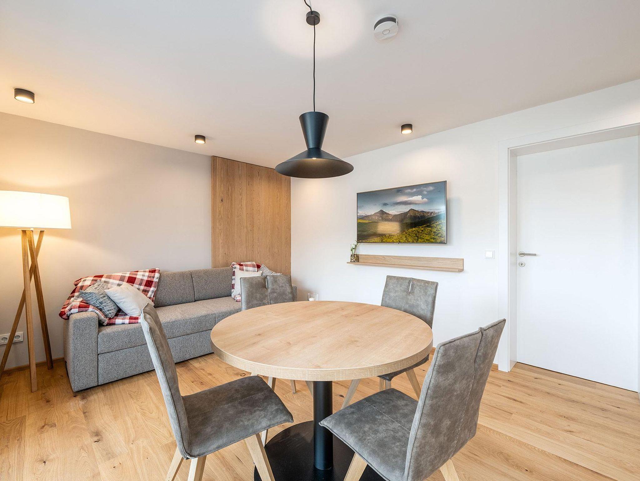 Ein Skiraum mit Schischuhheizung im Haus sorgt für zusätzlichen Komfort im Winter. Die Schlafsofas befinden sich – sofern vorhanden – stets im Wohn- und Essbereich, wodurch die Apartments flexibel für Paare, Familien und Freunde nutzbar sind.
