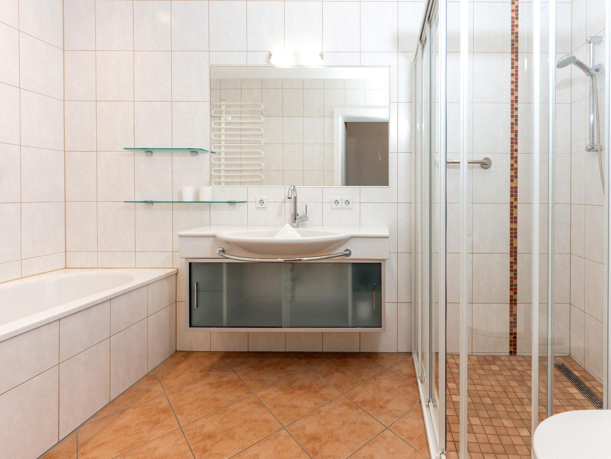 - 1 Badezimmer mit Badewanne, Dusche, Waschtisch und WC