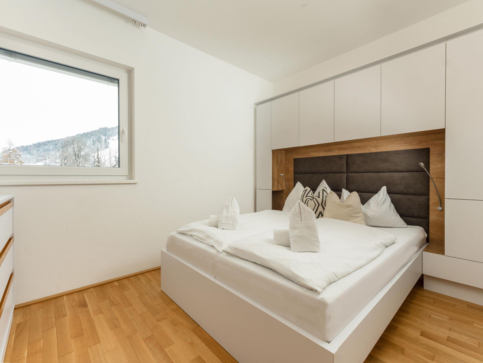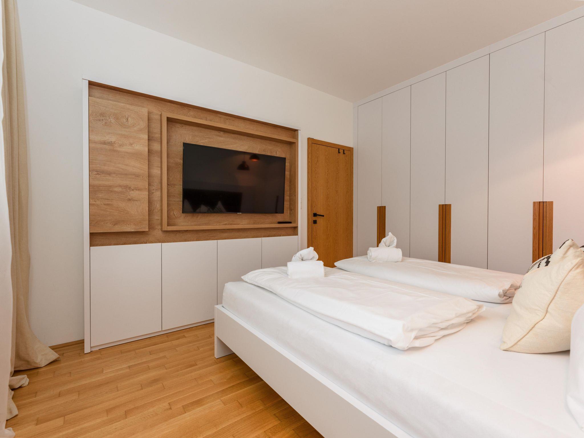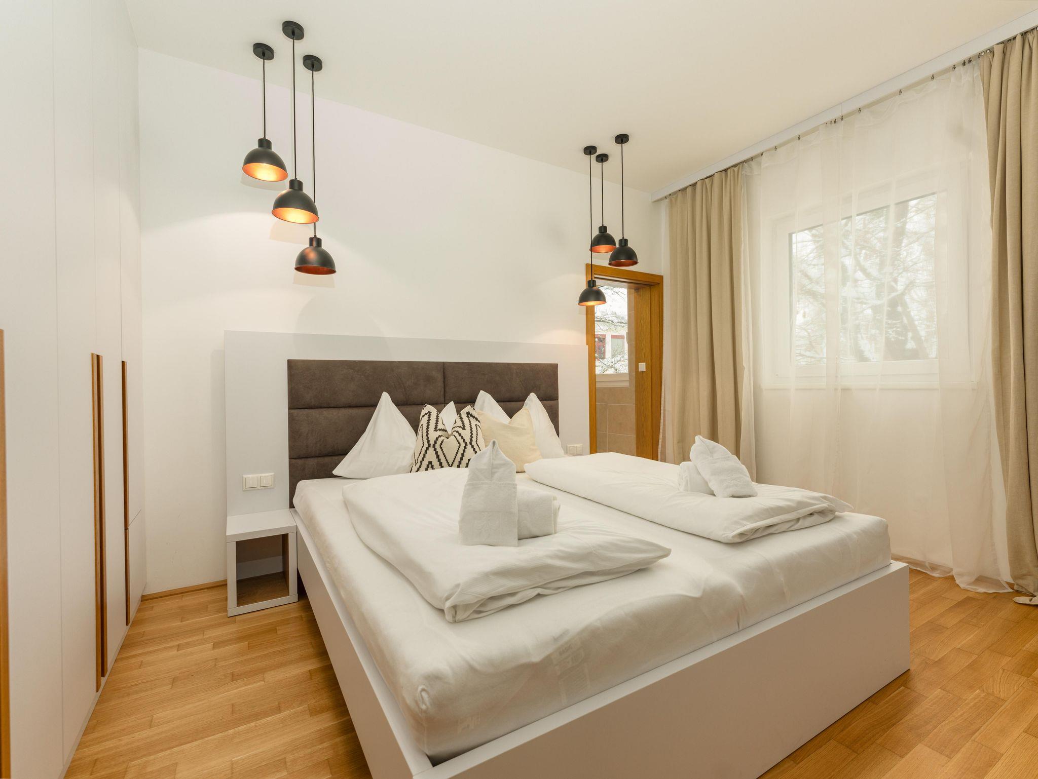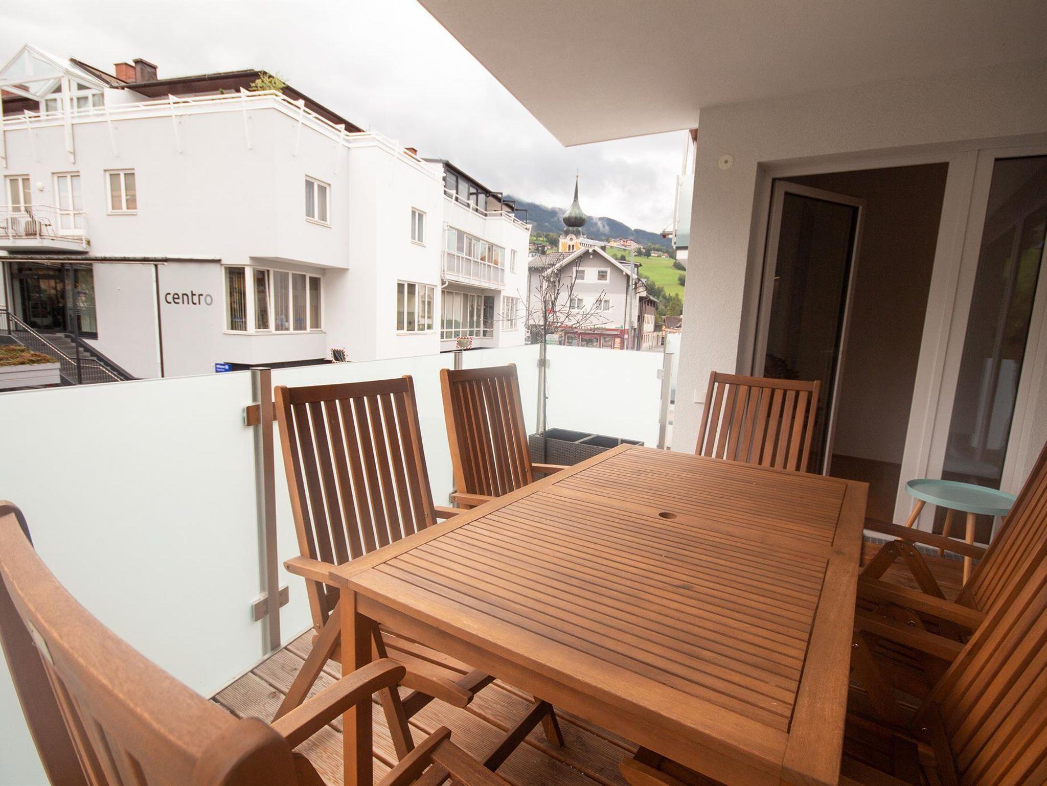Top 4: 87m² App. im 1. Obergeschoss für 4-6 Personen, großzügiger Wohnraum mit komplett und hochwertig ausgestatteter Küche, Esstisch, Schlafsofa für 2 Personen und TV, 10m² Balkon mit Balkonmöbel und tollem Ausblick auf den Planai Zielhang, zwei separate Schlafzimmer mit Doppelbett, ein en-suite Badezimmer mit Badewanne, Waschtisch sowie ein separates Badezimmer mit Regendusche und Waschtisch, eine separate Toilette ist vorhanden. Skibox mit Skischuhheizung und 1 Tiefgaragenparkplatz.