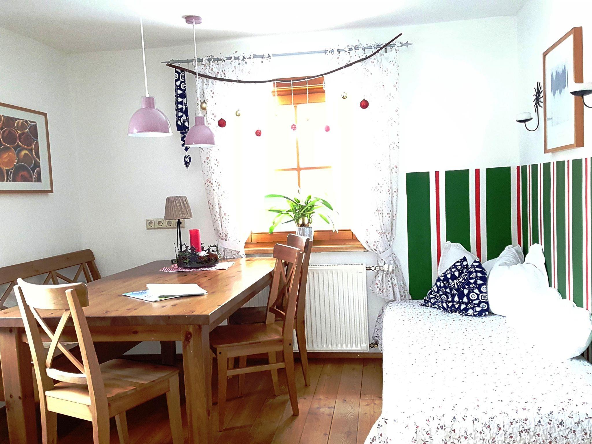 Das 70 m² große Appartement mit separatem Eingang bietet eine Wohnküche, zwei Schlafzimmer mit je einem Doppel- und Einzelbett sowie einen großzügigen Vorraum.