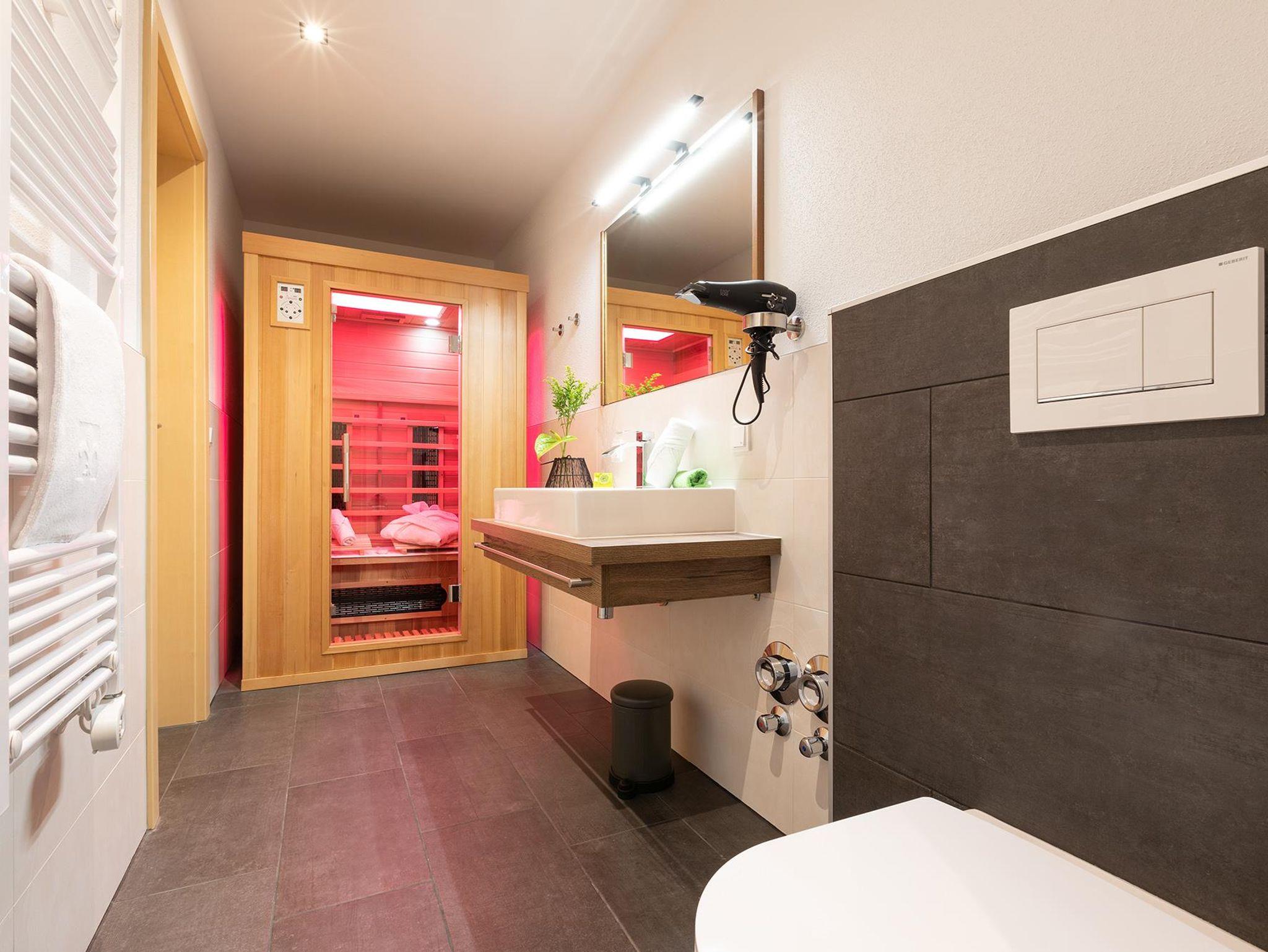 Ihre behagliche Rückzugszone schaffen Sie sich in geräumigen MASTERBEDROOMS mit eleganten Badezimmern und Infarotkabine.