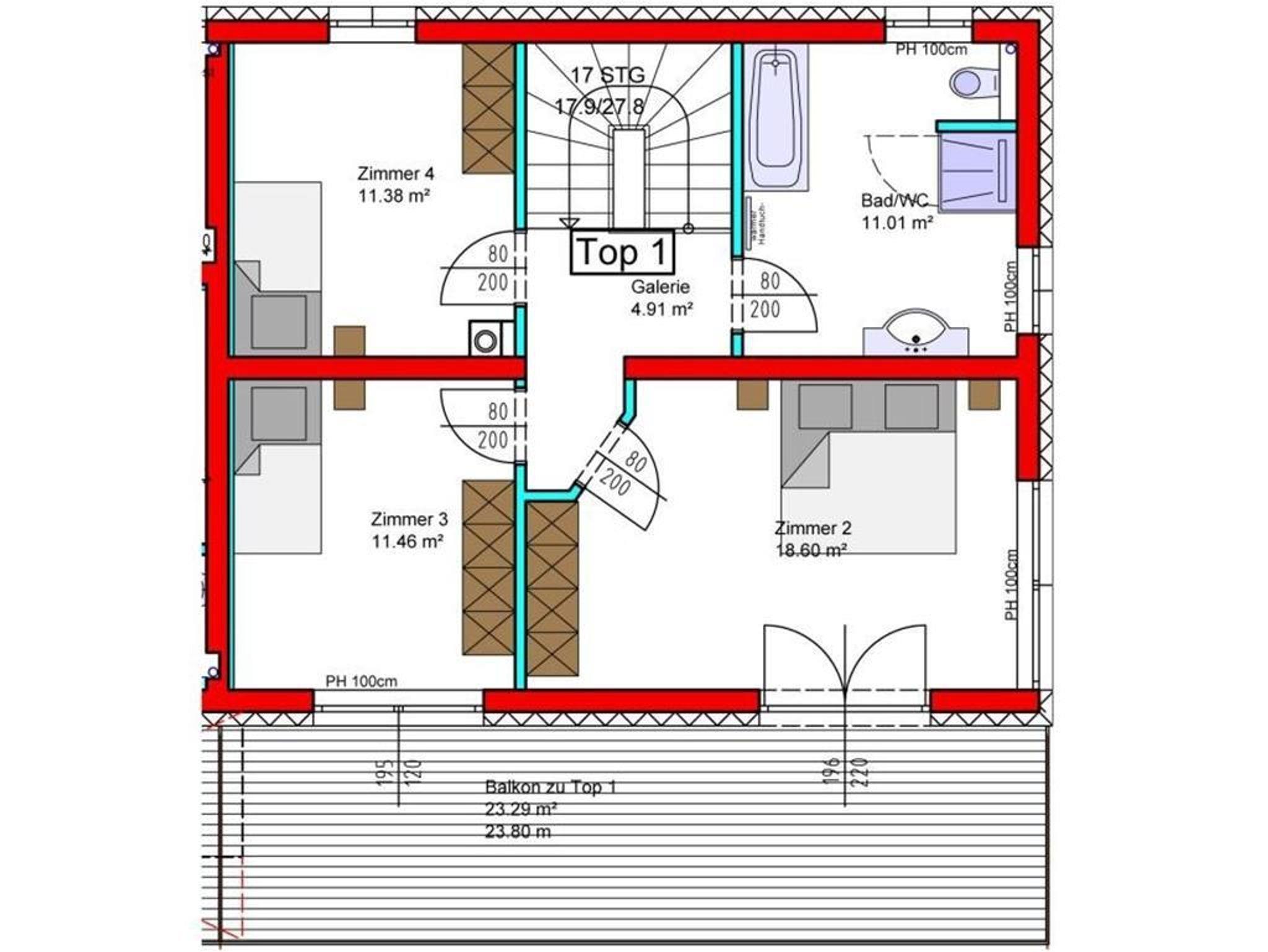 - 2 Bäder eines mit Dusche und WC sowie eines mit Badewanne und WC