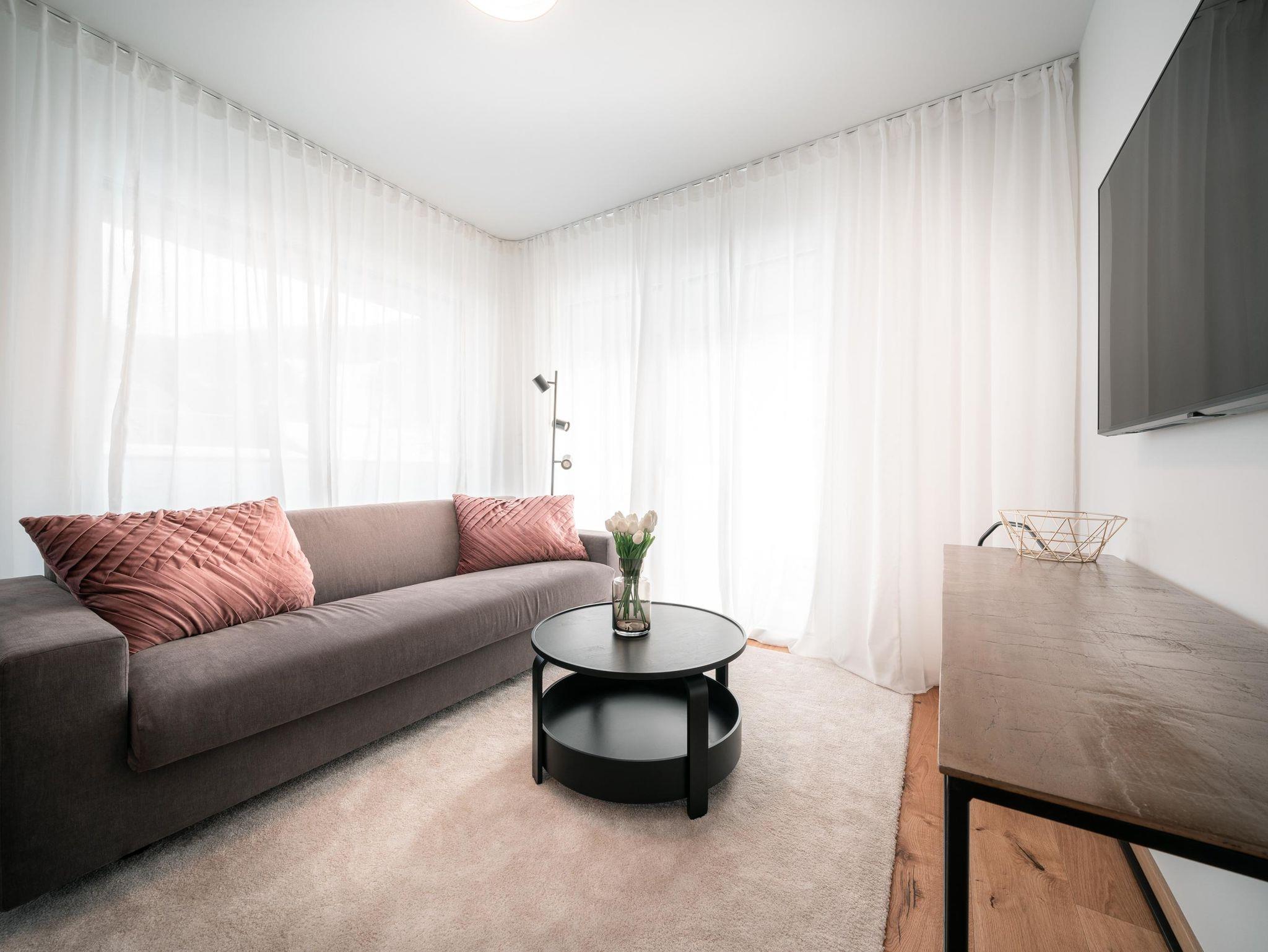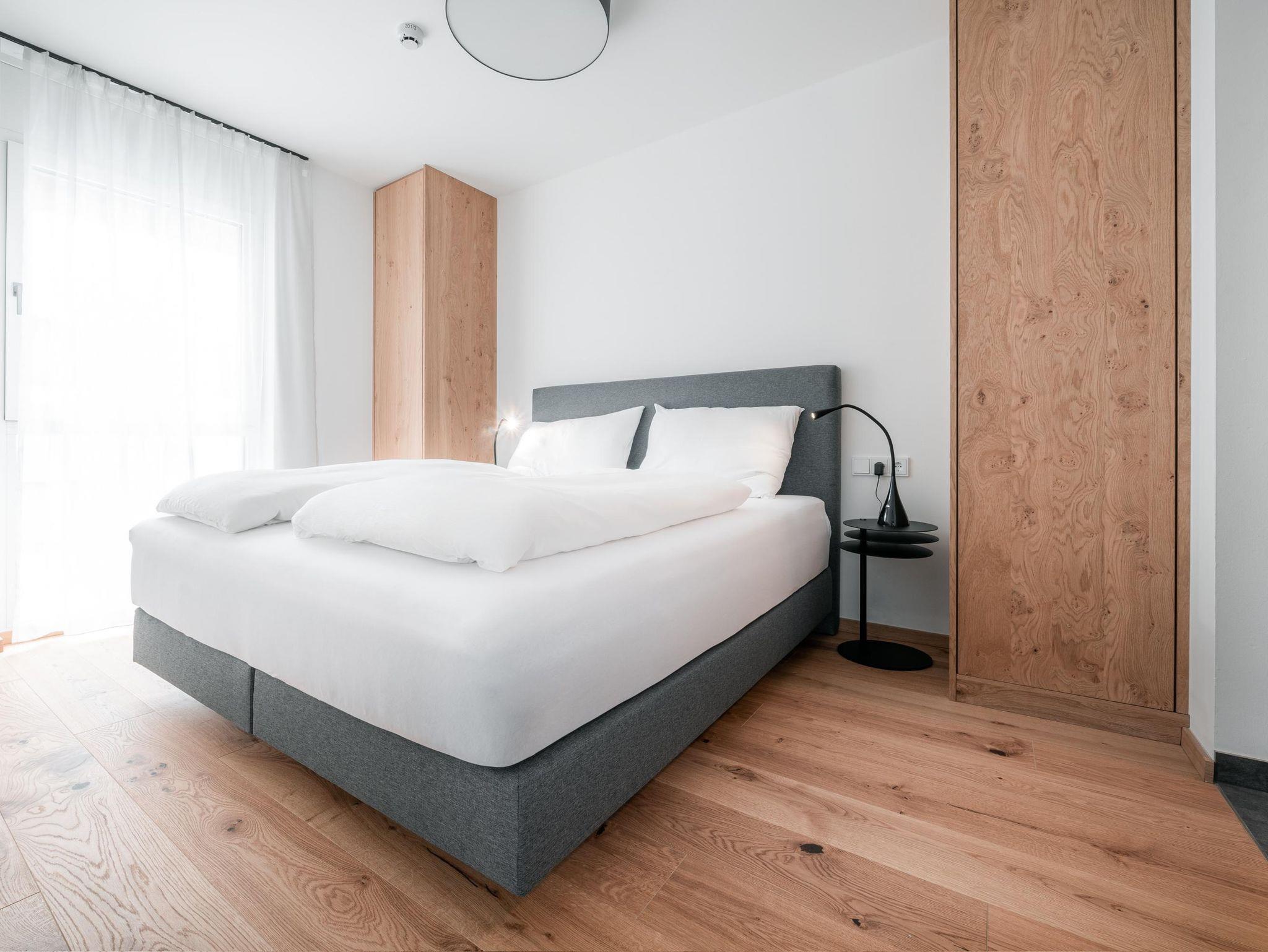 11 Appartements – von Garden, Studio, Comfort, Superior und Penthouse – jedes mit Balkon oder Terrasse, jedes ruhig, ein bis zwei Schlafzimmer, komplett ausgestattete Küchen, Tiefgarage, Skiraum, Radraum, W-Lan… das ist der Conrad – Komfort!