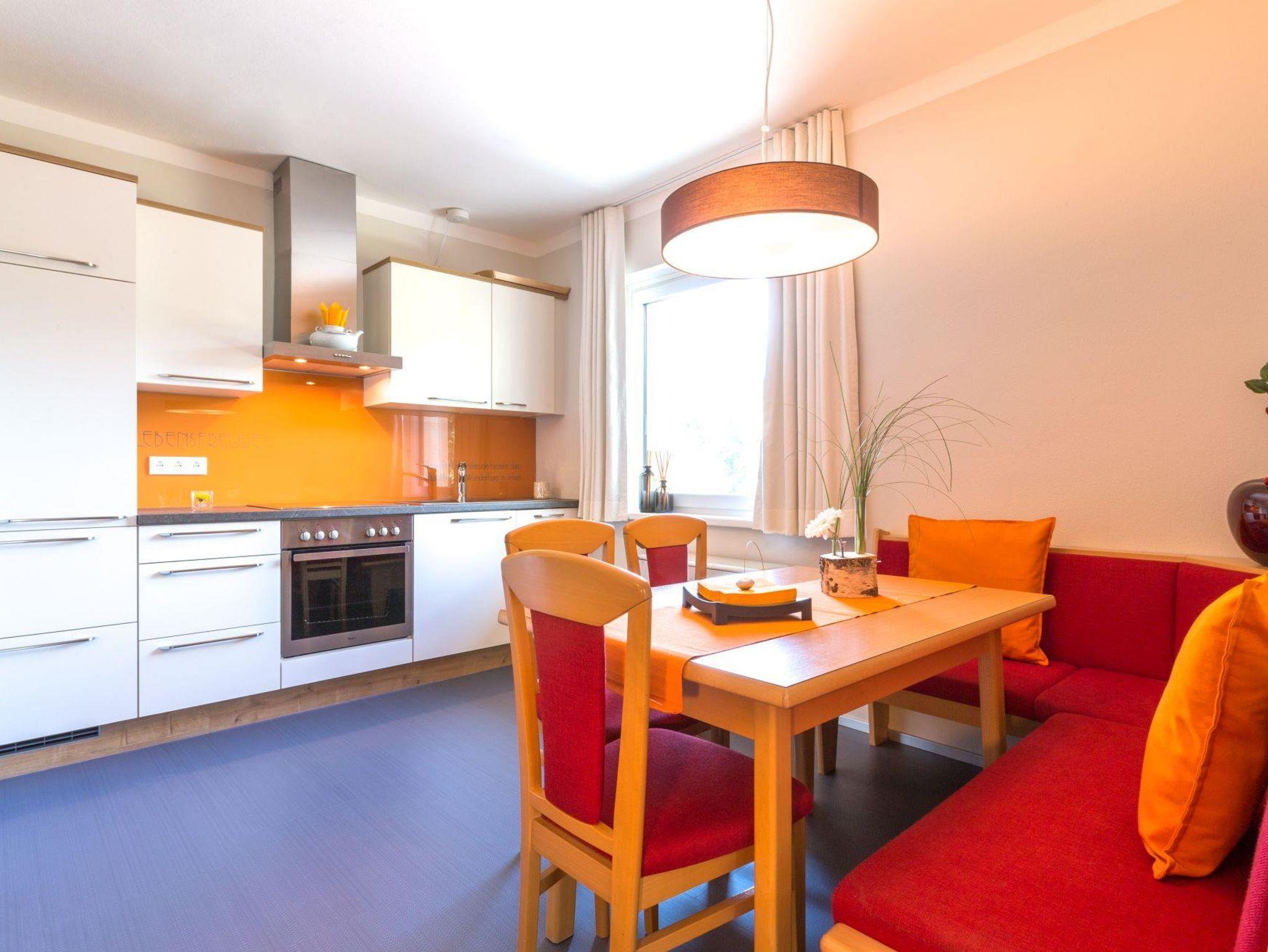 In der Kategorie Appartement Family 1 Schlafzimmer mit Balkonsteht Ihnen ein besonders familienfreundliches Zweiraumappartement im zweiten Stock zur Verfügung, in dem 3 – 6 Personen auf ca. 48 m² Wohnfläche urlauben. Erholung und angenehme Träume finden Sie im Familienschlafzimmer mit King-Size-Bett, Doppelcouch und Dusche mit WC. Die Küche ist voll ausgestattet und bietet einen einladenden Wohn- und Essbereich mit großem Esstisch und Doppelcouch. Bettwäsche und Handtücher sind inklusive. Vom großzügigen Balkon aus blicken Sie zum eindrucksvollen Dachstein-Massiv.