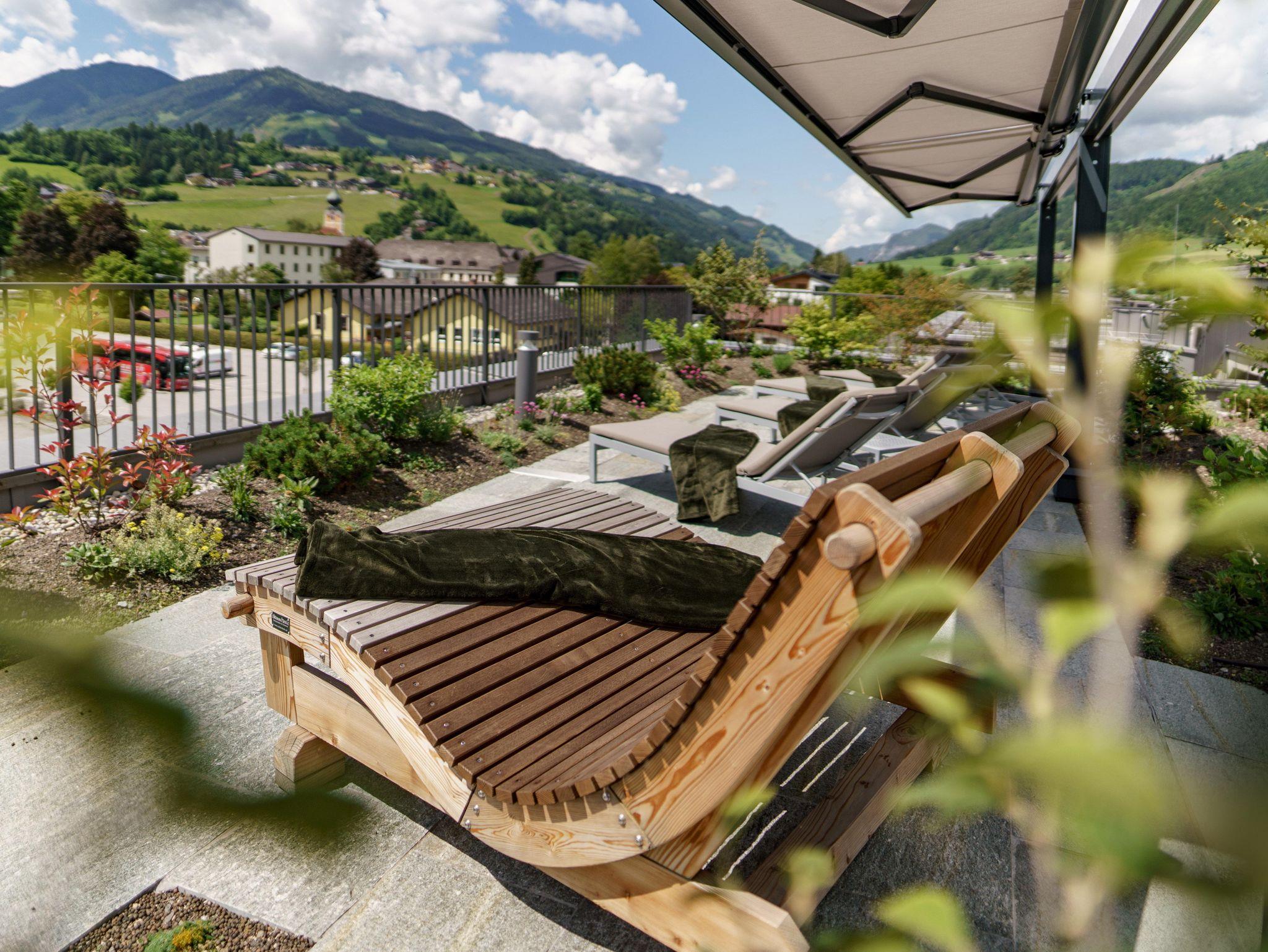 Unser Wellnessbereich Gipfel.Ruhe ist das Highlight. Ob auf der Dachterrasse oder im Ruheraum – der Blick auf Planai und die Tauern ist einfach spektakulär. Hier kannst du loslassen, durchatmen, auftanken.