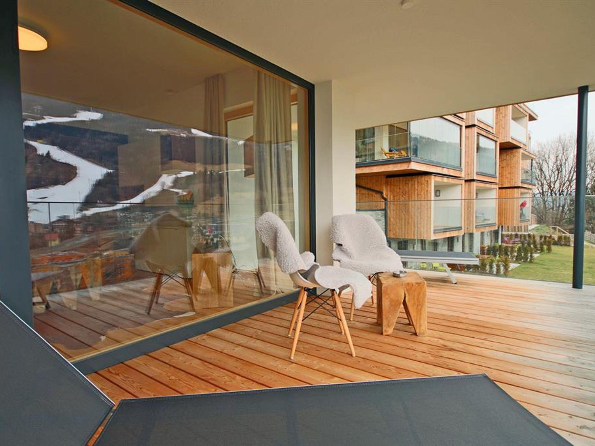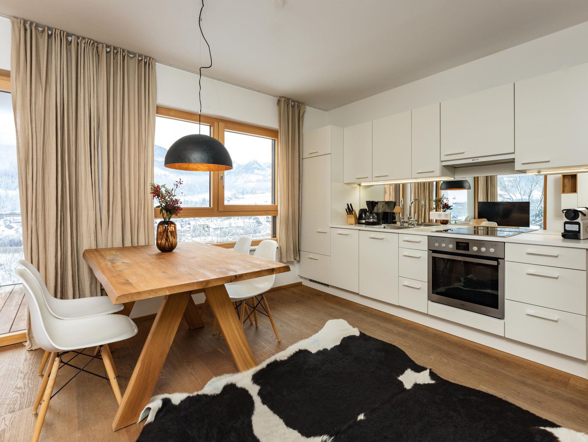 3 miteinander verbunden Häuser 38 servicierte Appartements, von 40m² Studios, Appartements mit einem, zwei oder drei Schlafzimmern bis hin zu 130m² Penthäusern, herrlichen Ausblick und Top Ausstattung inklusive! Die hochwertige Grundausstattung der Appartements mit heimischen Materialen wie Holz, Stein und Glas vermitteln ein modernes Wohlfühlambiente mit viel Licht und Aussicht, - eine Symbiose aus purem Lebensgefühl und Kraftplatz an der Sonne. Komplett ausgestattete Designküchen, großzügige Wohnräume zum Teil mit offenem Kamin, moderne & stylische Möbel, kostenfreies WLAN, Kabel TV in allen Schlaf- und Wohnräumen sowie moderne und lichtdurchflutete Badezimmer, lassen für den Gast, der seine private Freiheit schätzt, keine Wünsche offen .