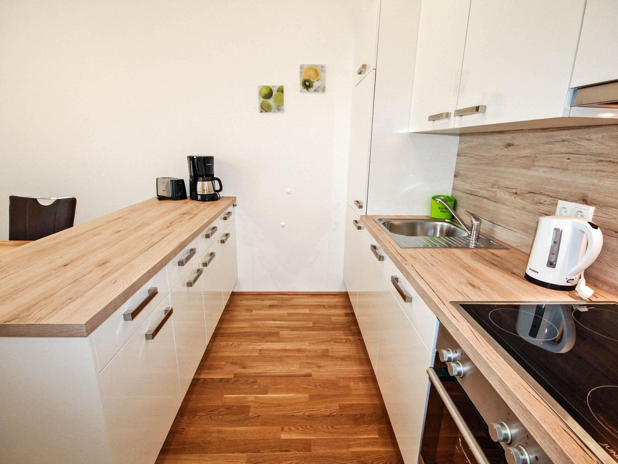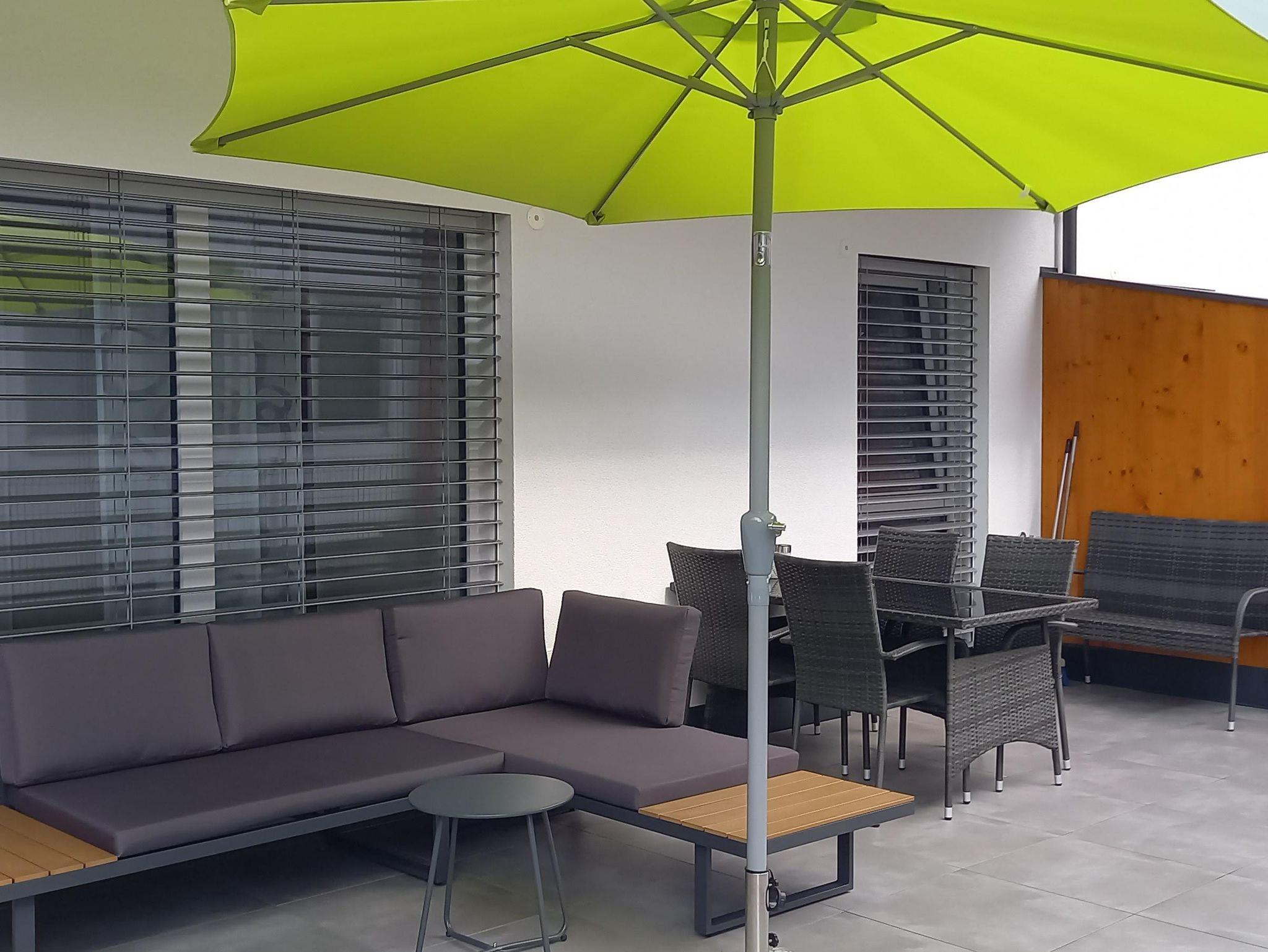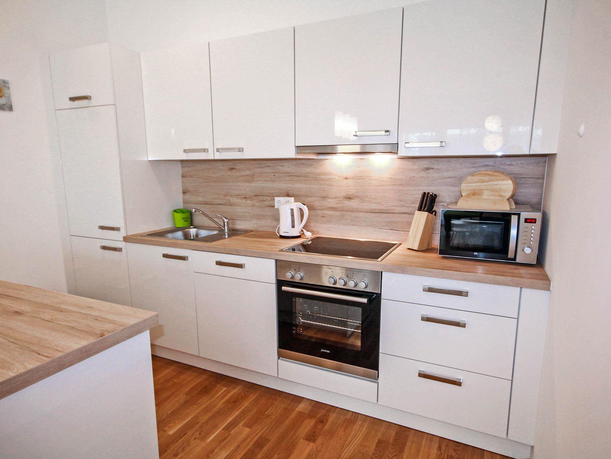 Top 2: 60 m² App. im Erdgeschoss für 2-4 Personen, voll ausgestattete Wohnküche mit Esstisch, Schlafsofa für 2 Personen und TV, 40 m² Terrasse mit Lounge- und Gartenmöbel, ein separates Schlafzimmer mit Doppelbett und TV, ein Badezimmer mit Dusche, eine separate Toilette, 1x Tiefgaragenparkplatz.
