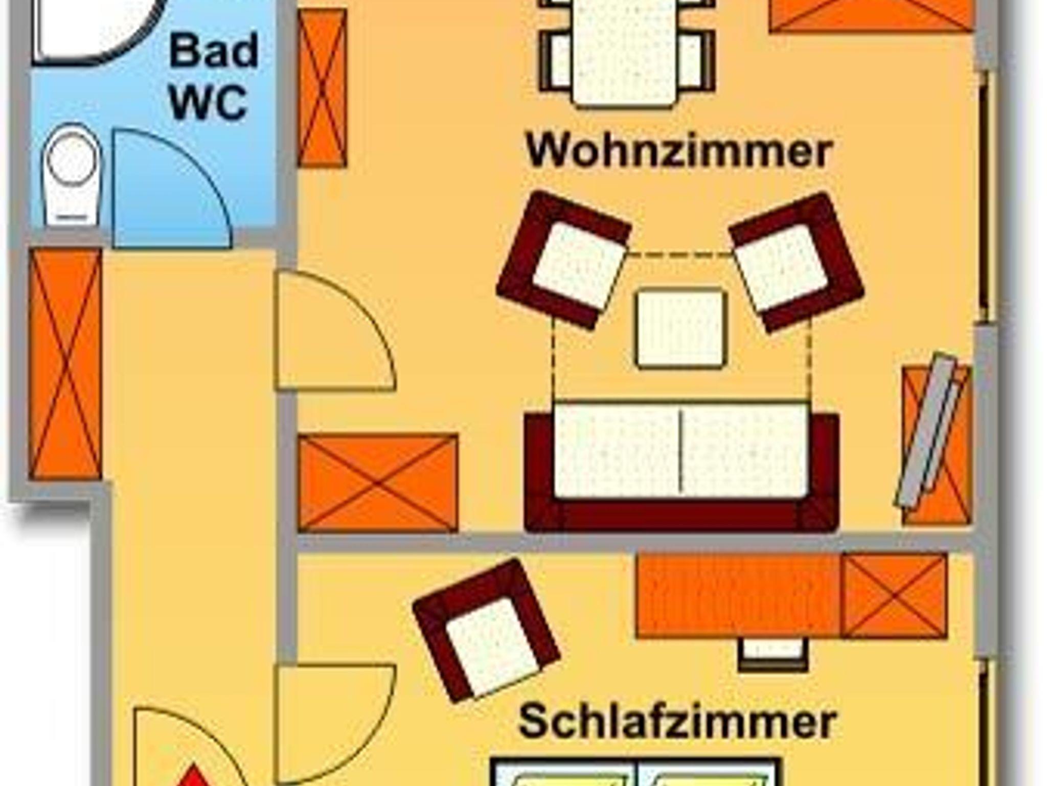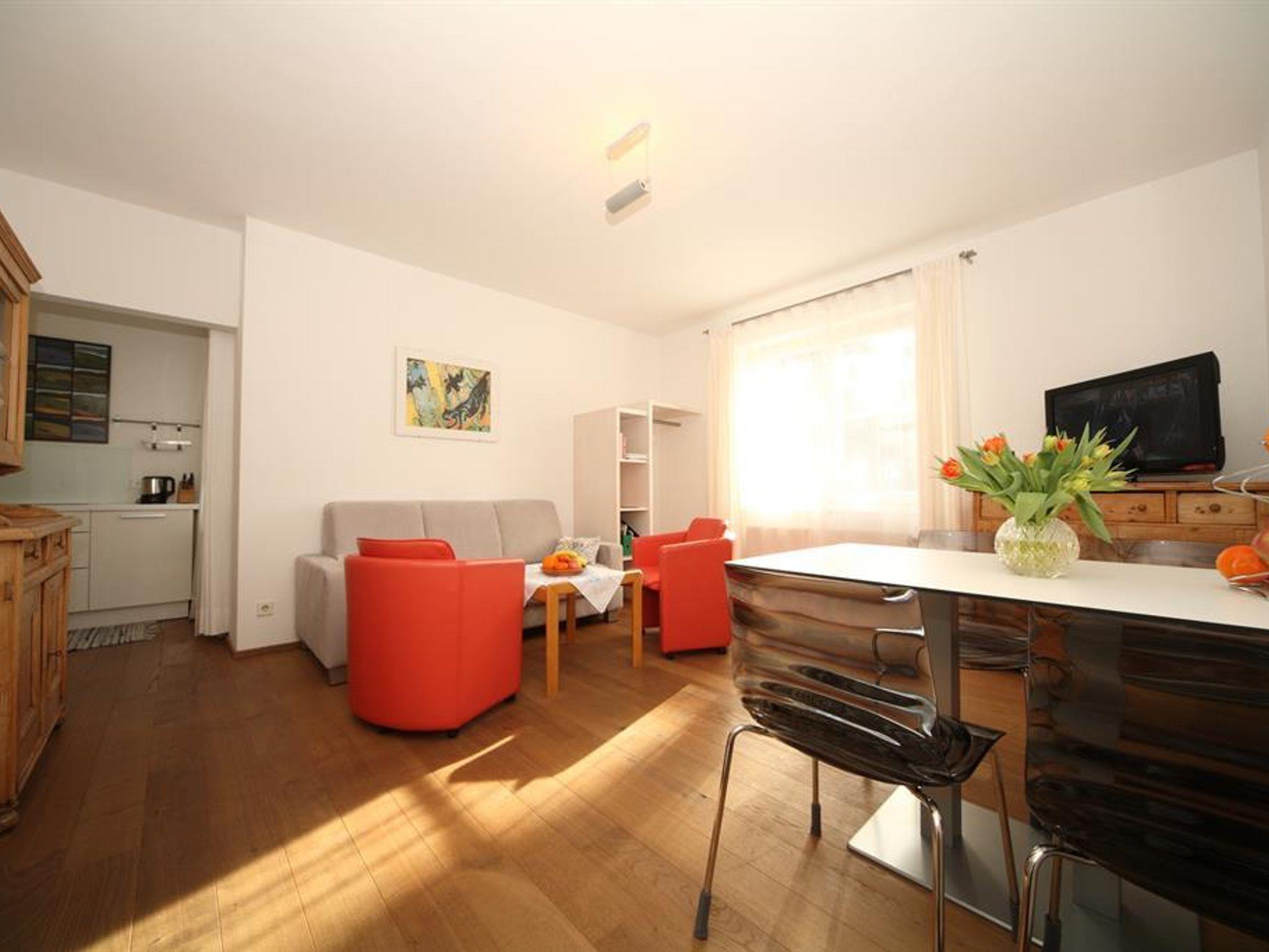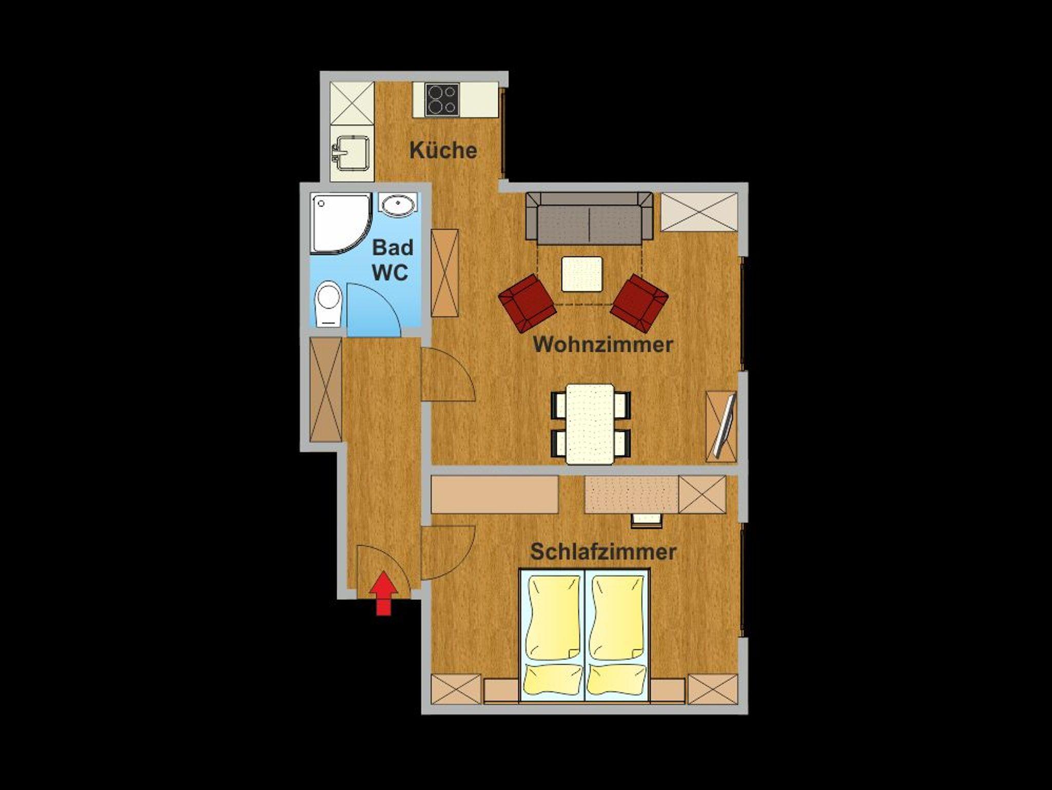 Das gemütlich und modern eingerichtete Appartement Breitfuss bietet auf 50m² Platz für 2-3 Personen. Die Parterrewohnung verfügt über ein Schlafzimmer mit Doppelbett für zwei Personen und einen Schlaf- Wohnraum für 1 Person. Die voll - ausgestattete Küche befindet sich in einer Nische im Wohnzimmer. Der Esstisch bietet Platz für 4 Personen. Das Bad verfügt über eine Dusche und ein WC.