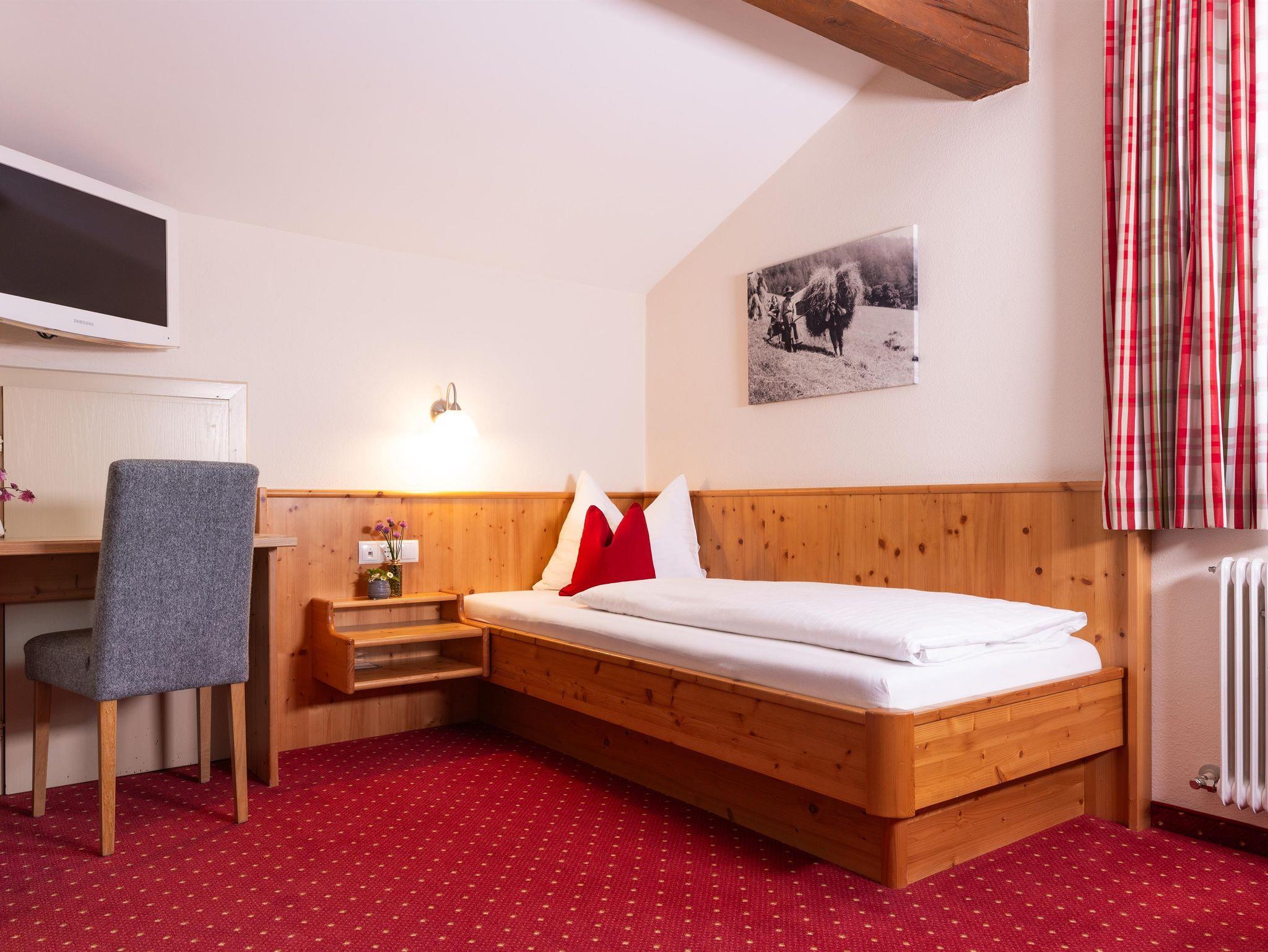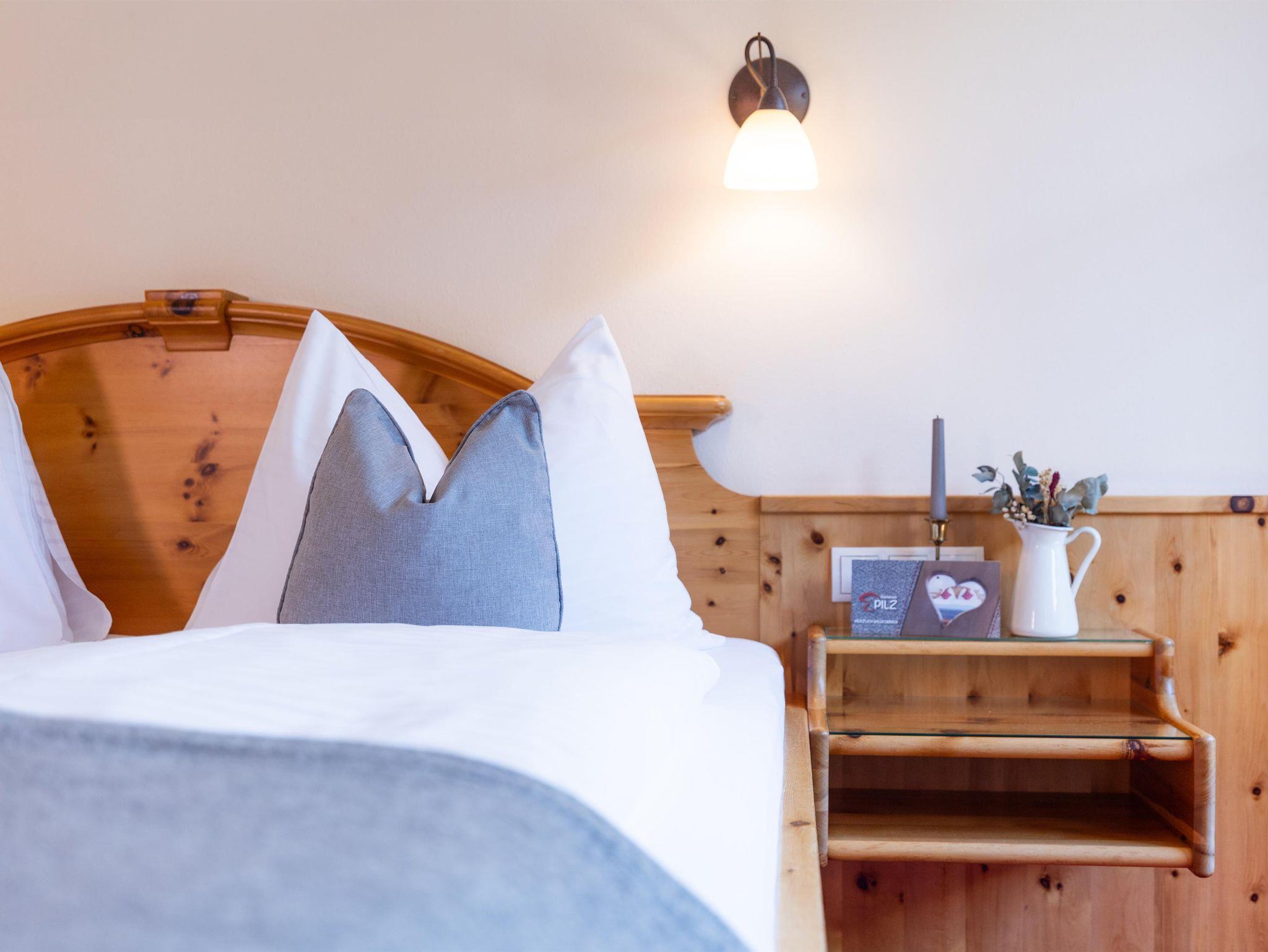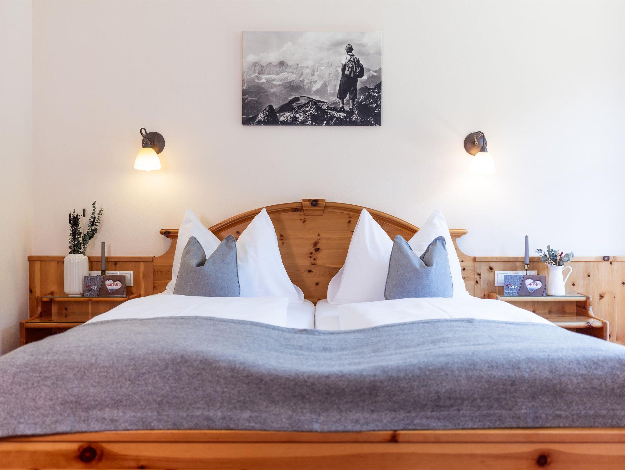Bei der Einrichtung der Zimmer wurde bewusst darauf geachtet, Materialien aus der Region zu integrieren. So wurden die Möbel aus heimischem Zirbenholz gefertigt. Die besondere Eigenschaft der Zirbe, den Herzschlag zu verlangsamen, führt dazu, dass Dein Herz sich täglich eine Stunde Arbeit spart und Du erholt in den neuen Tag startest.