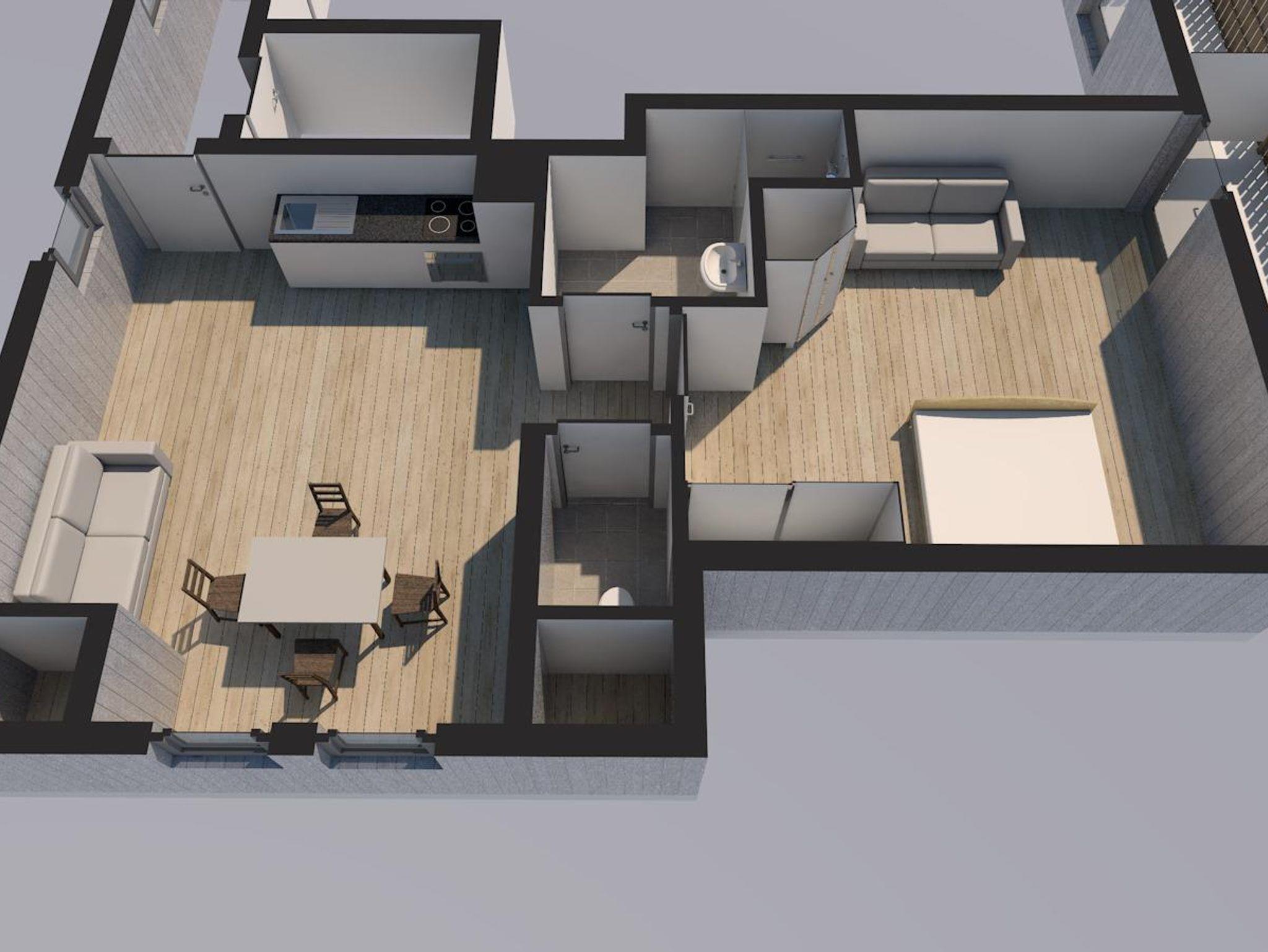 1 Schlafzimmer, Badezimmer und WC getrennt.