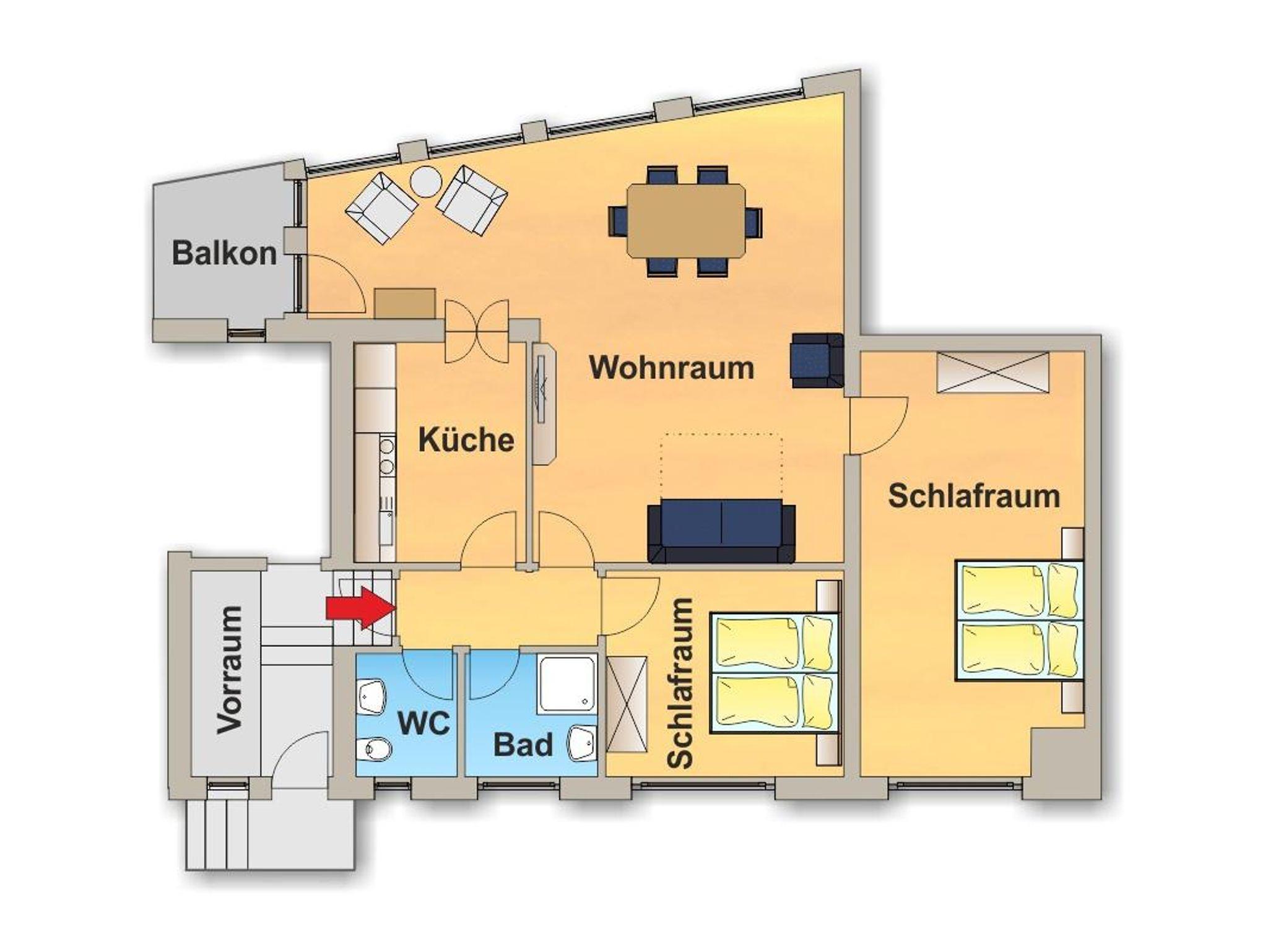 Großzügiges Appartement mit zwei Schlafzimmern, Badezimmer und seperatem WC.
