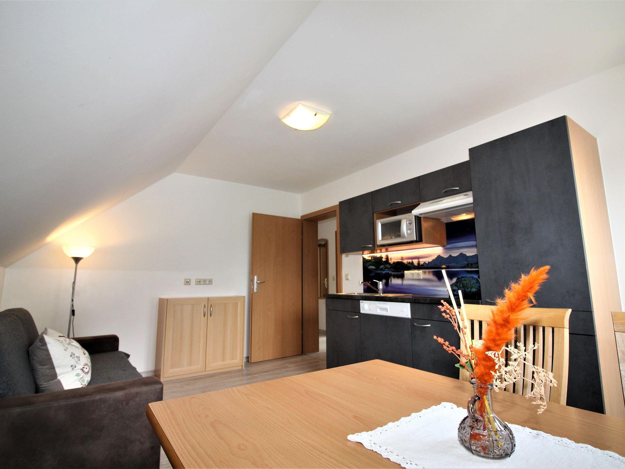 Unser Appartement für 2 - 4 Personen besteht aus einem Vorraum, einem Schlafzimmer, einer Wohnküche, einem Bad und getrenntem WC. Jedes unserer Appartements ist ausgestattet mit: Kabel-TV, Mikrowelle, Geschirrspu¨ler, Ku¨hlschrank mit Gefrierfach, Kochplatten, Kaffeemaschine, Wasserkocher, Geschirr, Handtu¨cher und Bettwäsche. Ein Schi- und Schuhraum steht zur Verfu¨gung und wir bieten auch Brötchenservice.
