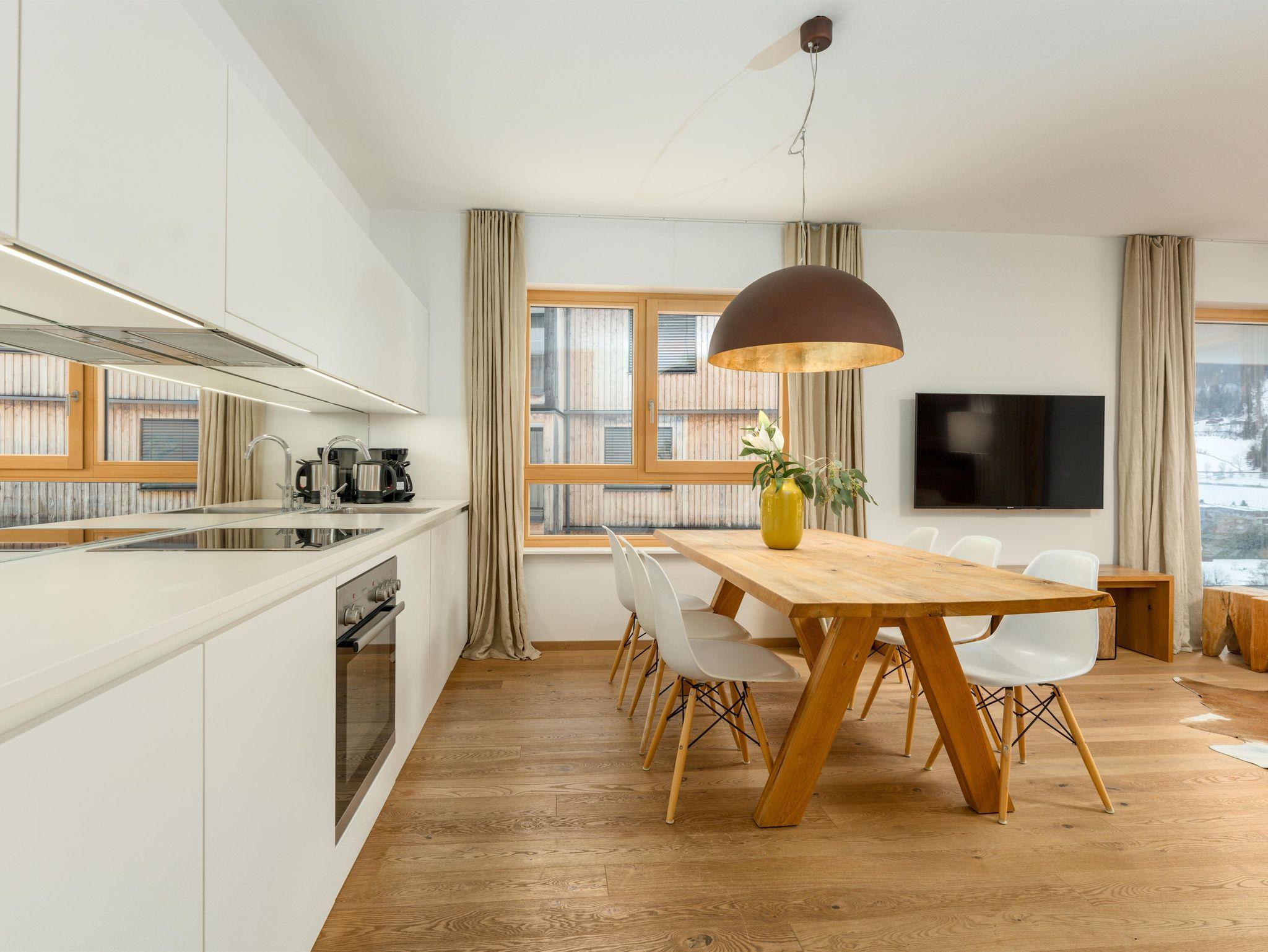 3 miteinander verbunden Häuser 38 servicierte Appartements, von 40m² Studios, Appartements mit einem, zwei oder drei Schlafzimmern bis hin zu 130m² Penthäusern, herrlichen Ausblick und Top Ausstattung inklusive! Die hochwertige Grundausstattung der Appartements mit heimischen Materialen wie Holz, Stein und Glas vermitteln ein modernes Wohlfühlambiente mit viel Licht und Aussicht, - eine Symbiose aus purem Lebensgefühl und Kraftplatz an der Sonne. Komplett ausgestattete Designküchen, großzügige Wohnräume zum Teil mit offenem Kamin, moderne & stylische Möbel, kostenfreies WLAN, Kabel TV in allen Schlaf- und Wohnräumen sowie moderne und lichtdurchflutete Badezimmer, lassen für den Gast, der seine private Freiheit schätzt, keine Wünsche offen .
