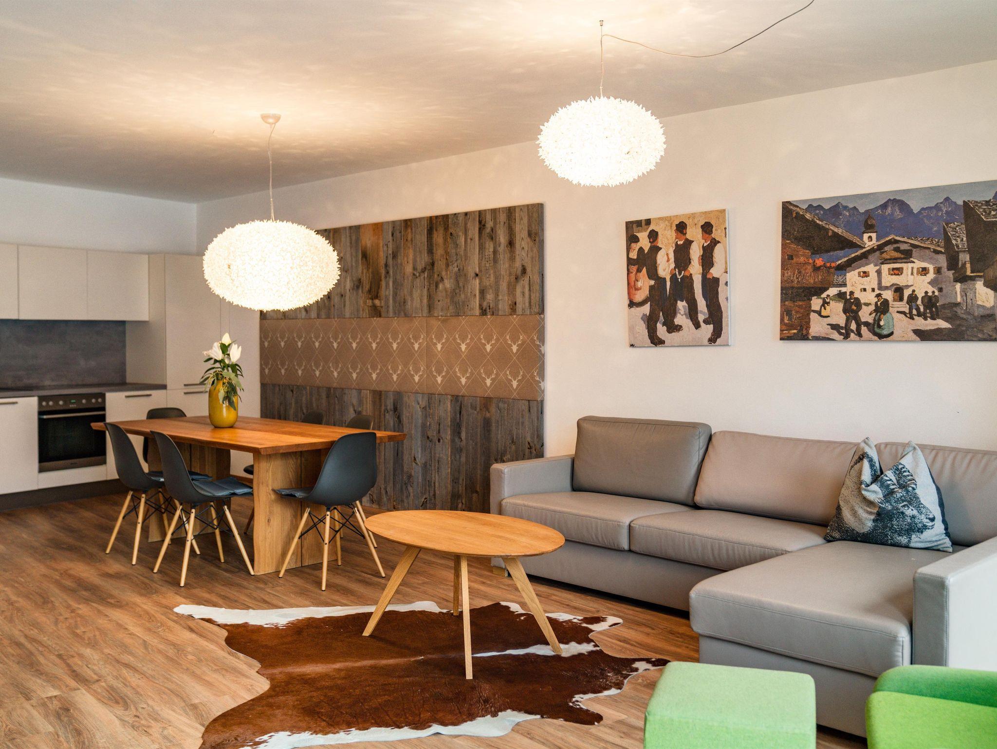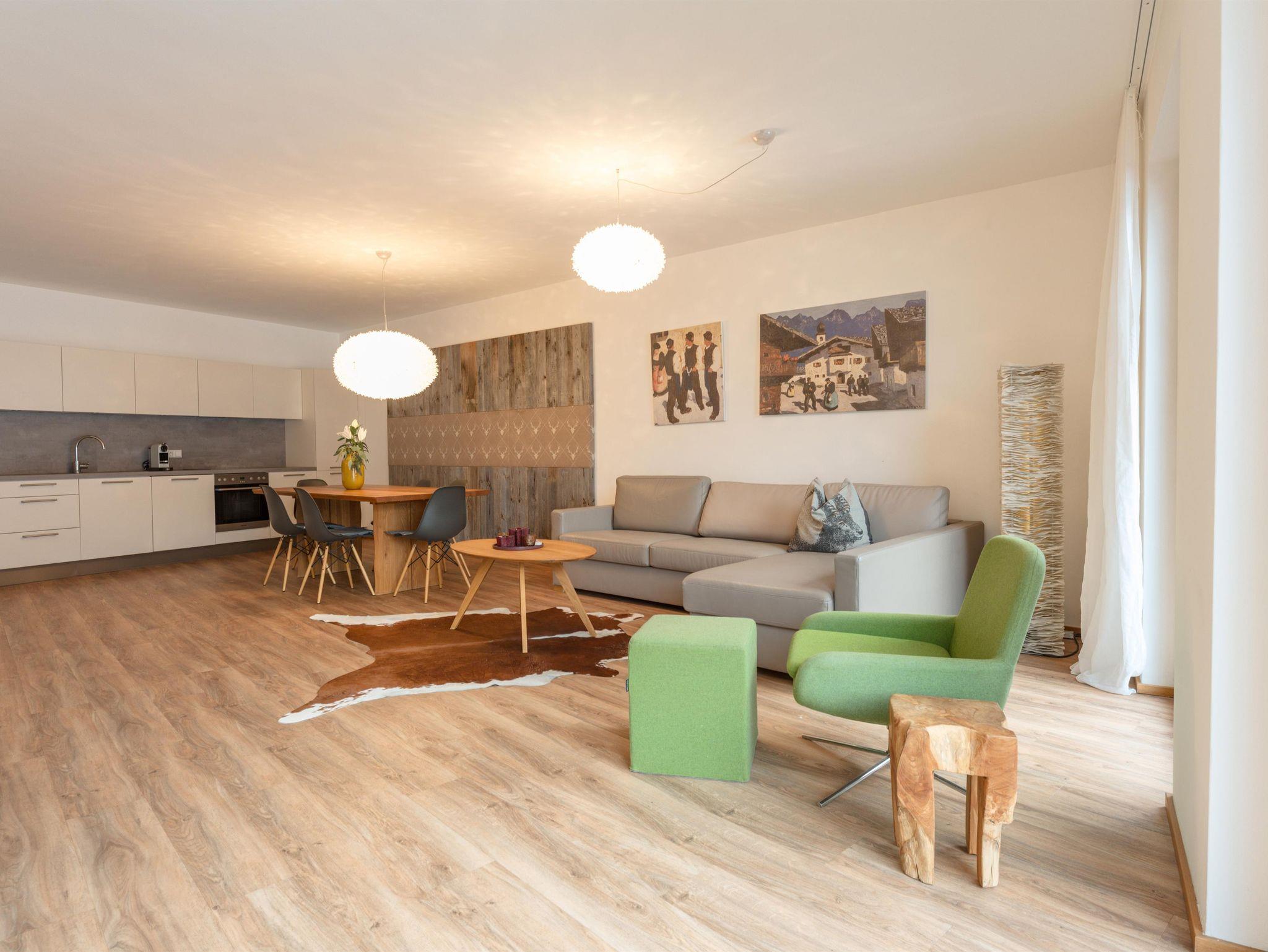 3 miteinander verbunden Häuser 38 servicierte Appartements, von 40m² Studios, Appartements mit einem, zwei oder drei Schlafzimmern bis hin zu 130m² Penthäusern, herrlichen Ausblick und Top Ausstattung inklusive! Die hochwertige Grundausstattung der Appartements mit heimischen Materialen wie Holz, Stein und Glas vermitteln ein modernes Wohlfühlambiente mit viel Licht und Aussicht, - eine Symbiose aus purem Lebensgefühl und Kraftplatz an der Sonne. Komplett ausgestattete Designküchen, großzügige Wohnräume zum Teil mit offenem Kamin, moderne & stylische Möbel, kostenfreies WLAN, Kabel TV in allen Schlaf- und Wohnräumen sowie moderne und lichtdurchflutete Badezimmer, lassen für den Gast, der seine private Freiheit schätzt, keine Wünsche offen .