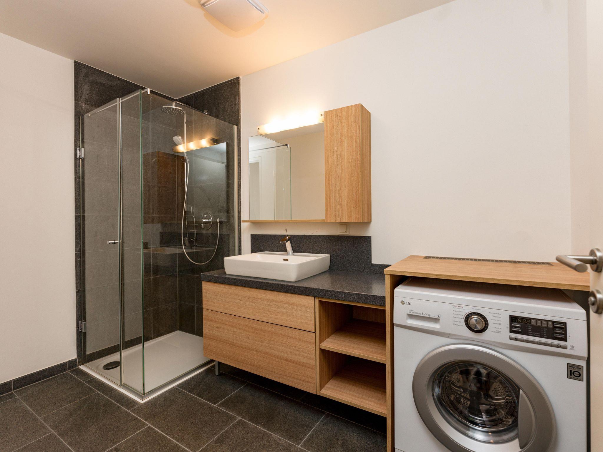 - 1 Badezimmer mit Dusche, Waschmaschine mit Trocknerfunktion, 1 separates WC