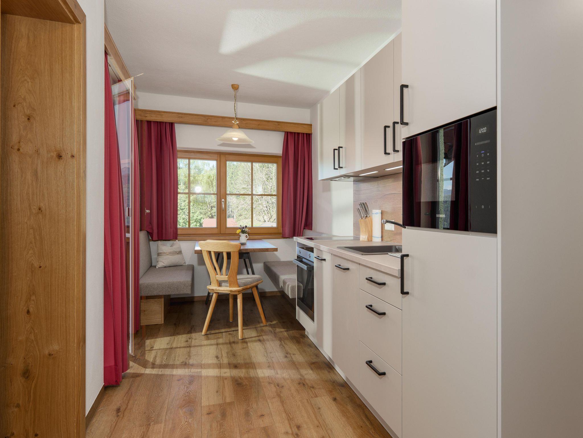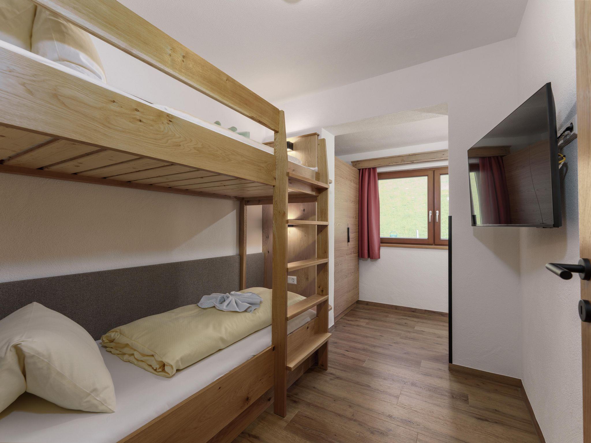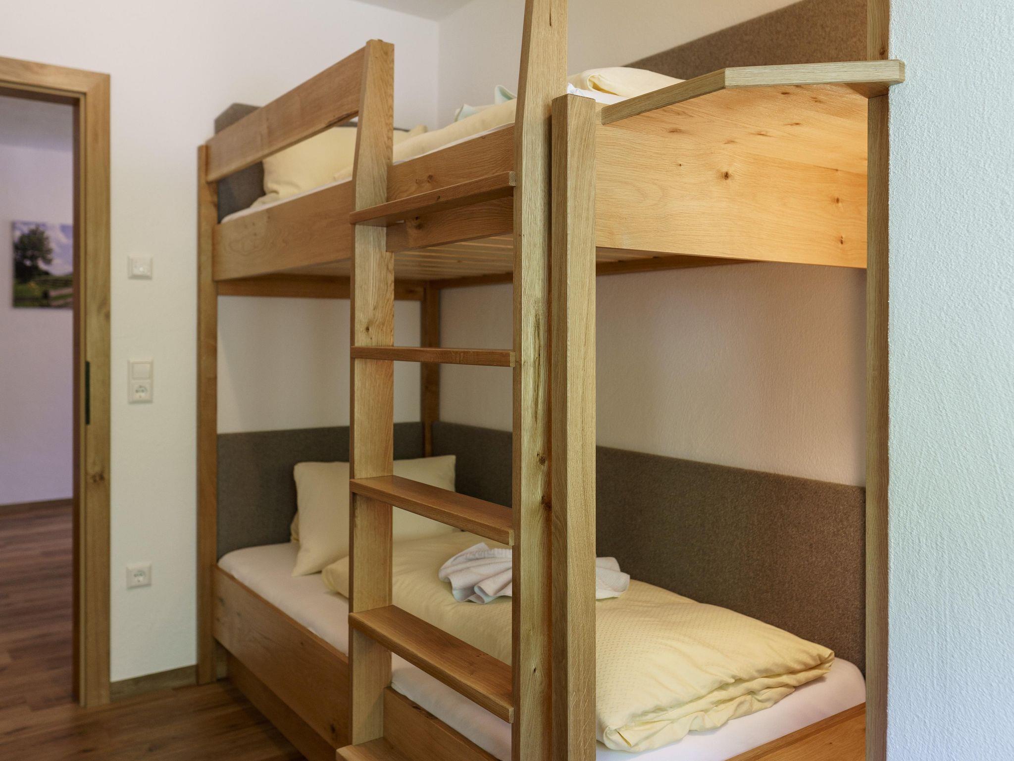 Die 2025 komplett neu errichtete Ferienwohnung Abendrot verfügt über einen großen Vorraum, eine großzügige Wohnküche mit Essbereich, ein Schlafzimmer mit Doppelbett und ein weiteres Schlafzimmer mit Stockbett. Beide Schlafzimmer verfügen über je einen Flat Tv und Balkon. Auf Anfrage ist hier auch eine fünfte Person in einem Notbett im Zimmer wo das Doppelbett steht möglich.