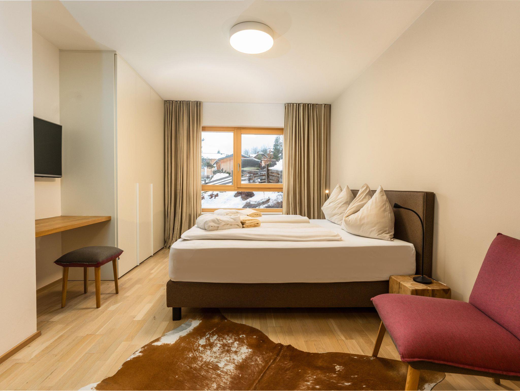 3 miteinander verbunden Häuser 38 servicierte Appartements, von 40m² Studios, Appartements mit einem, zwei oder drei Schlafzimmern bis hin zu 130m² Penthäusern, herrlichen Ausblick und Top Ausstattung inklusive! Die hochwertige Grundausstattung der Appartements mit heimischen Materialen wie Holz, Stein und Glas vermitteln ein modernes Wohlfühlambiente mit viel Licht und Aussicht, - eine Symbiose aus purem Lebensgefühl und Kraftplatz an der Sonne. Komplett ausgestattete Designküchen, großzügige Wohnräume zum Teil mit offenem Kamin, moderne & stylische Möbel, kostenfreies WLAN, Kabel TV in allen Schlaf- und Wohnräumen sowie moderne und lichtdurchflutete Badezimmer, lassen für den Gast, der seine private Freiheit schätzt, keine Wünsche offen .