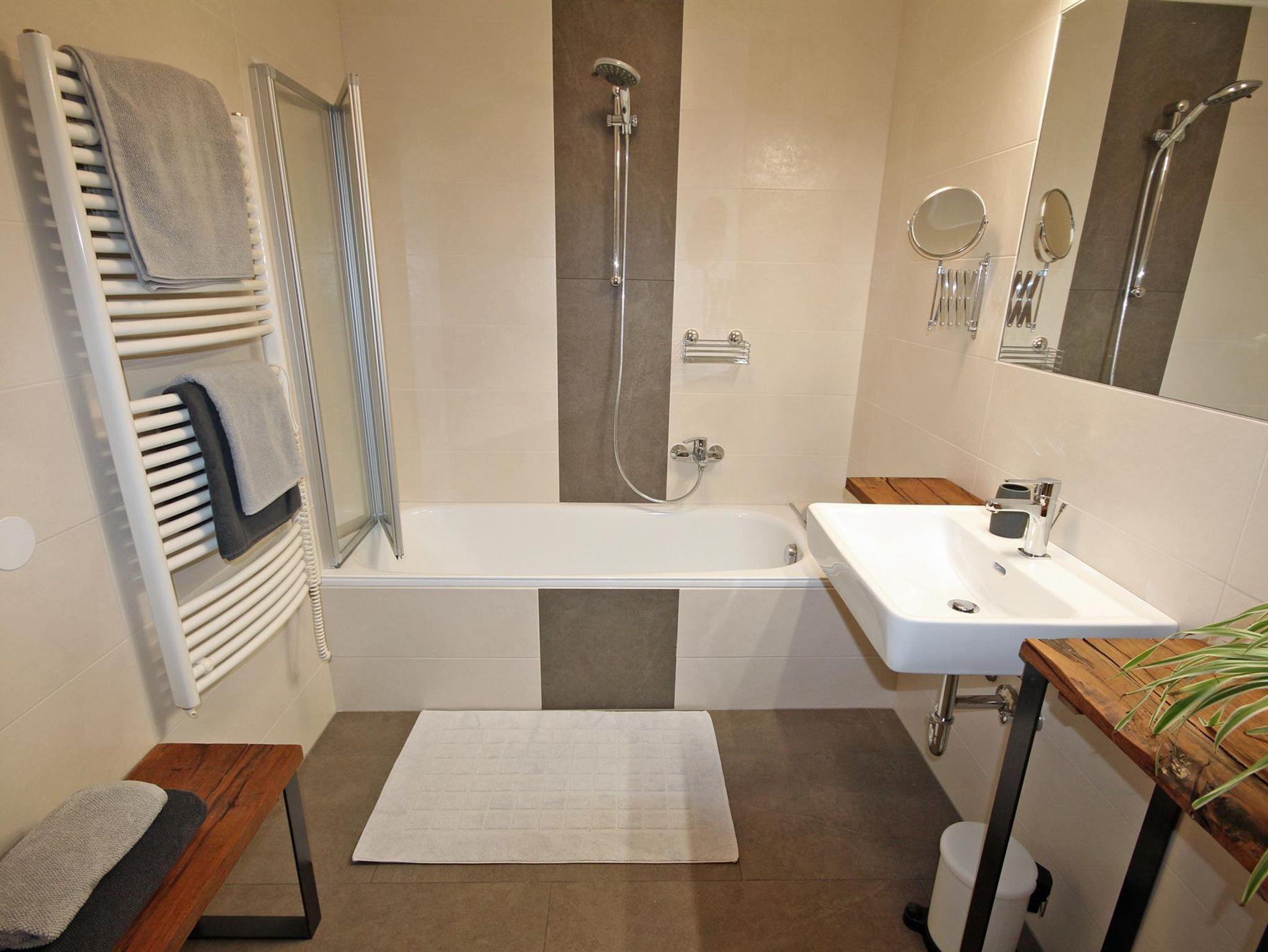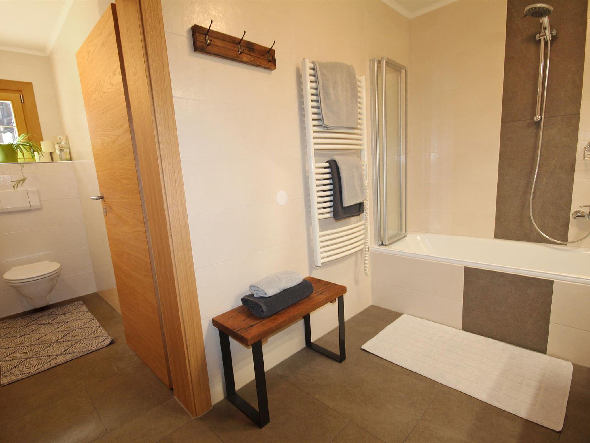-1 Badezimmer mit Badewanne, Waschtisch und separatem WC