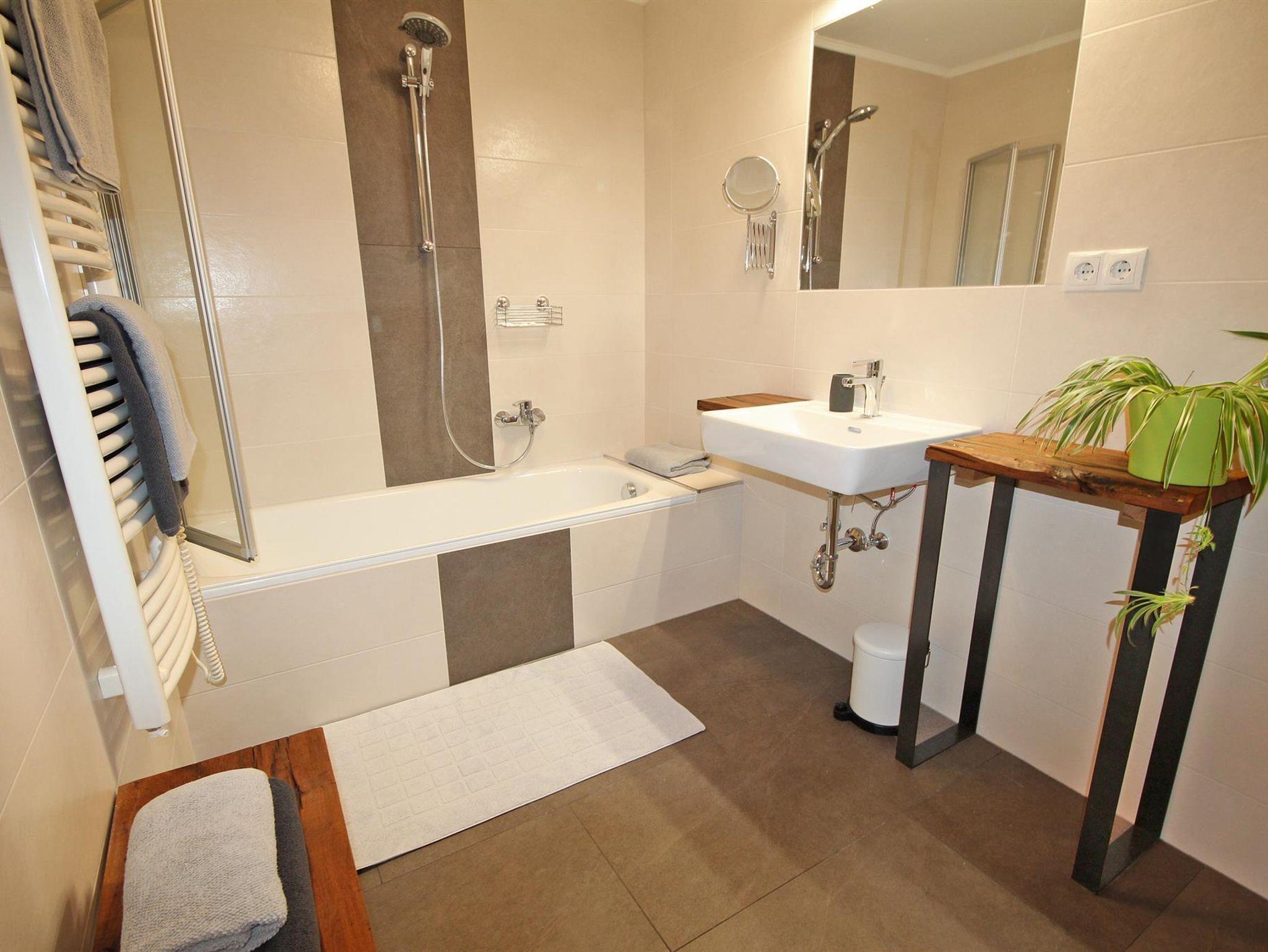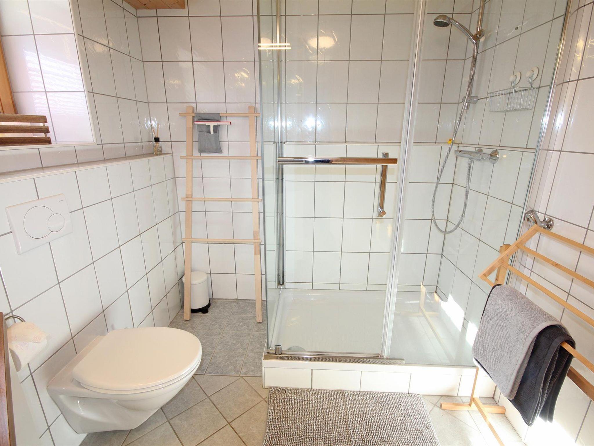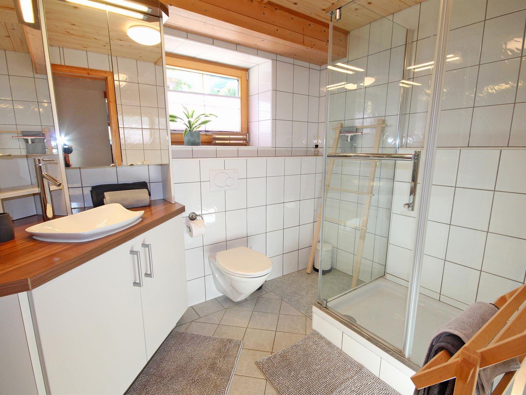 -1 Badezimmer mit Dusche, Waschtisch und WC