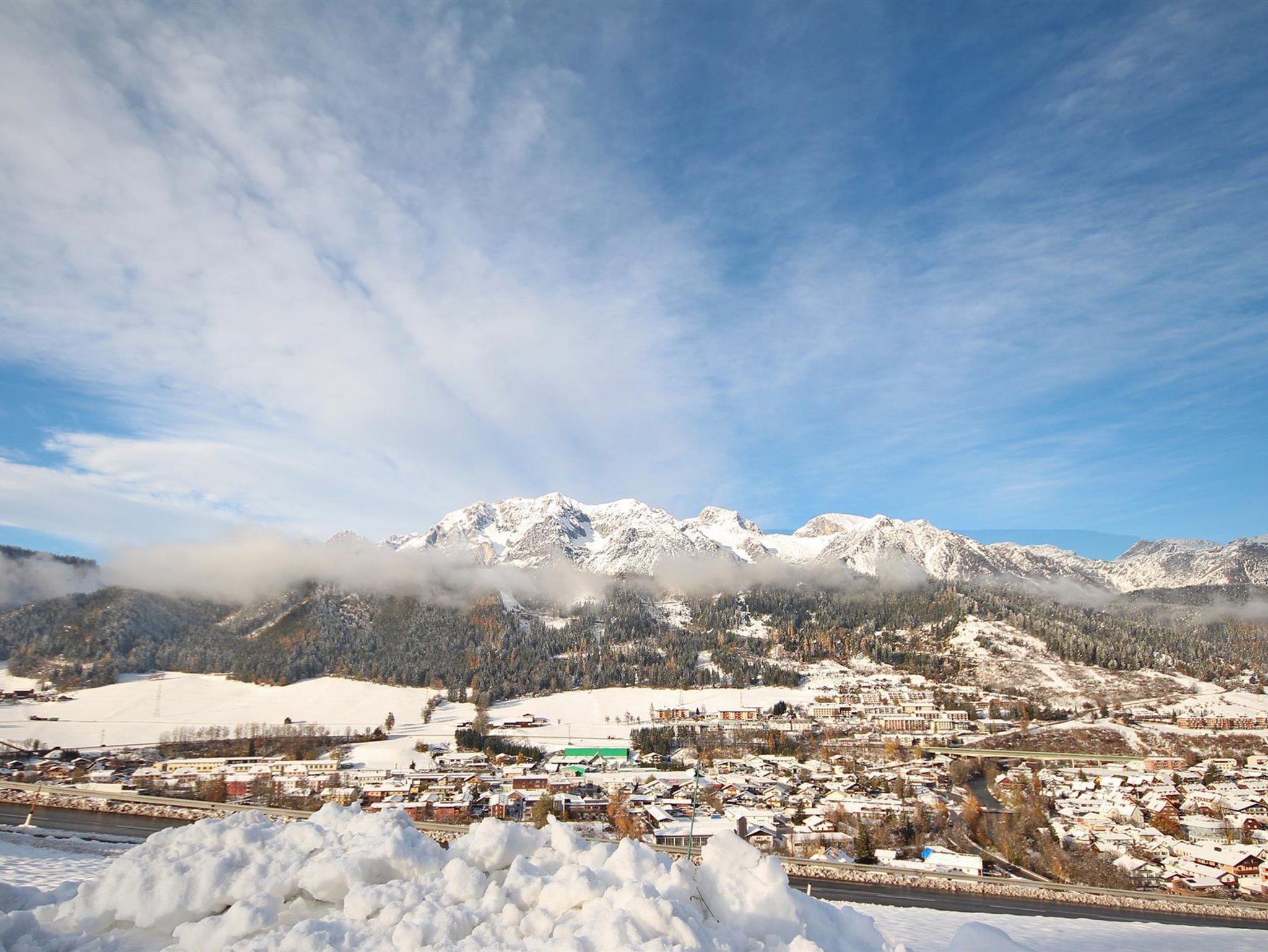 Wie der Name bereits verspricht, bietet das Appartement Ennst(h)aler den atemberaubendsten Ausblick ins Ennstal und das Dachsteingebirge. In sonniger Hanglage in Rohrmoos, nur ein Stückchen oberhalb der pulsierenden Stadt Schladming, erleben Sie die schönsten Urlaubstage im Jahr. Das neu renovierte, stilvolle Appartement Ennst(h)aler, von welchem die Pisten der Planai West nur ca. 400 Meter entfernt sind, überzeugt mit hohem Wohnkomfort auf 2 Etagen und 135 m² Wohnfläche und einer Komplettausstattung mit alpinem Charme. Ein großzügiger Koch-Ess-Wohnbereich mit voll ausgestatteter Küche, Esstisch und TV, 4 separate Schlafzimmer (2x Doppelbett + 2x Französisches Bett), 2 Badezimmer und eine kleine aber feine Wohnecke mit Sofa und TV bieten ausreichend Platz für bis zu 8 Personen. Die Aussicht genießen Sie von allen Räumlichkeiten am besten aber von der sonnigen Terrasse mit Grill. Ihre Skiausrüstung ist direkt vor dem Appartement bestens verwahrt. W-Lan, Kabel TV und Parkplätze, direkt vor dem Haus, stehen ebenso kostenfrei zur Verfügung.