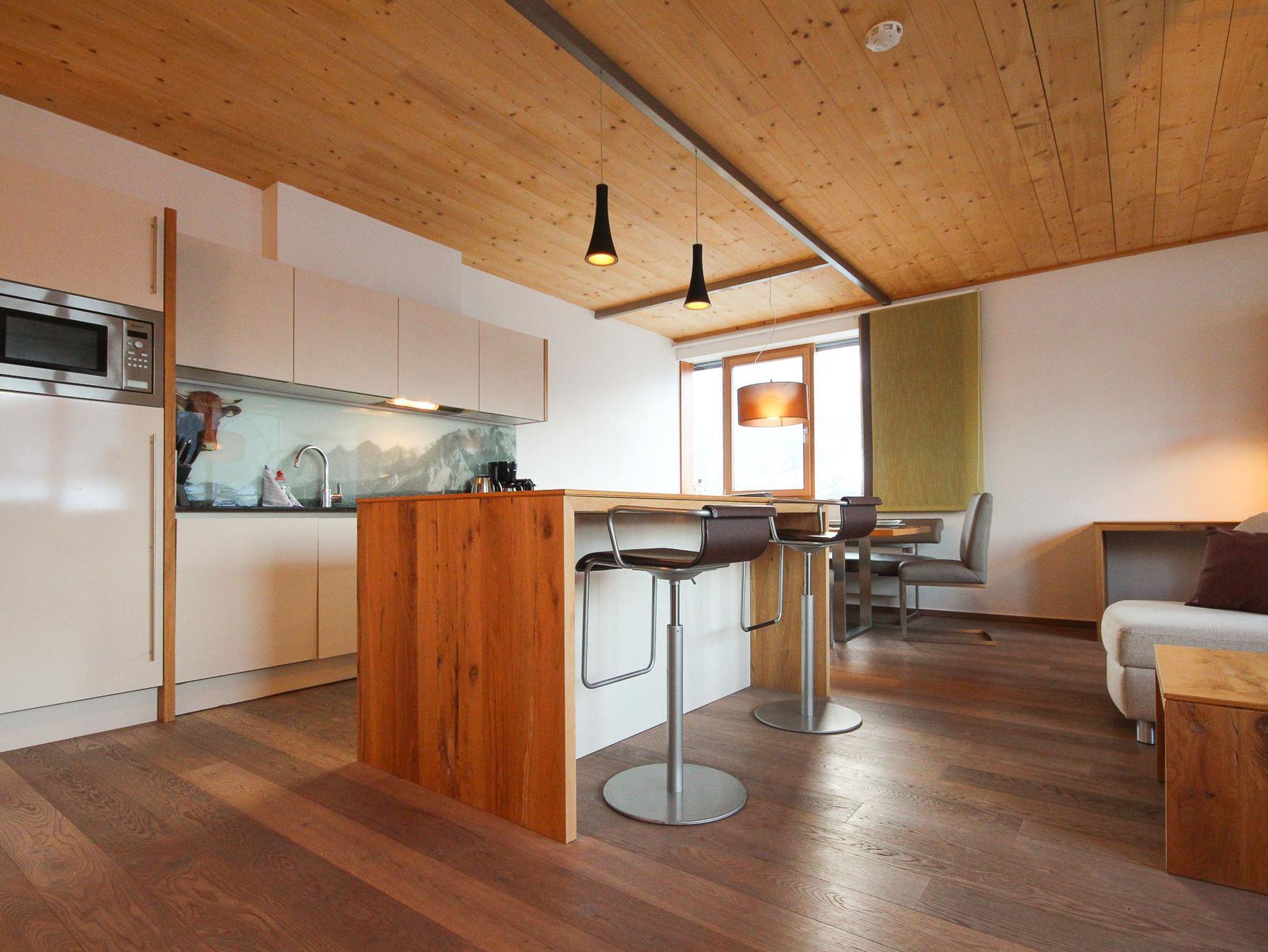 WALULISO - Wasser, Luft, Licht und Sonne - vier Energiequellen, die den Aufenthalt in den Appartements Waluliso bestimmen und aus denen Sie im Urlaub neue Kraft schöpfen können. Der Bauherr - ein Experte in Sachen alternativer Energie - hat den Trend der Zeit erkannt und Einrichtung, Funktionalität und Wohnkomfort nach neuesten Energiequellen ausgerichtet. Die Energie der Sonne und des Lichts werden durch eine riesige Photovoltaikanlage in Strom umgewandelt, mit der auch die Panoramasauna mit faszinierendem Blick auf den Planaizielhang betrieben wird. Natürliche Materialen wie Holz und Stein finden sich hier nicht nur bei der exklusiven Innenausstattung aus hochwertigen Materialen in reduziertem modernem Design sondern auch in vielen Details. Große Panoramafenster in den Appartements geben den Blick auf die Hochwurzen und die Plani frei und spiegeln die großzügigen Dimensionen der Räume wieder. Die neu errichteten Appartements liegen in Gehweite zum Zentrum und den Seilbahneinstiegsstellen Planai und Golden Jet und bieten 2 Appartements für je 8 Personen. Jedes Appartement bietet 3 Schlafzimmer und 2 Badezimmer - und wartet mit Annehmlichkeiten wie Flatscreen, Satellitenfernsehen, DVD-Player, CD-Player, Personenlift, WLAN auf. Das absulute Highlight ist die frei stehende Panoramasauna und die 100m² große Sonnenterrasse! Auch die sonstige technische Ausstattung lässt keine Wünsche und Fragen offen. Restaurants und Geschäfte liegen in unmittelbarer Nähe. Die Appartements sind perfekt für Familien oder eine Gruppe enger Freunde, die Wert auf alternive Energie legen und Design aus regionalen Materialen gepaart mit viel Raum schätzen. Skiraum, Nichtraucher (Rauchen auf der Terrasse gestattet)