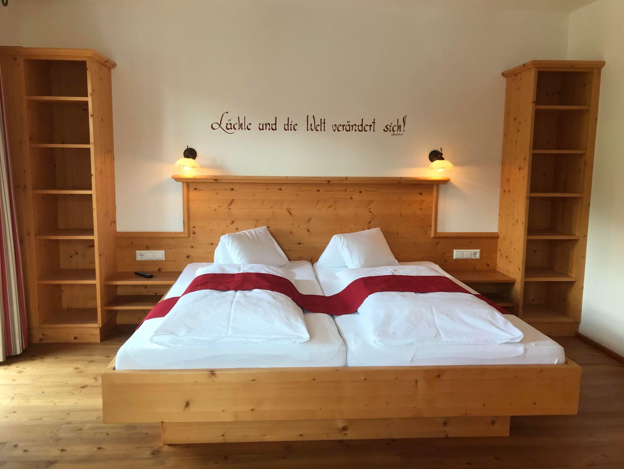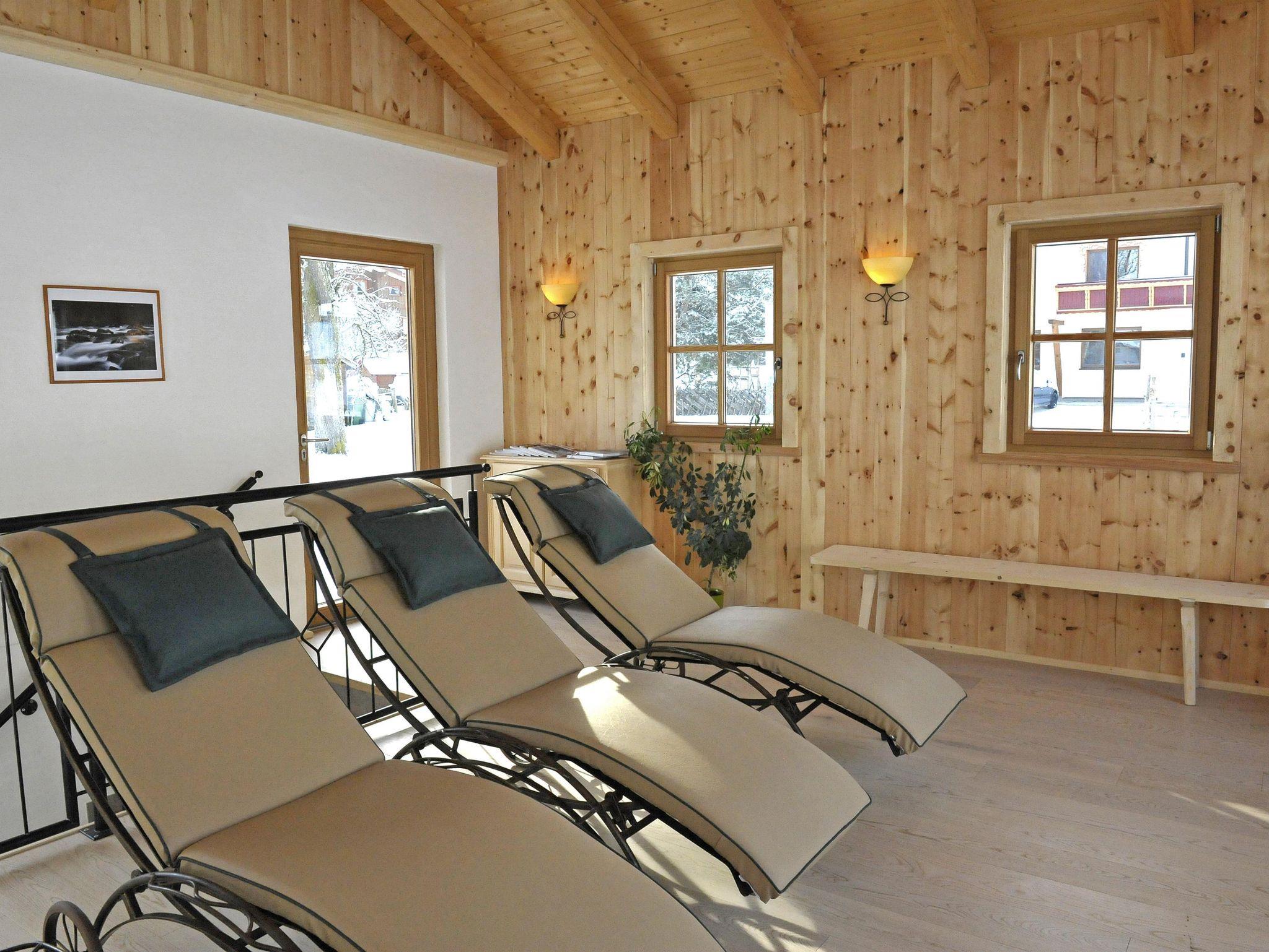 Das Appartement Edelweiss ist mit drei Doppelzimmern und zwei getrennten Bädern ideal für eine Großfamilie oder für Freunde. Die große Wohnküche mit der Rundbank lädt zum Verweilen am Abend ein. Auch der Wellnessbereich ist direkt im Haus und bequem mit dem Bademantel zu erreichen.