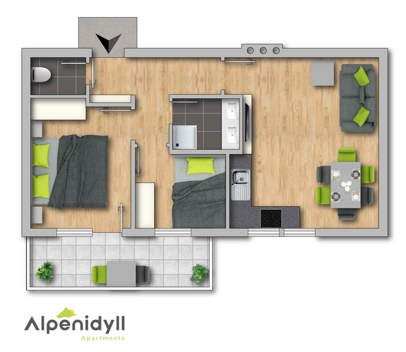 - Wohn-/Schlafzimmer, 21 m², 3 Personen