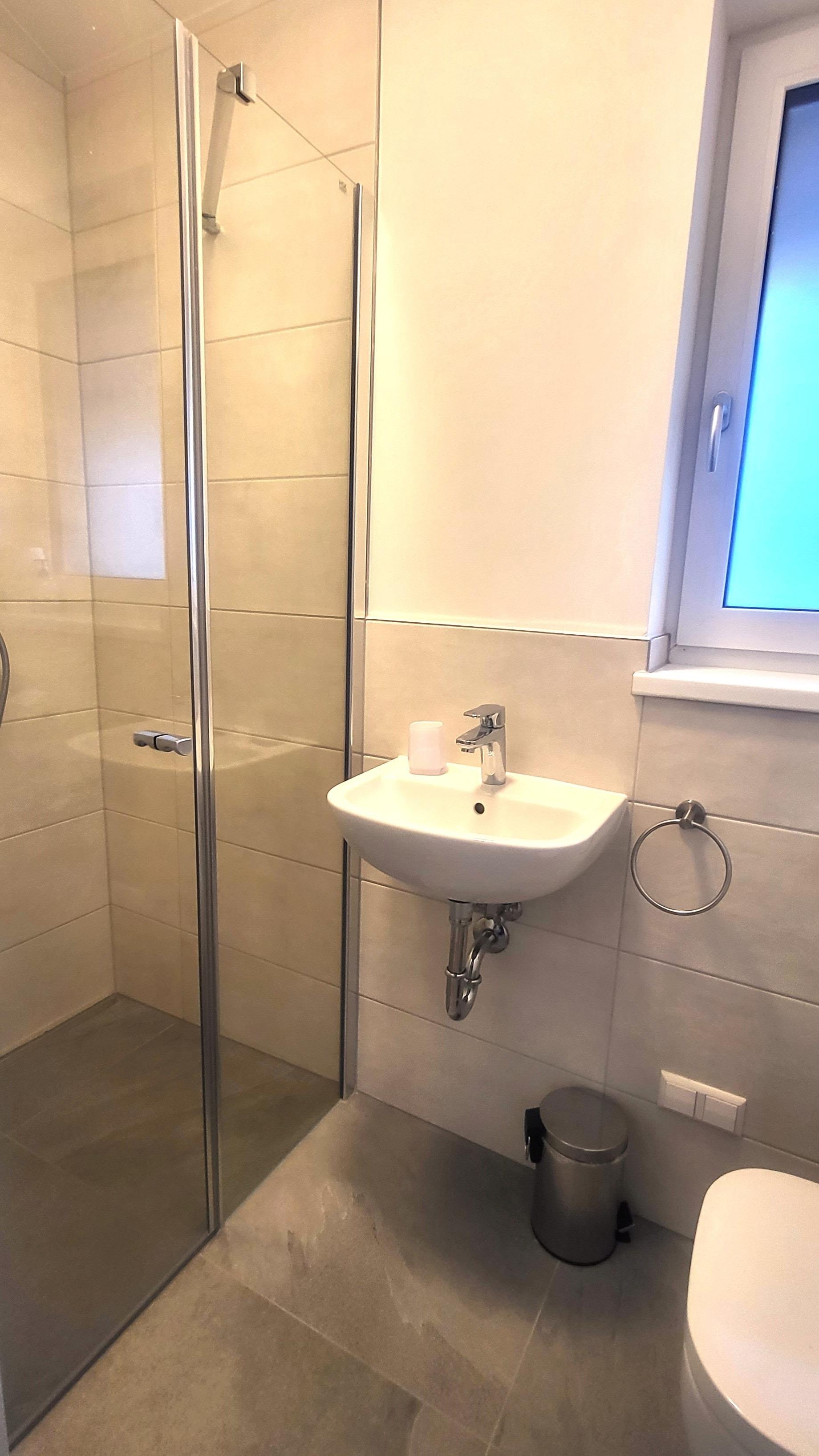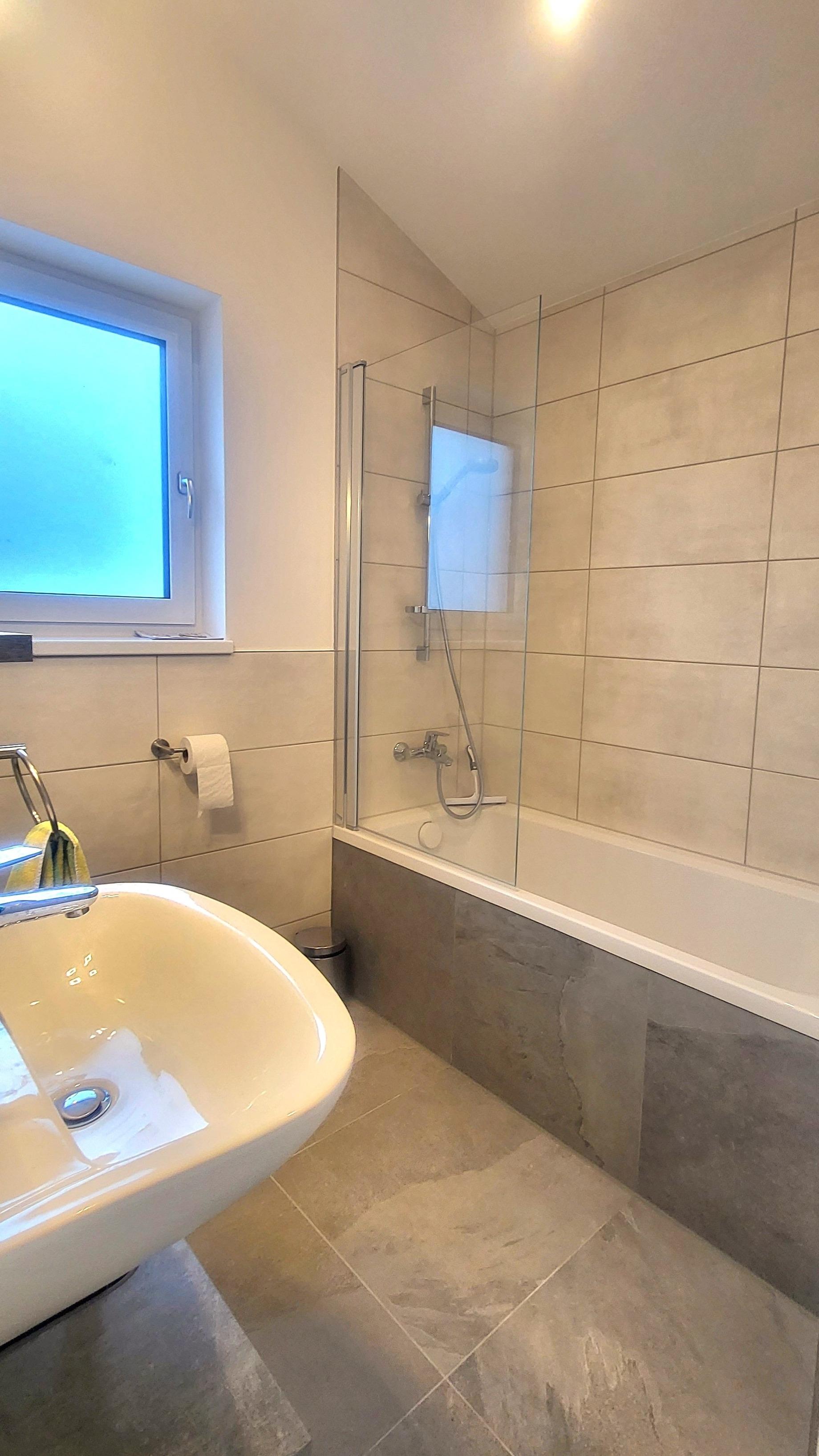 Badeværelse med bruser og badekar