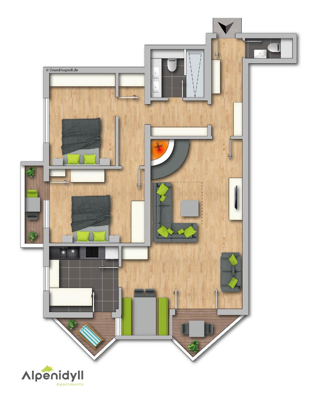 Auf ca. 100m² bietet es Platz für insgesamt 6 Personen.