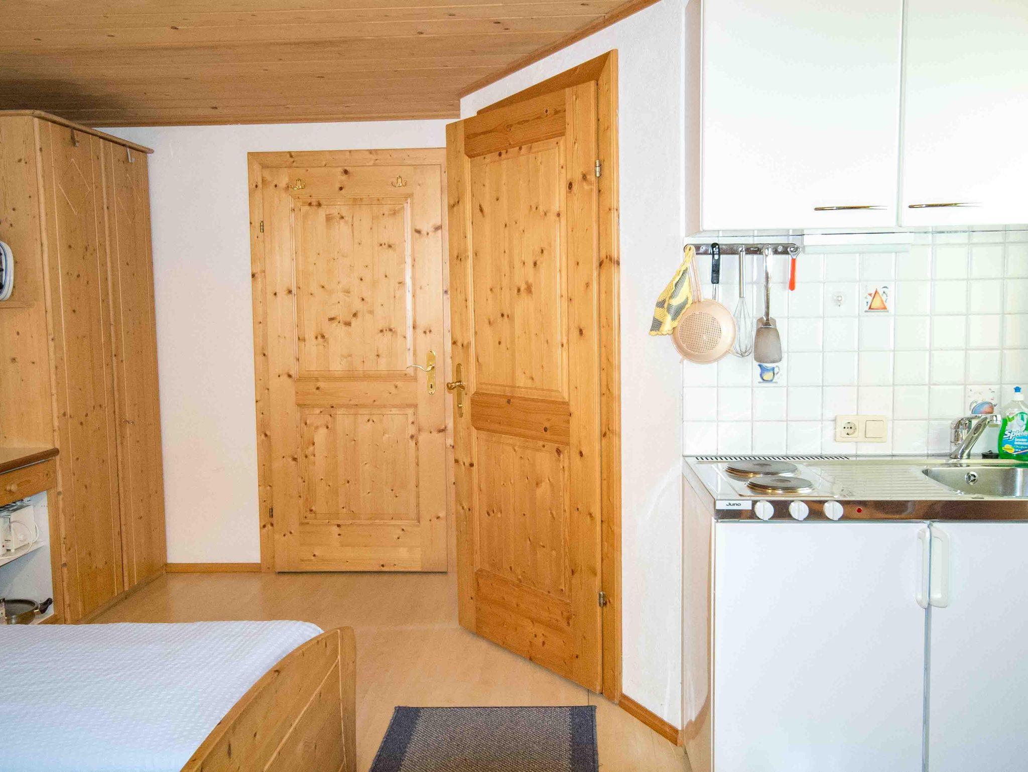 Die kleine Ferienwohnung besteht aus einem großzügigen, hellen Raum mit eingebauter Kochnische, Tischecke und einem Badezimmer mit Toilette und Dusche. Auf Anfrage kann noch ein weiteres Doppelzimmer im 1.Stock gemietet werden.