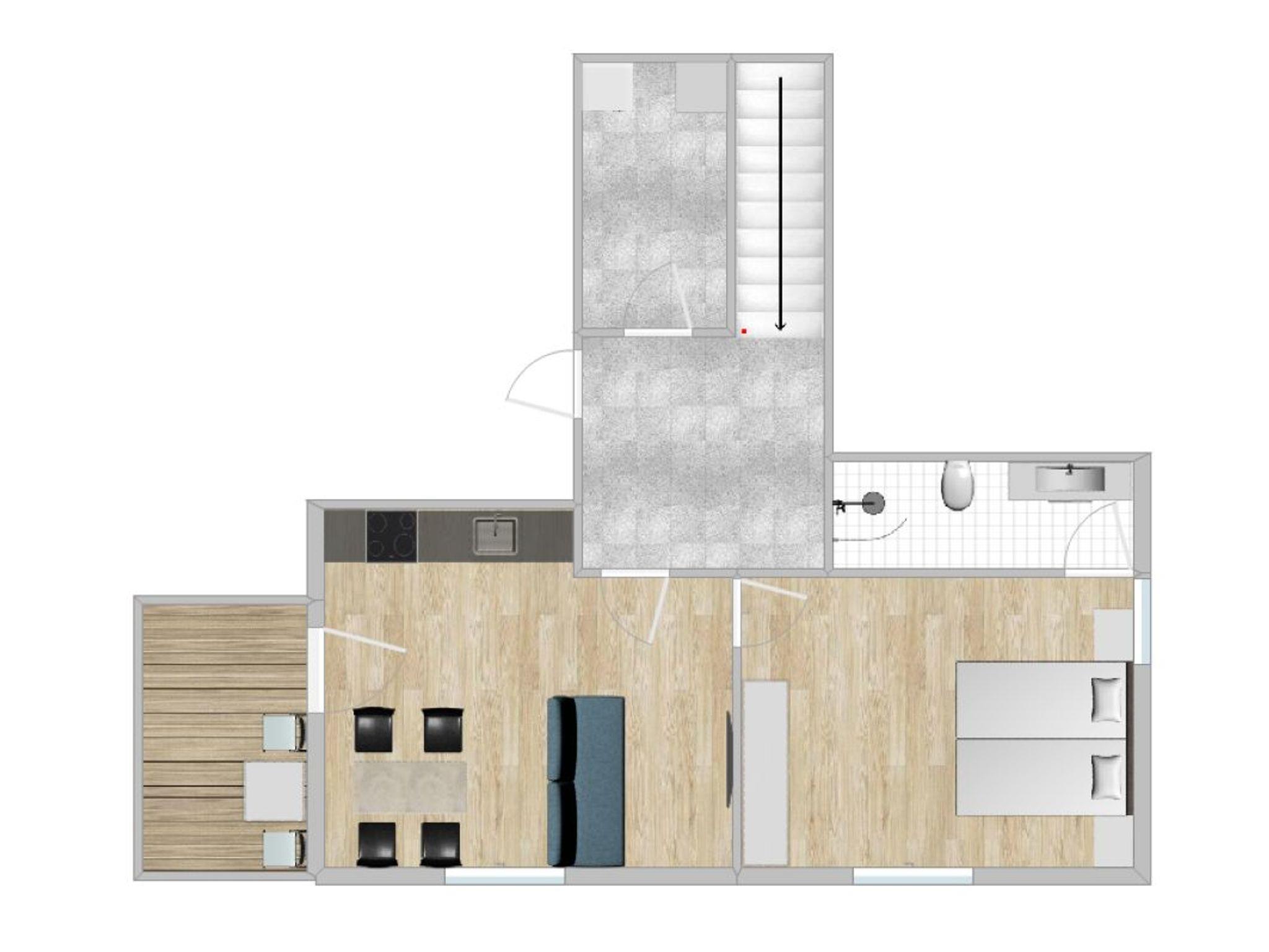 Die Wohnung verfügt über zwei komfortable Betten und eignet sich perfekt für einen Aufenthalt zu zweit oder mit der Familie.