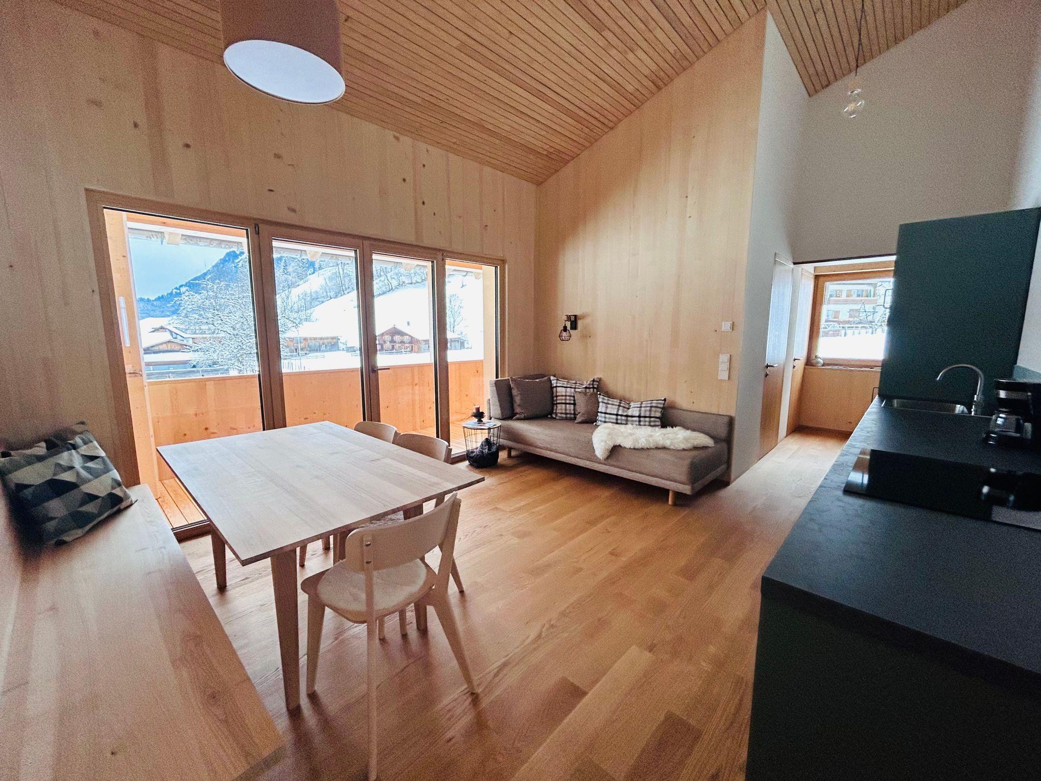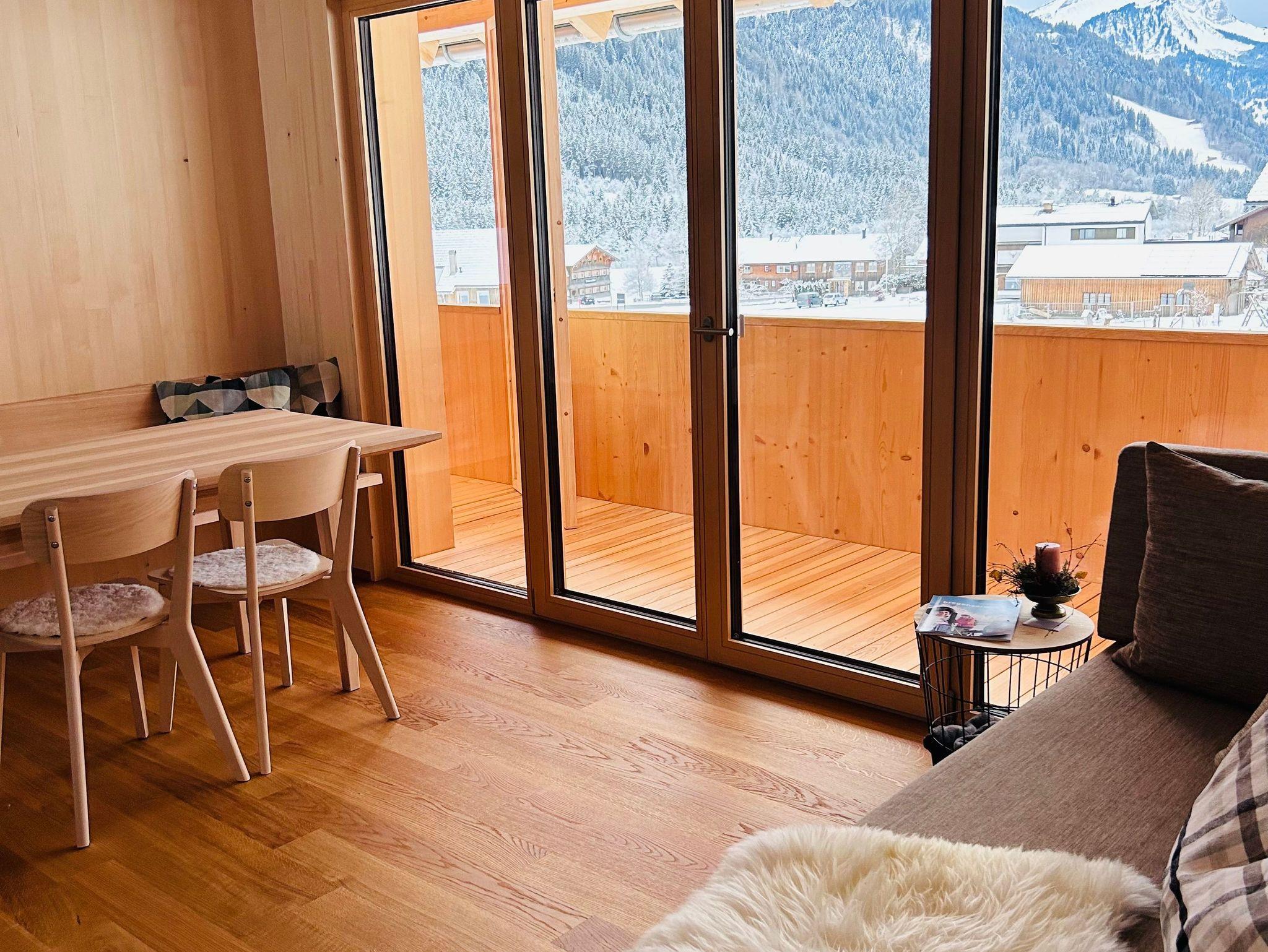 Unsere gemütliche Ferienwohnung (60 m²) bietet Platz für 2-4 Personen und ist der perfekte Rückzugsort für eine Auszeit in den Bergen. Sie verfügt über zwei Schlafzimmer, ein Bad mit Dusche sowie ein separates WC. Die offene Wohnküche mit Balkon lädt zum Kochen, Entspannen und Genießen ein und bietet dabei einen atemberaubenden Blick auf die wunderschöne Bergwelt des Bregenzerwaldes.