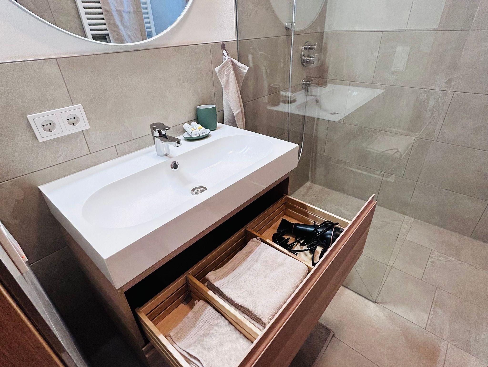 Unsere neue, komfortable Ferienwohnung für 2-4 Personen (60 m²) befindet sich in einer einzigartigen Lage und bietet alles, was man für einen erholsamen Aufenthalt braucht. Sie ist ausgestattet mit einer voll funktionstüchtigen Küche und einem gemütlichen Wohnzimmer. Zwei Schlafzimmer mit Doppelbetten (180 x 200), ein modernes Badezimmer mit Dusche, ein separates WC, sowie ein Balkon sorgen für Komfort. Zusätzlich gibt es einen TV, WLAN und einen eigenen Eingang für mehr Privatsphäre.