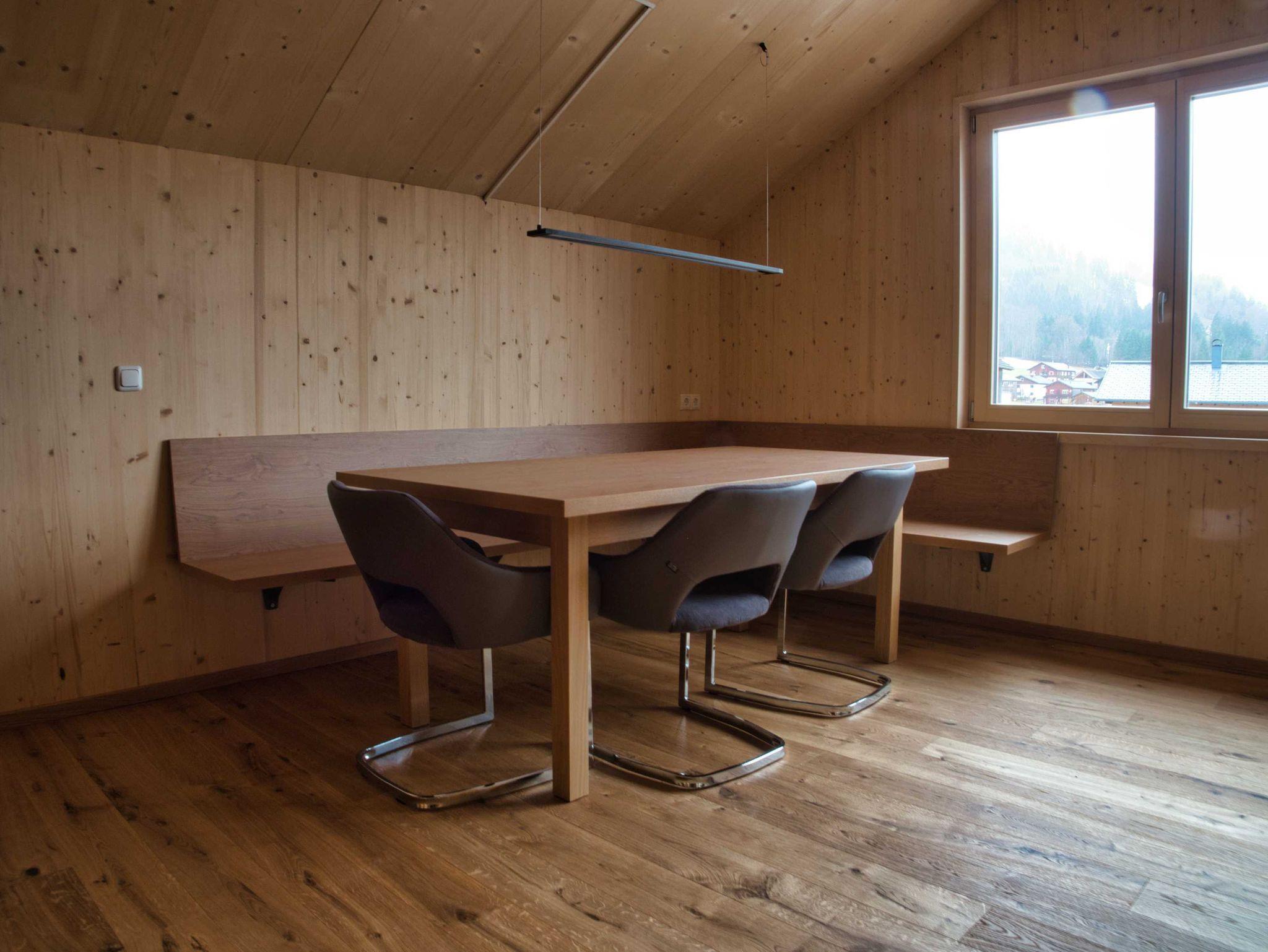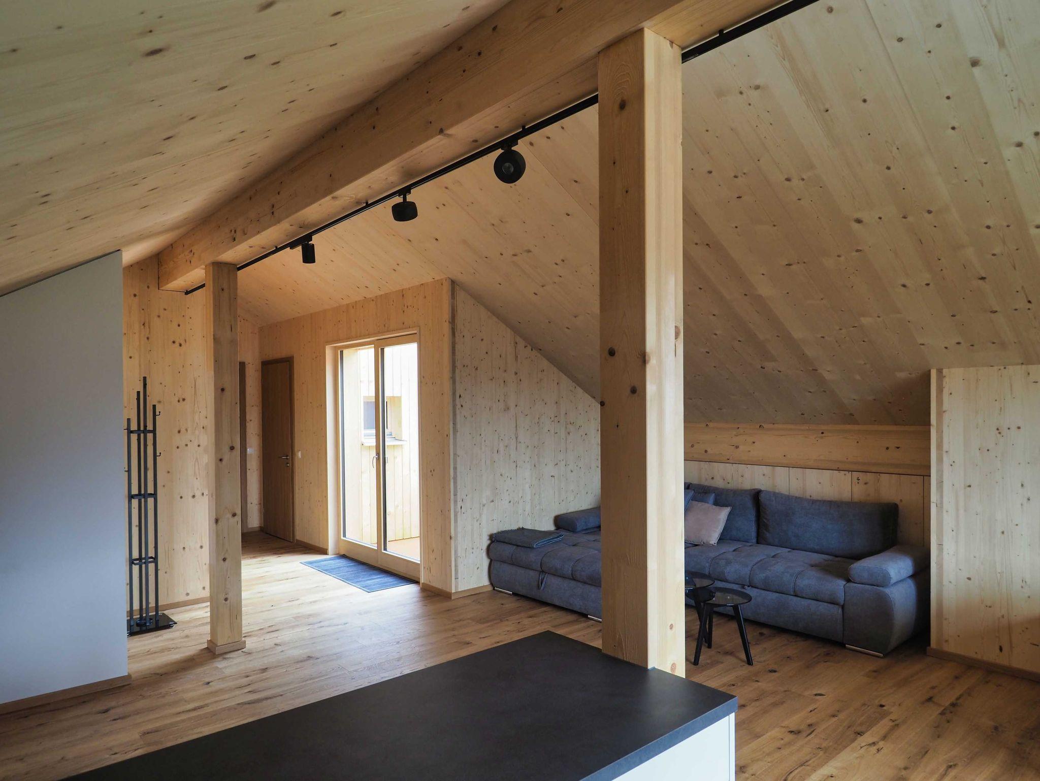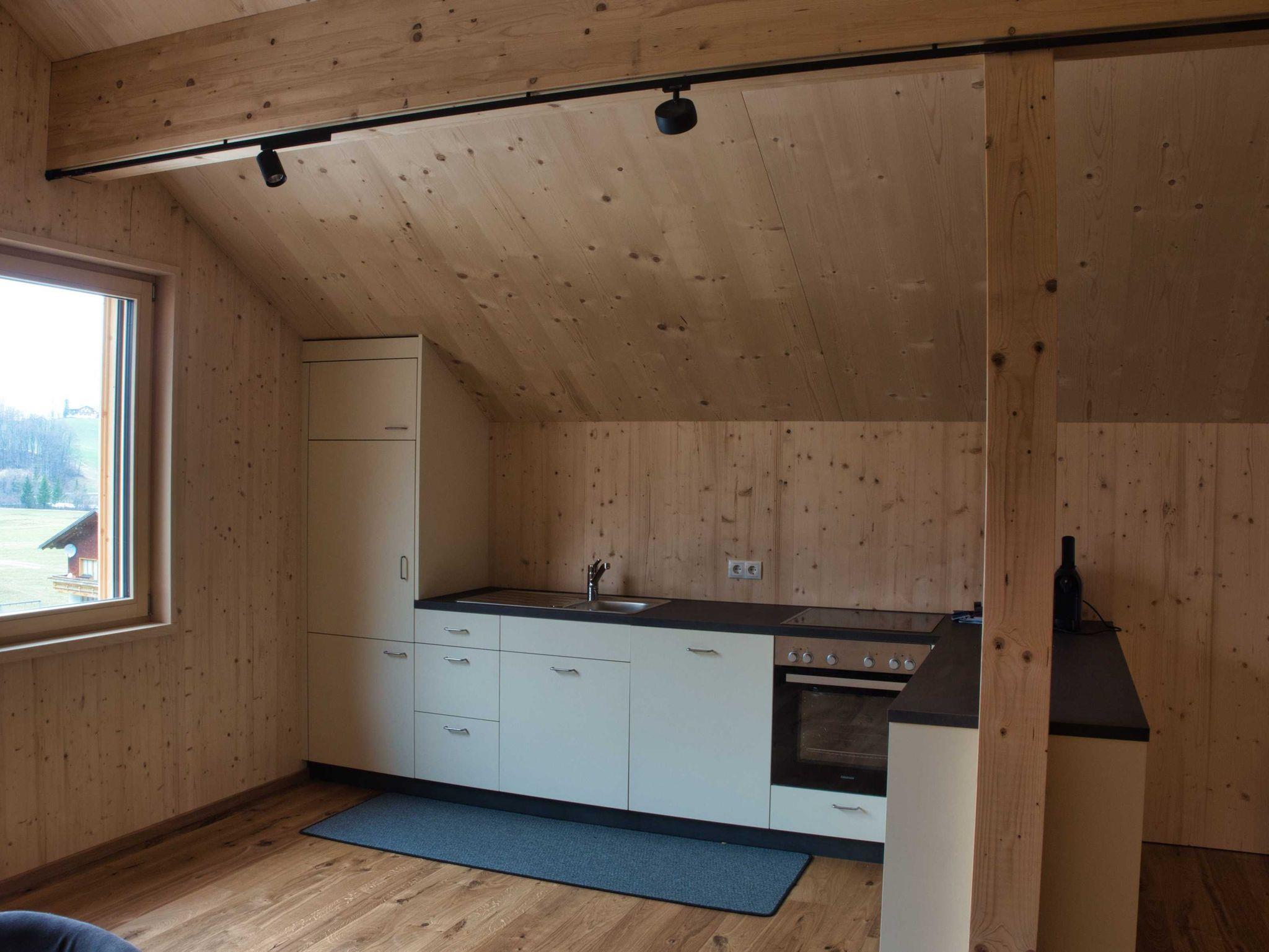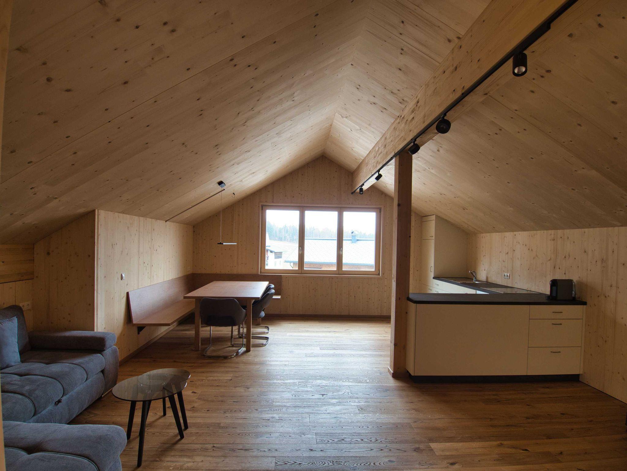 Das Bergreich Appartement 5 hat 80m2 Wohnfläche, die sich auf einen großen Wohn-/Essbereich, zwei Schlafzimmern und ein Badezimmer erstrecken. Ein Schlafzimmer bietet eine Ausziehcouch. Von jedem Fenster aus sind die umliegenden Berge zu sehen. Ein privater Balkon lädt zum Entspannen ein. Das Appartement befindet sich im 2.Obergeschoss und ist über das Stiegenhaus erreichbar.
