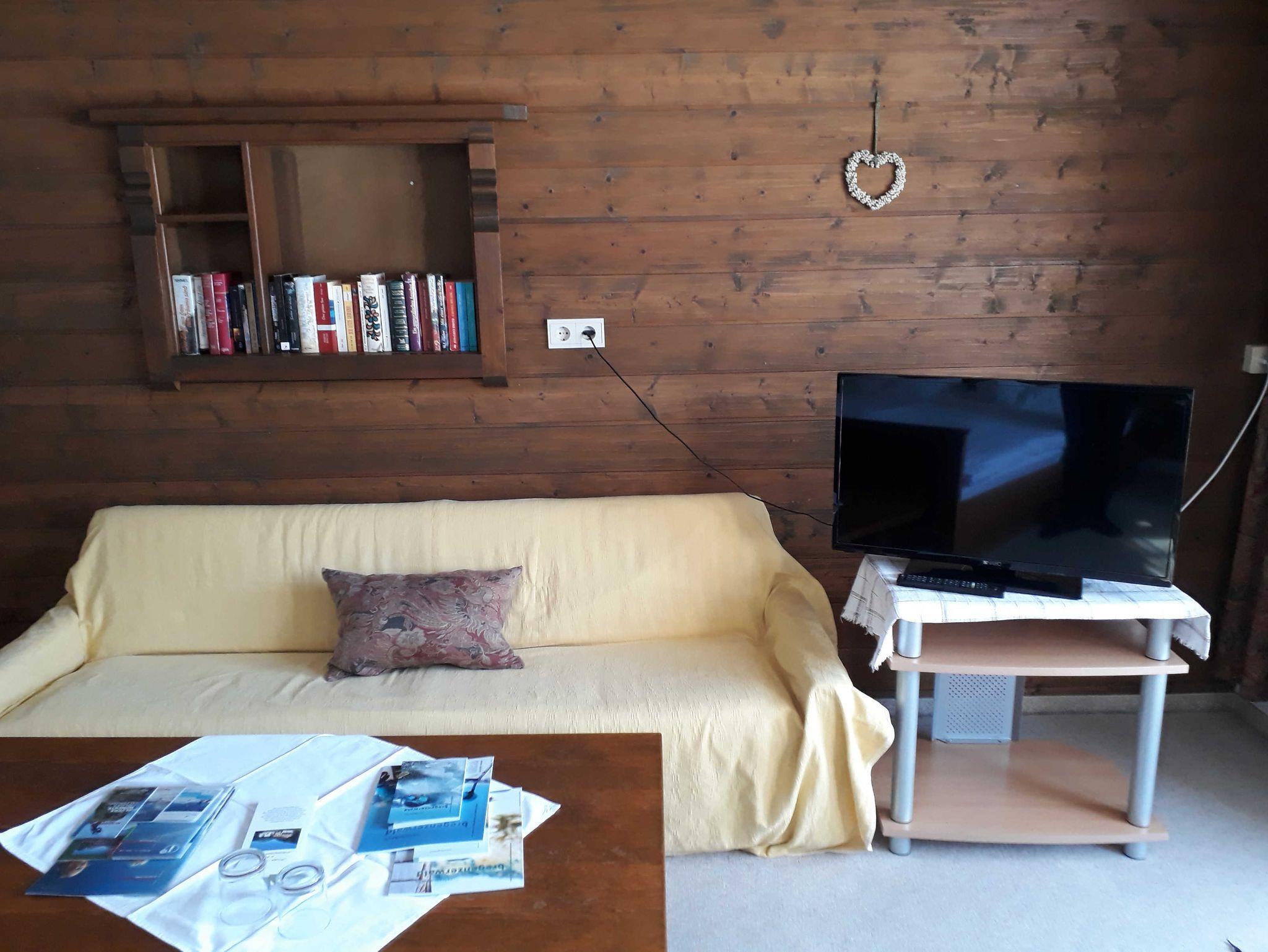 • Eine große Couch (auch als Zustellbett), 2 Polsterhussen und ein Tisch sind zum Chillen bereit.