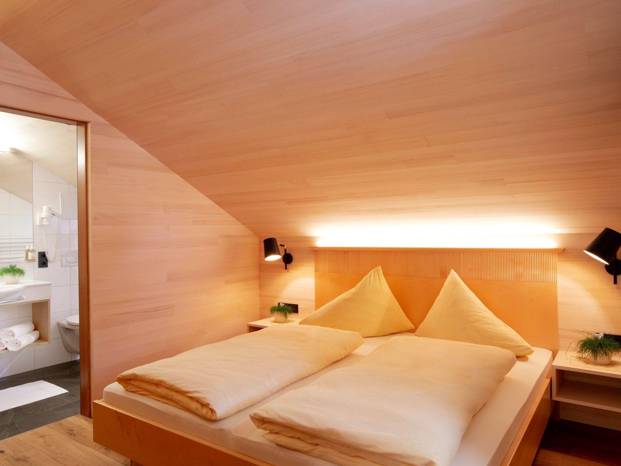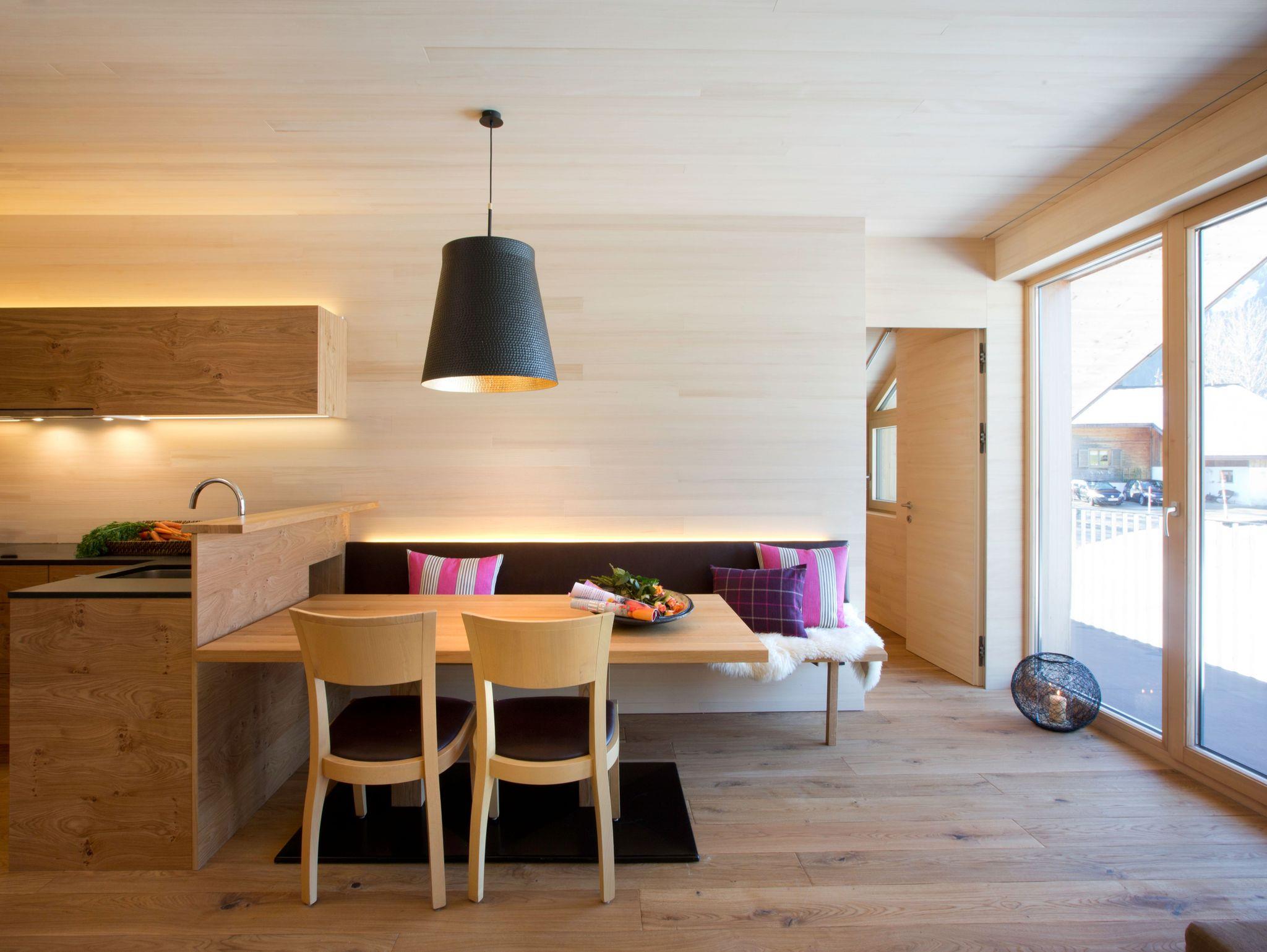 Alle Apartments sind mit hochwertigen Holzböden (Eiche Parkett), Wandvertäfelungen aus heimischer Weißtanne, Decken aus heimischer Weißtanne und Lehmputz ausgestattet.