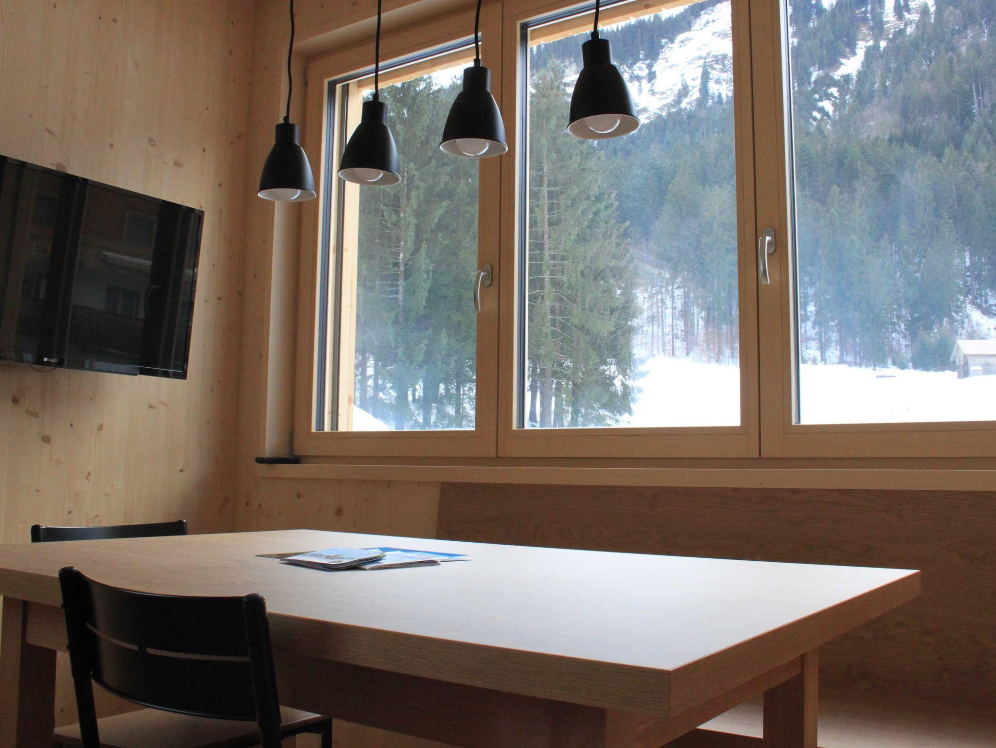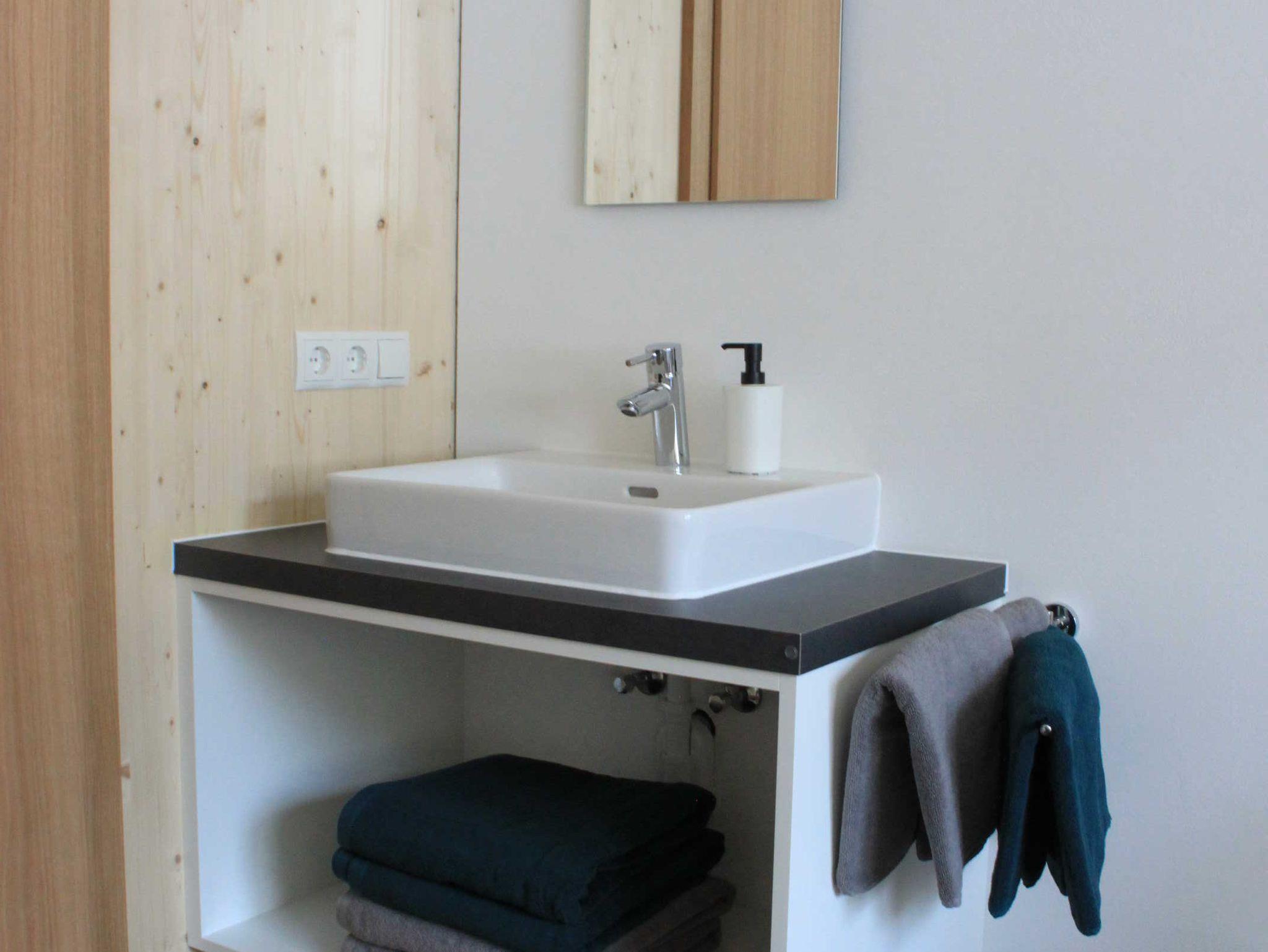 Das neue Bergreich Appartementhaus verfügt über fünf Wohnungen, die allesamt mit einer Terrasse bzw. Balkon ausgestattet sind. Im Bergreich Appartement 2 gibt es zwei Schlafzimmer mit je einer Dusche und Waschbecken, das WC ist extra. Der großzügige Wohn-/Essbereich ist mit einer ausziehbaren Couch und einem großen Esstisch eingerichtet. Im Keller befindet sich zudem ein Spielzimmer mit Spielsachen, Dartscheibe, Tischfußballtisch uvm.