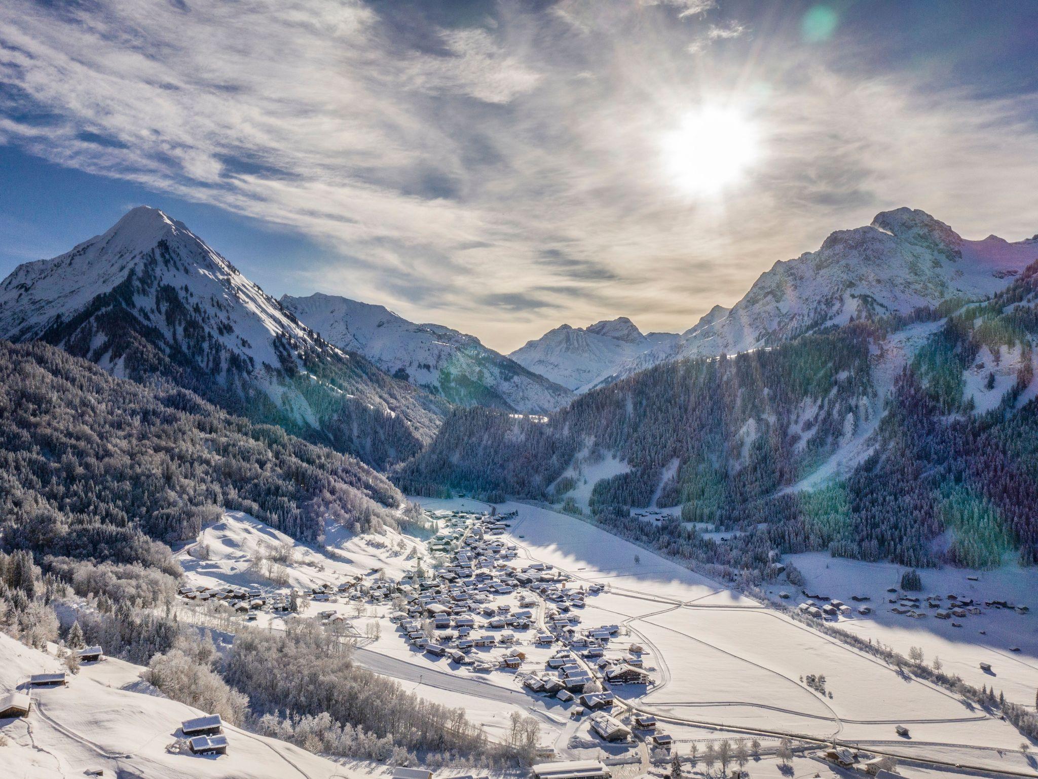 Schoppernau, darunter die Hochkünzelspitze und die Kanisfluh, und wird schnell