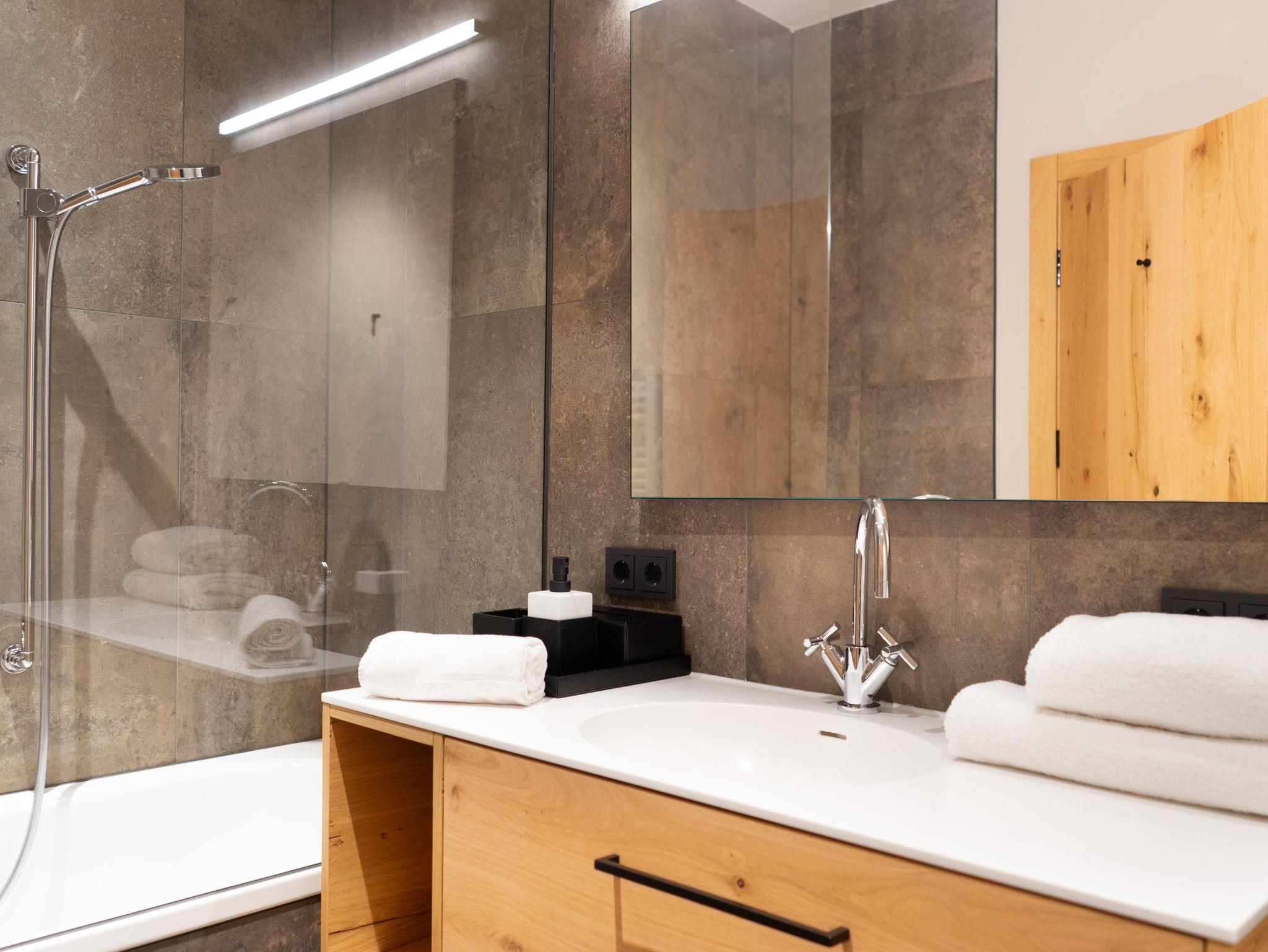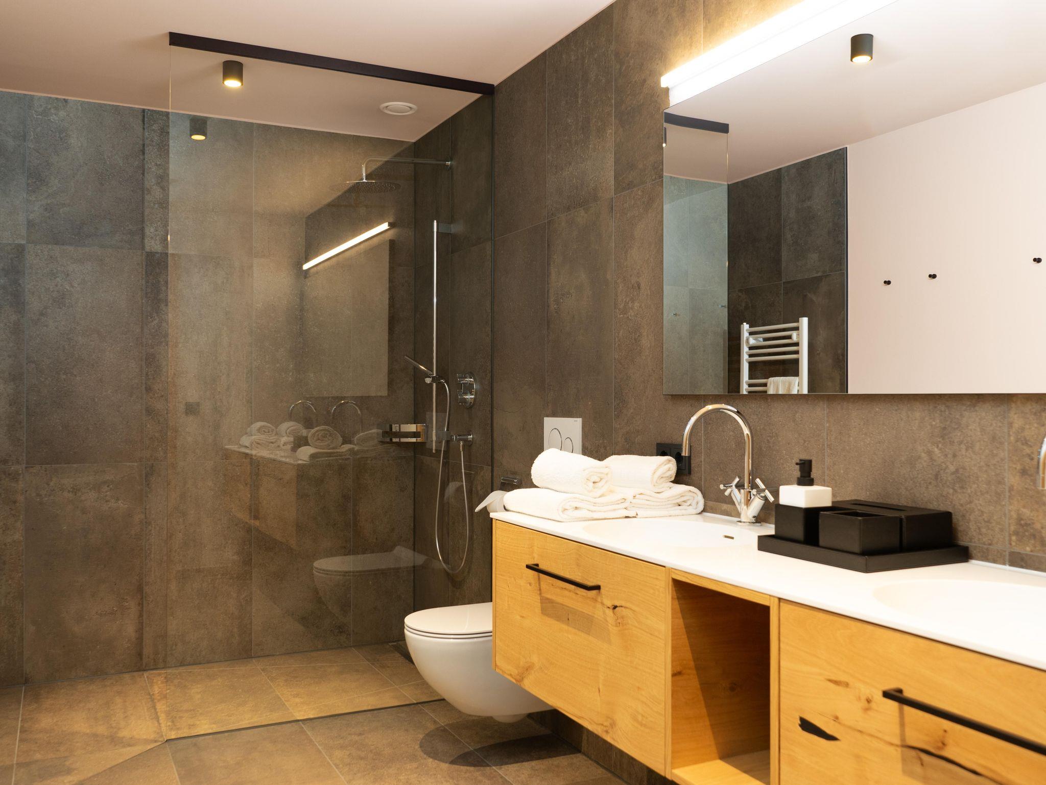 Auf großzügigen bis zu 85 m 2 Wohnfläche verfügen die Apartments über 2 Schlafzimmer, kostenloses WLAN, min. einen Smart-TV und einen Schranktresor. Die Küche ist mit Backofen, Induktions-Kochfeld, Geschirr, Koch-Utensilien, Kaffeemaschine, Wasserkocher und Toaster voll ausgestattet. Die Suites haben Zugang zu min. einem Balkon/einer Terrasse. Das Badezimmer ist mit einer Regendusche ausgestattet. Eine Gästetoilette ist in in einem separaten Raum untergebracht. Ihr Auto stellen sie sicher in der dazugehörigen Tiefgarage ab, wo auch Ladestationen für E-Autos zur Verfügung stehen. Im Resort befindet sich ein Lift, sowie eine Waschküche mit Waschmaschine und Trockner. Kulinarisch umsorgt werden unsere Gäste mit unserem Frühstücksangebot, Brötchen- und Kühlschrankservice, sowie über den Automatenshop, der regelmäßig mit frischen Speisen unseres Haubenkochs A. Shala befüllt wird.