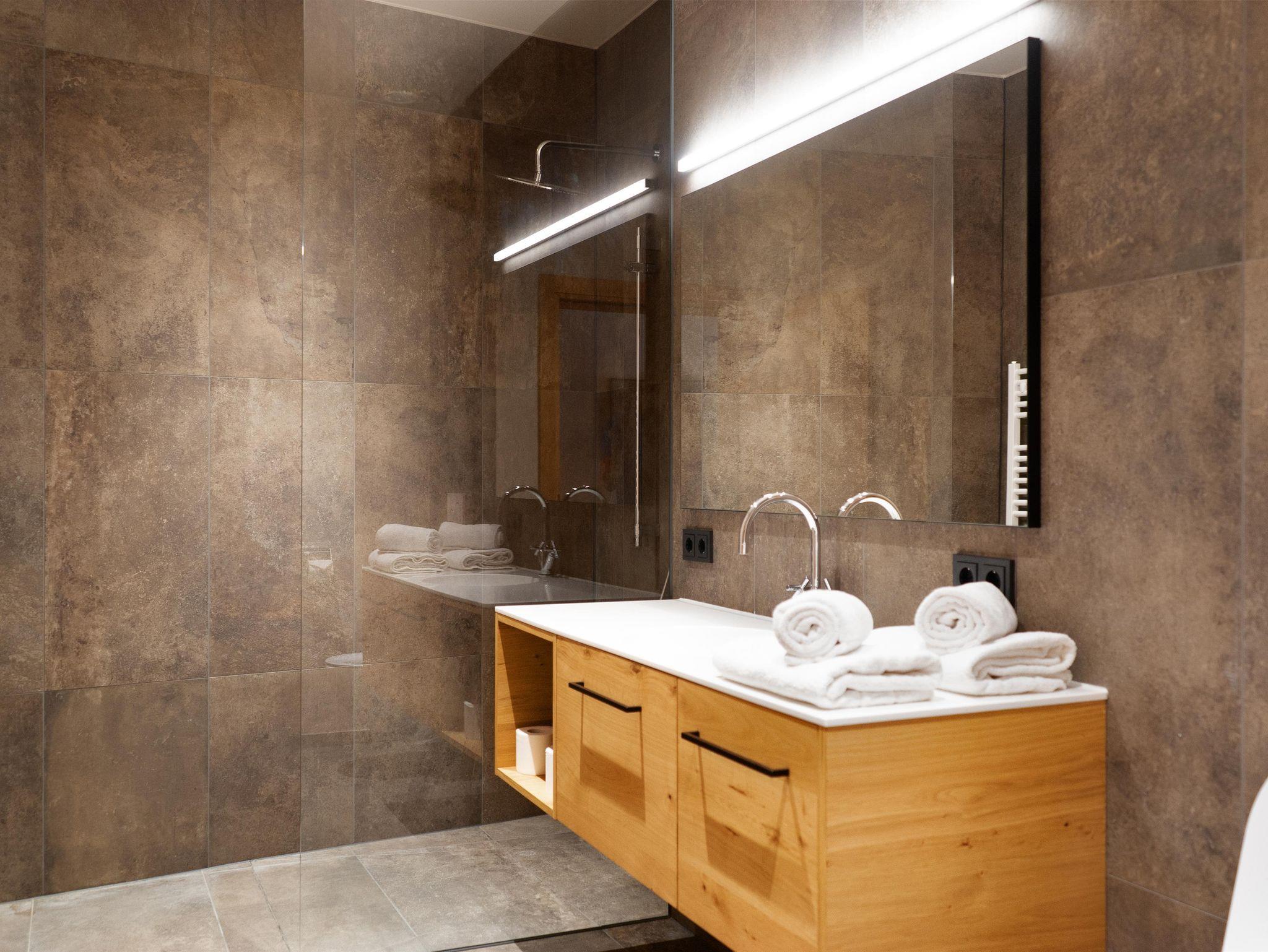 Auf exquisiten bis zu 103 m 2 Wohnfläche verfügen die Apartments über 3 Schlafzimmer, kostenloses WLAN, min. einen Smart-TV und einen Schranktresor. Die Küche ist mit Backofen, Induktions-Kochfeld, Geschirr, Koch-Utensilien, Kaffeemaschine, Wasserkocher und Toaster voll ausgestattet. Die Suites haben Zugang zu einem Balkon/einer Terrasse. Vielfach sind die Badezimmer direkt über ein Schlafzimmer erreichbar und jeweils mit einer Badewanne oder Regendusche und Toilette ausgestattet. Die Gästetoilette ist in einem separaten Raum untergebracht. Ihr Auto stellen sie sicher in der dazugehörigen Tiefgarage ab, wo auch Ladestationen für E-Autos zur Verfügung stehen. Im Resort befindet sich ein Lift, sowie eine Waschküche mit Waschmaschine und Trockner. Kulinarisch umsorgt werden unsere Gäste mit unserem Frühstücksangebot, Brötchen- und Kühlschrankservice, sowie über den Automatenshop, der regelmäßig mit frischen Speisen unseres Haubenkochs A. Shala befüllt wird.