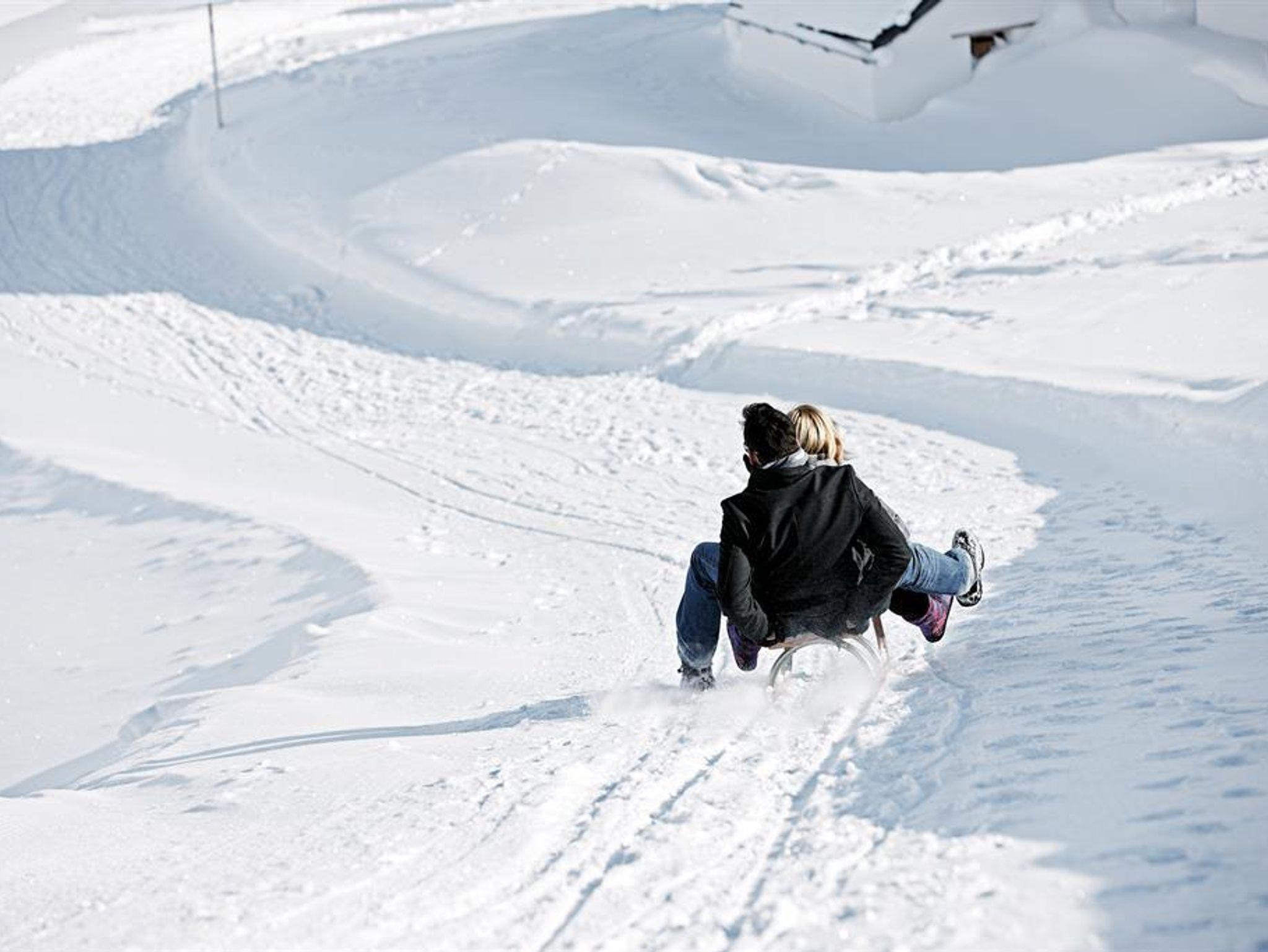 Der wöchentliche Rodelabend mit 2 Kilometer Rodelbahn findet auch direkt beim Pfarrhof statt.