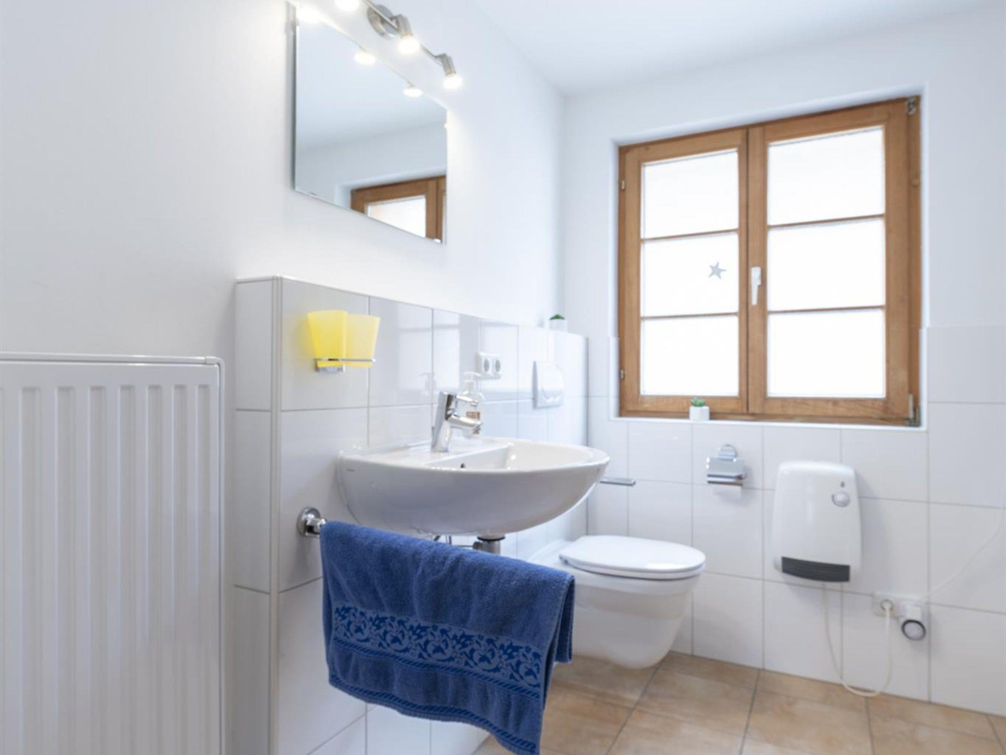 1 Bad mit Dusche und WC, 1 Bad mit Badewanne und WC sowie noch 1 Separates WC zur Verfügung.